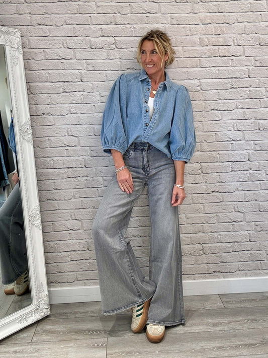Puff Shoulder Denim Shacket