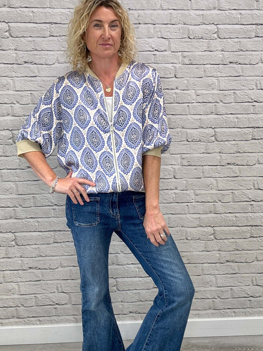 Enya Mix Silk Bomber | Blue & Gold