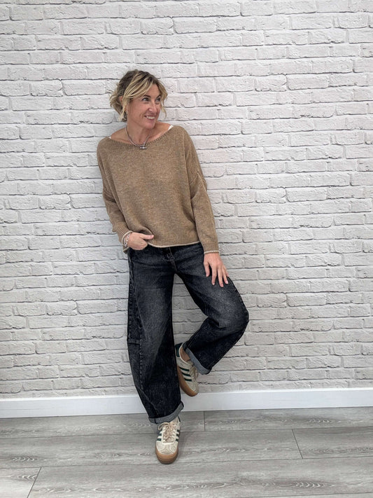 Rockafella High Waist Cuffed Jeans | Washed Grey