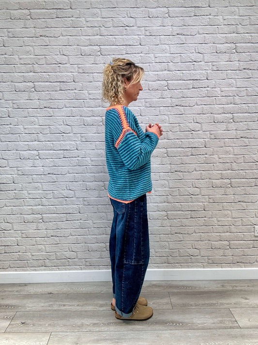 Stockholm Stitch Jumper | Teal & Blue Stripe
