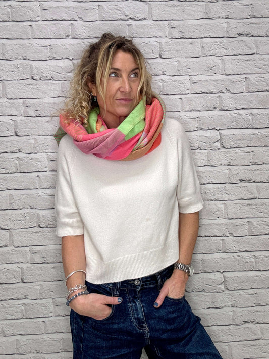 Cream Scarf with Orange & Pink Stripes