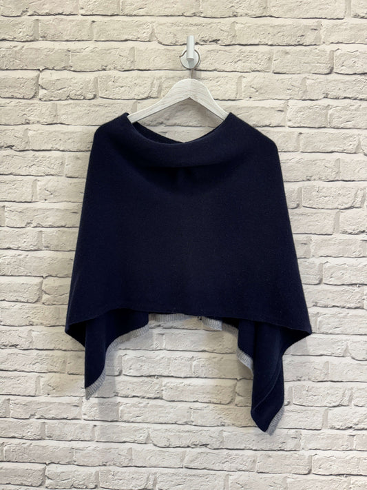 Navy Poncho with Grey trim