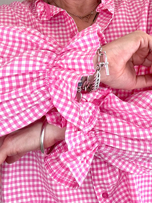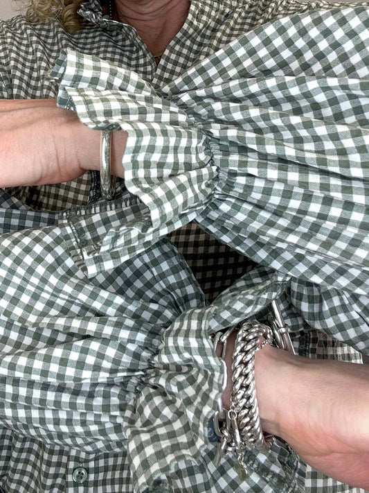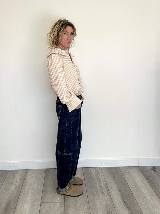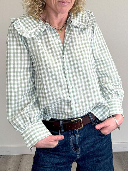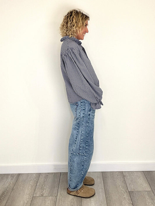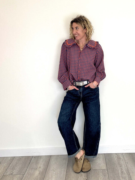 Orange & Blue Gingham Peter Pan Collar Blouse