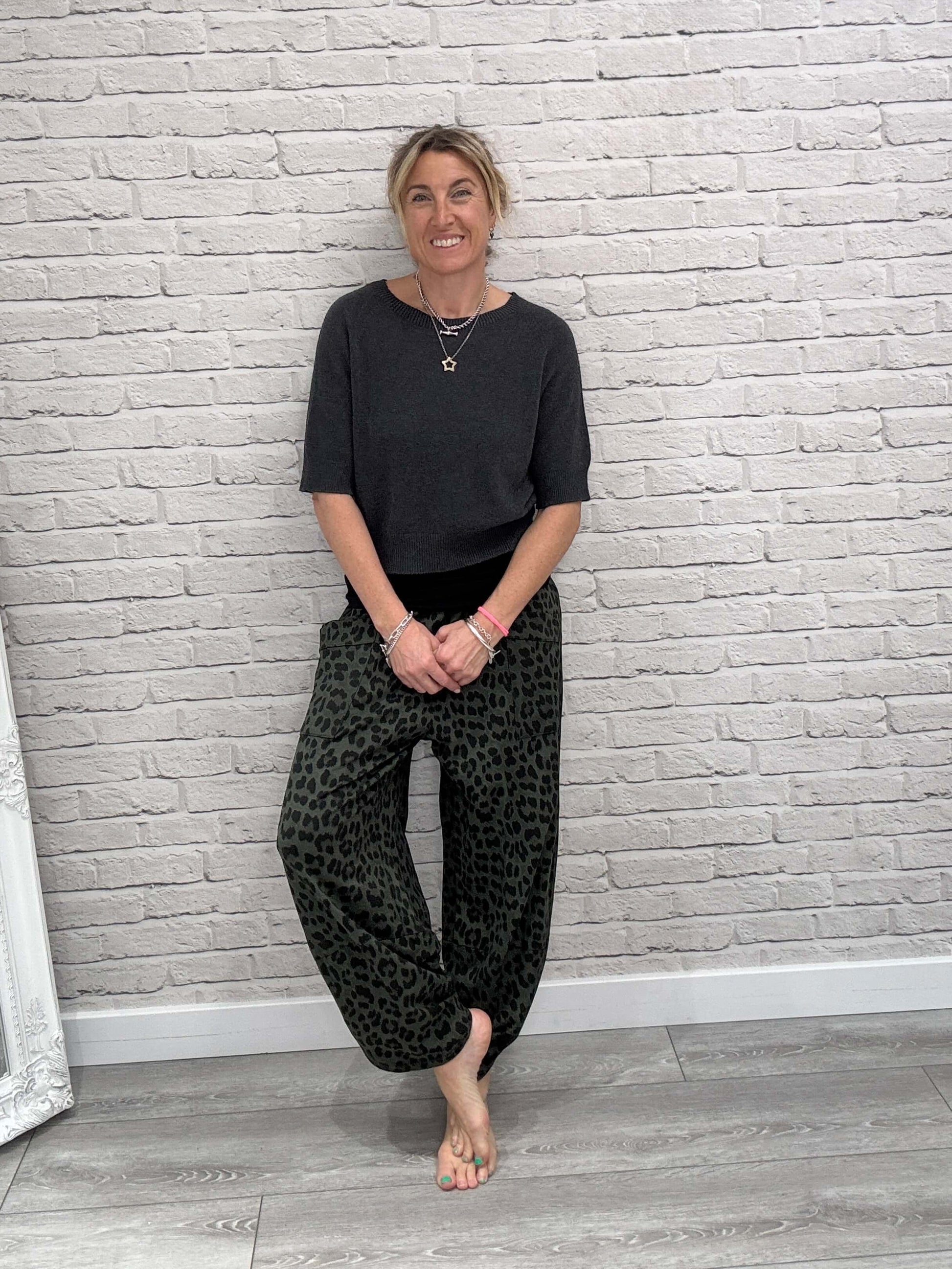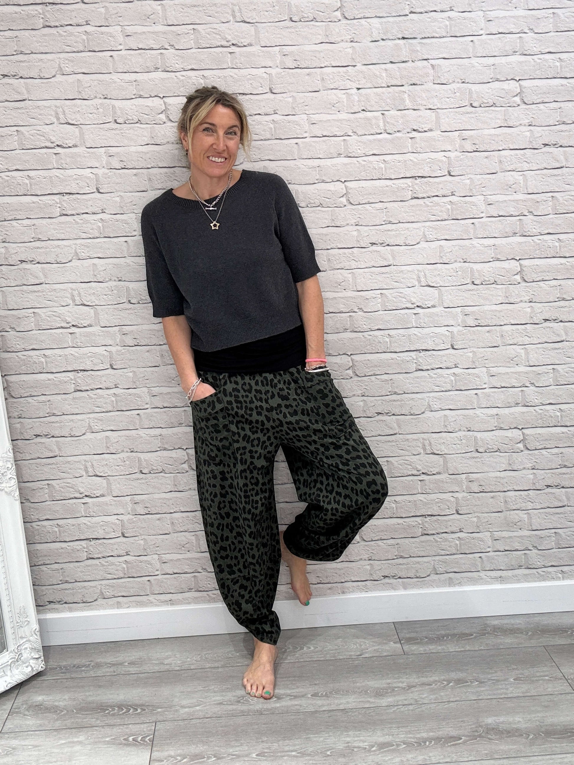Barrel Slouch Pants | Dark Green Leopard (NEW)