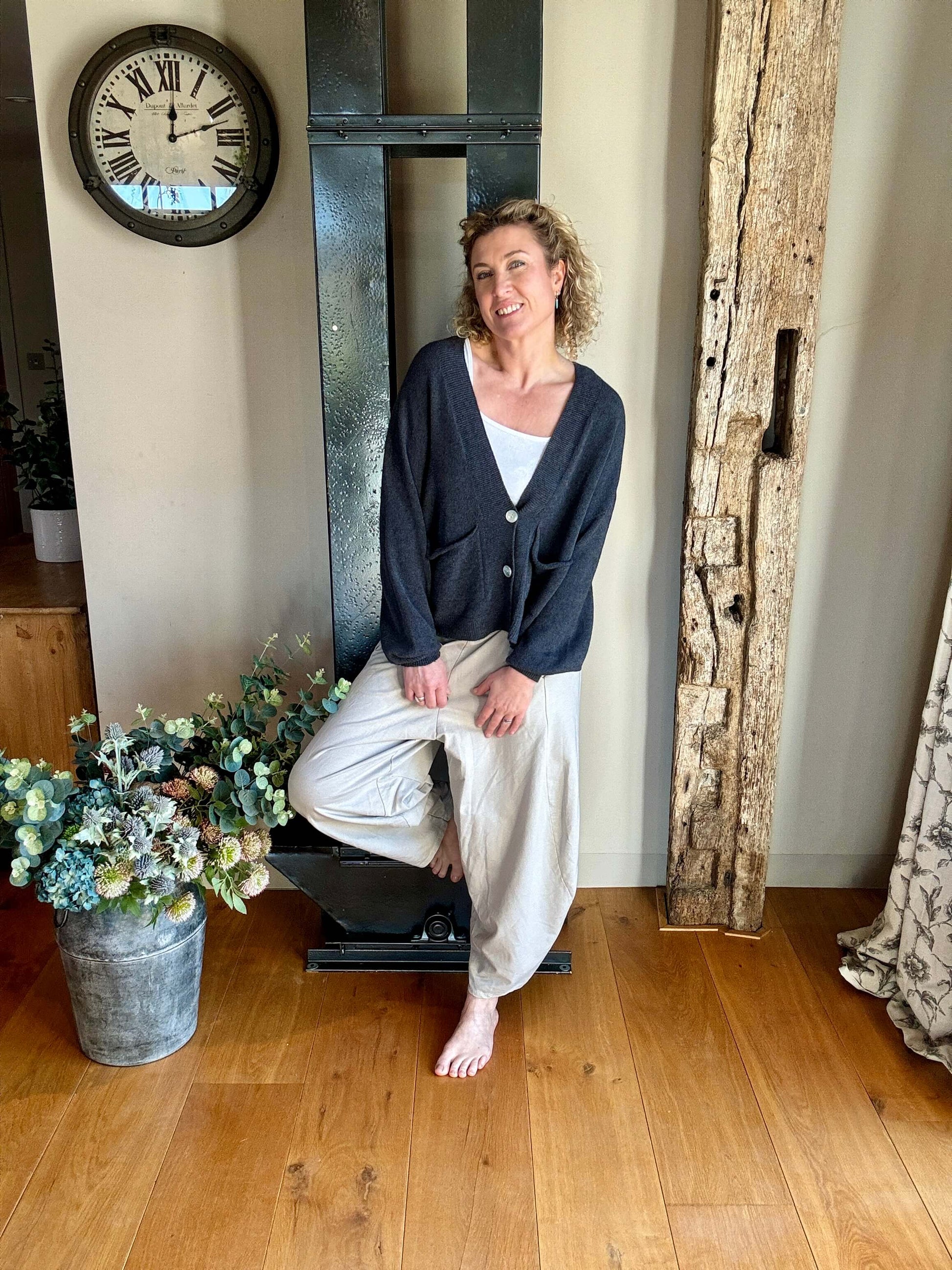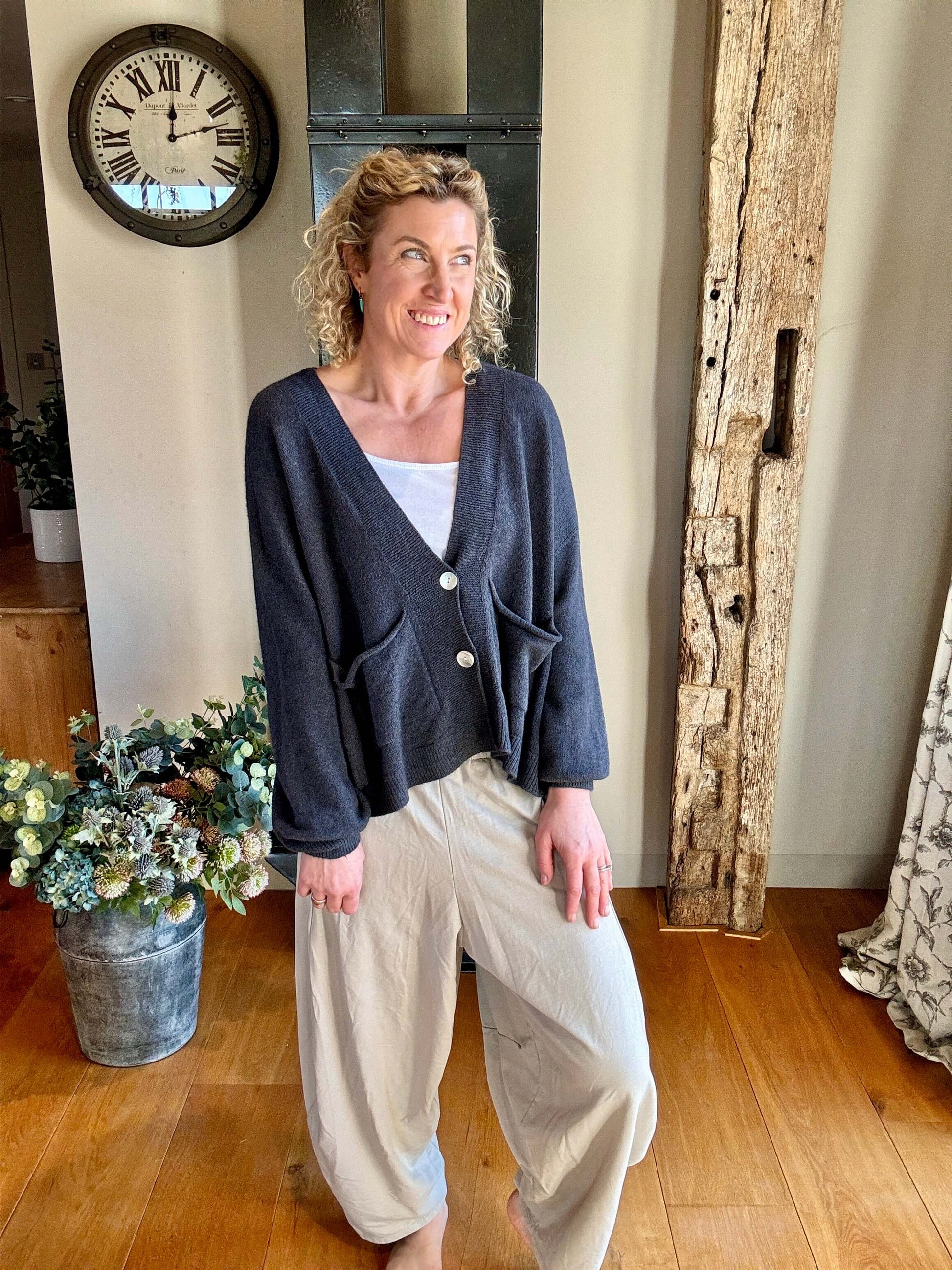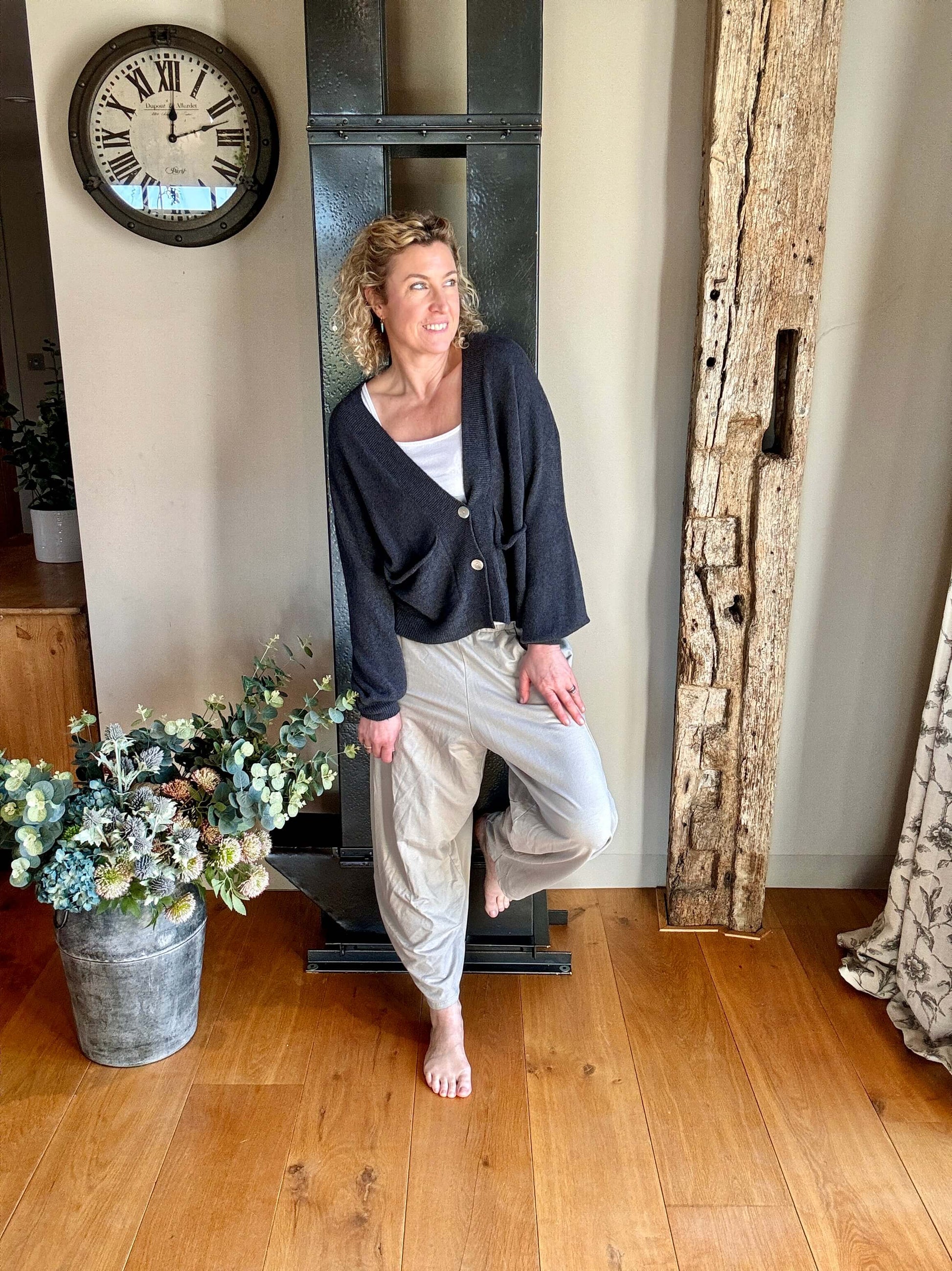 Wide throughout the legs. Tapered at the ankles. Stretchy waistband. Pockets. Perfect for those of you who love a relaxed, slouchy silhouette.
