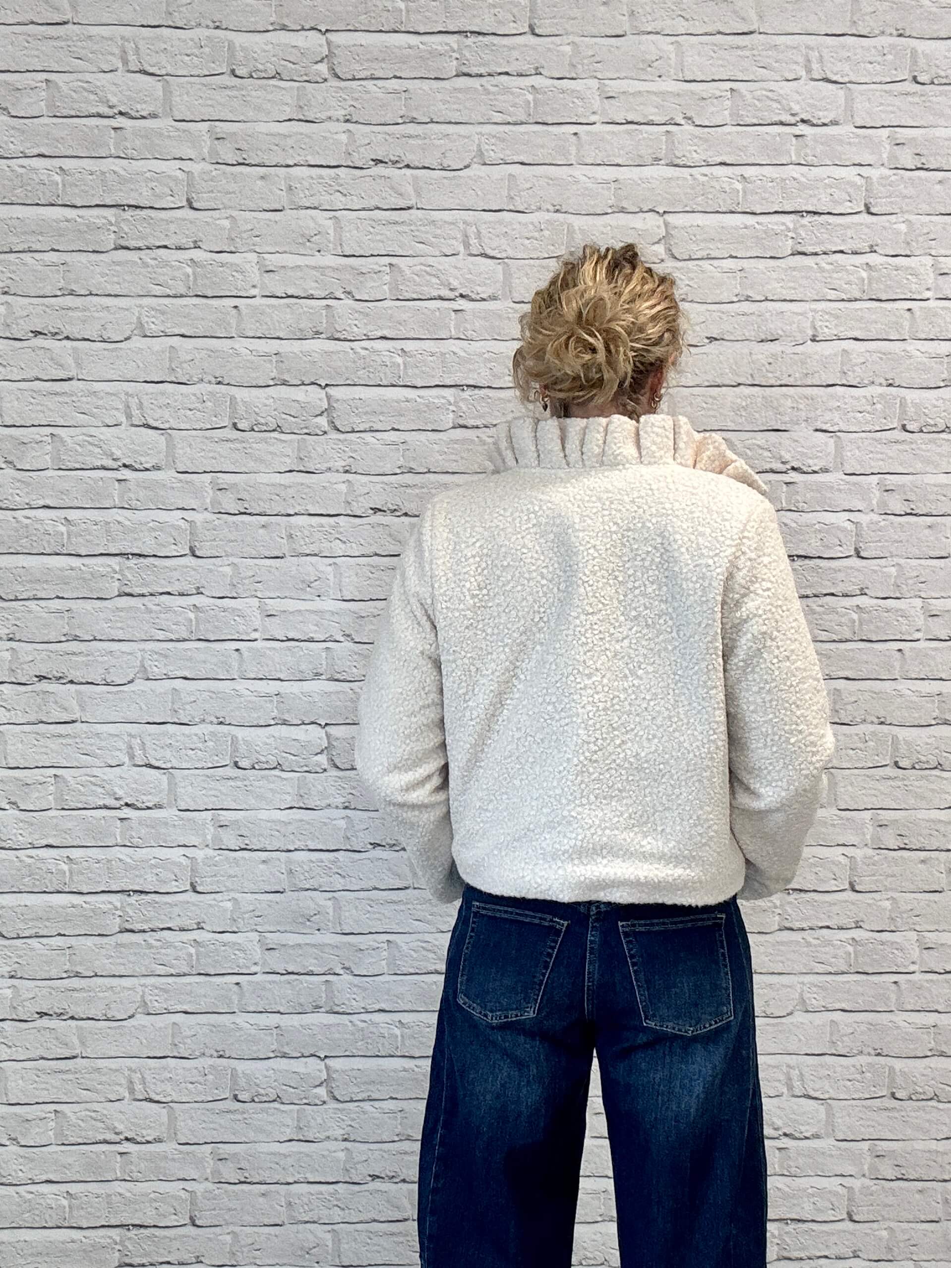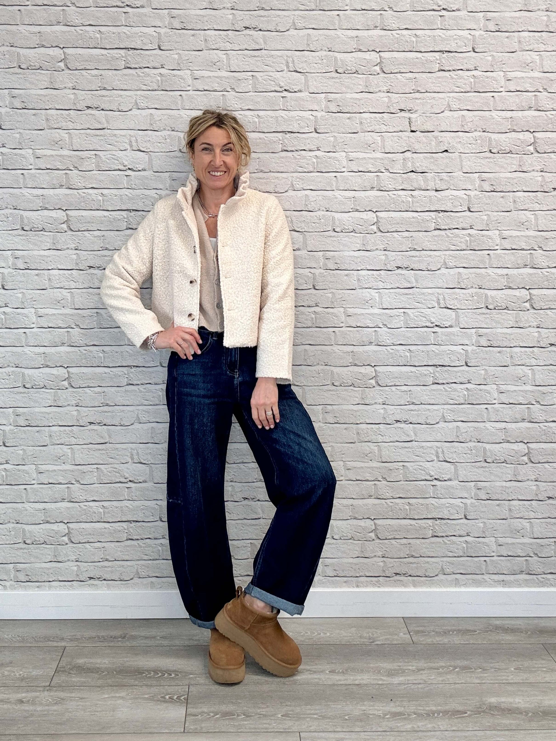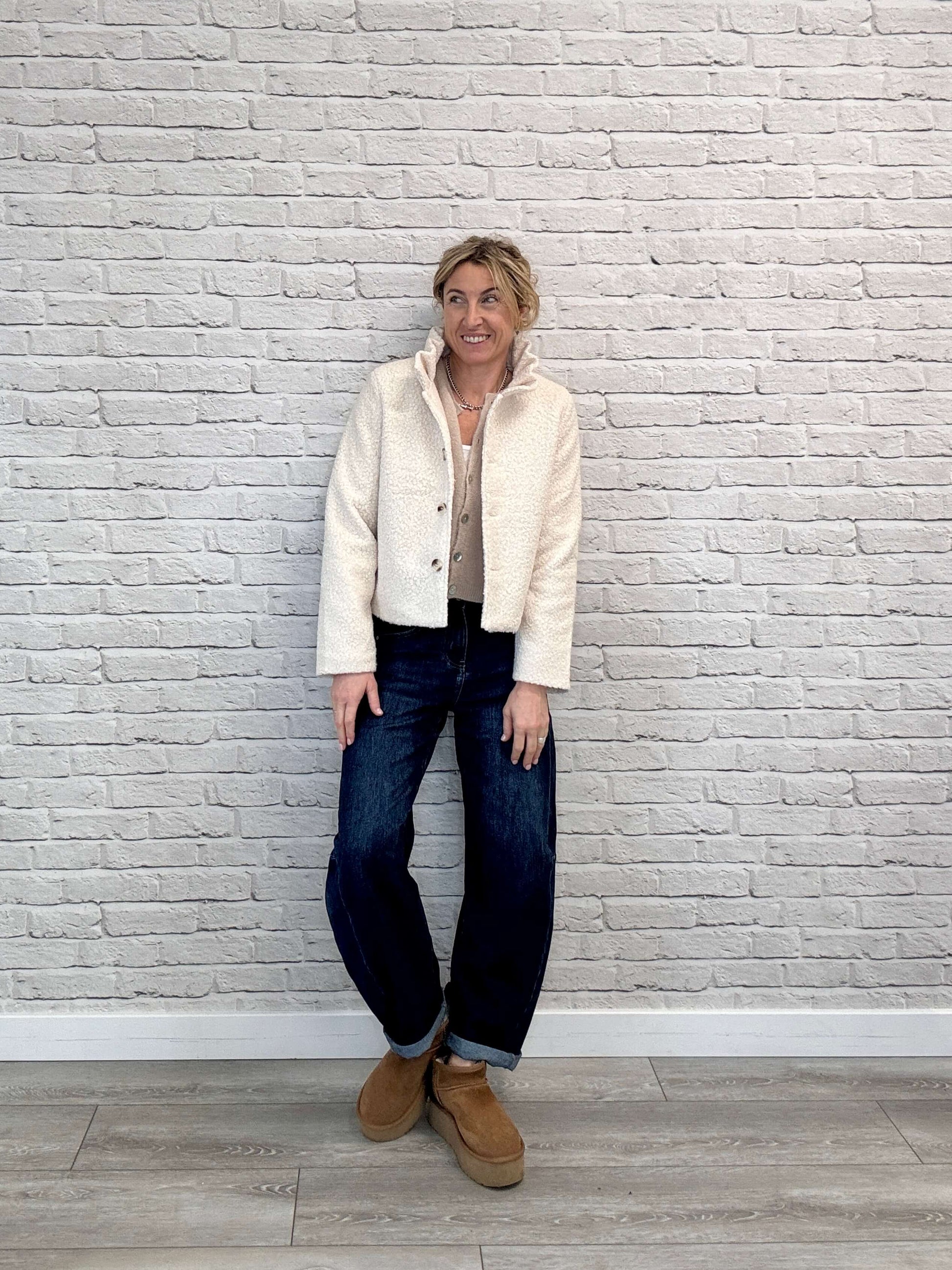 Meet your new statement layer. Our beautiful textured boucle jacket features a stunning standing frill collar that will literally have heads turning. The short, modern cut, button front and side pockets keep it effortlessly wearable while still delivering boutique-level style.
