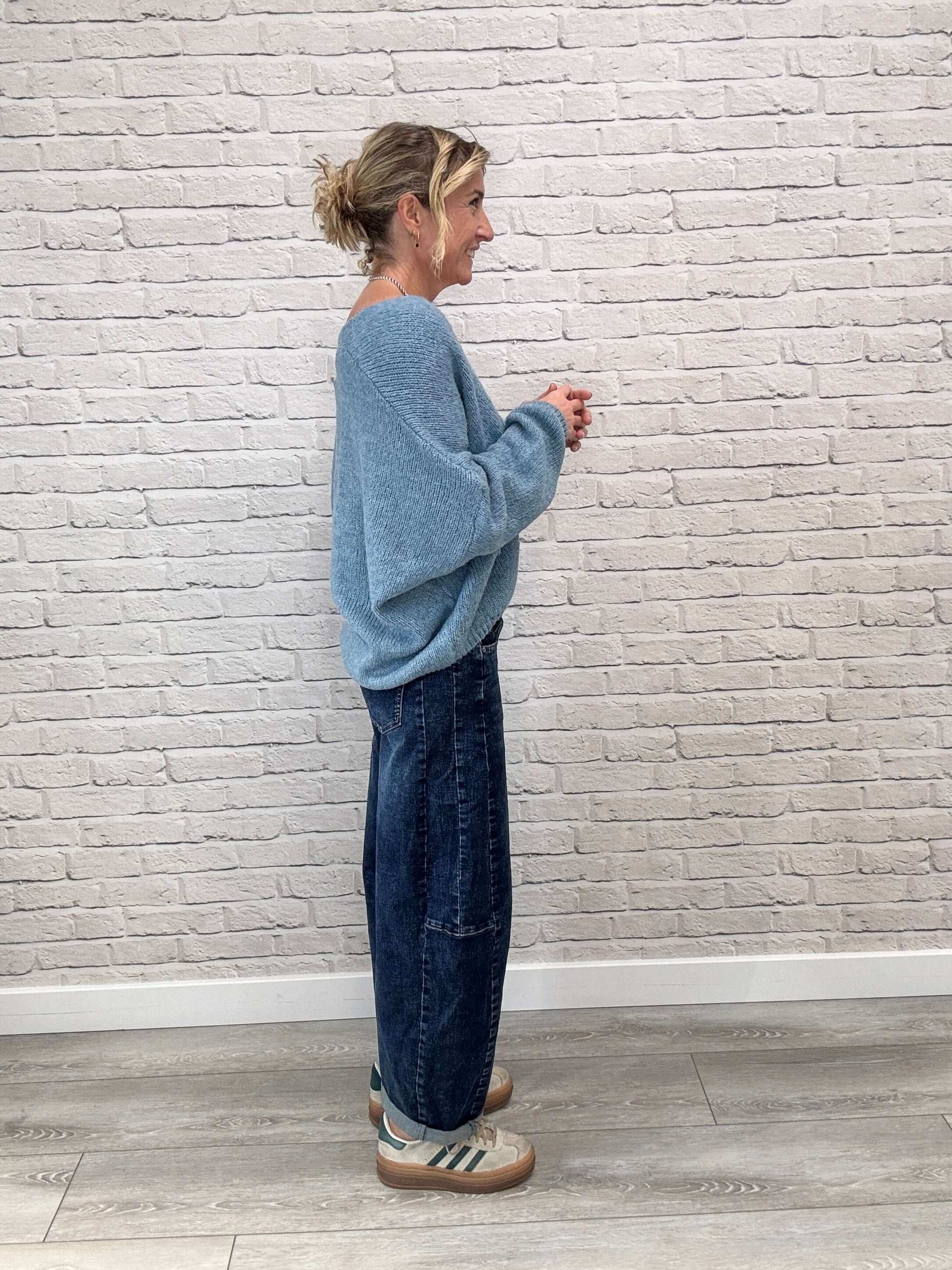 Mid-rise, fitted at the waist, widening at the thigh and knee before tapering at the ankle. This bang on trend shape literally goes with everything. Toughen up with chunky boots or soften with ballet pumps.