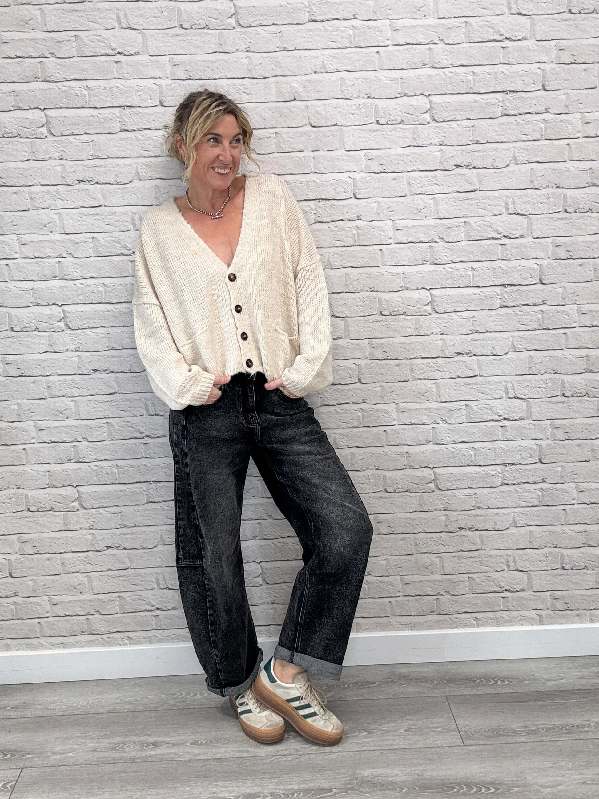 Mid-rise, fitted at the waist, widening at the thigh and knee before tapering at the ankle. This bang on trend shape literally goes with everything. Toughen up with chunky boots or soften with ballet pumps.