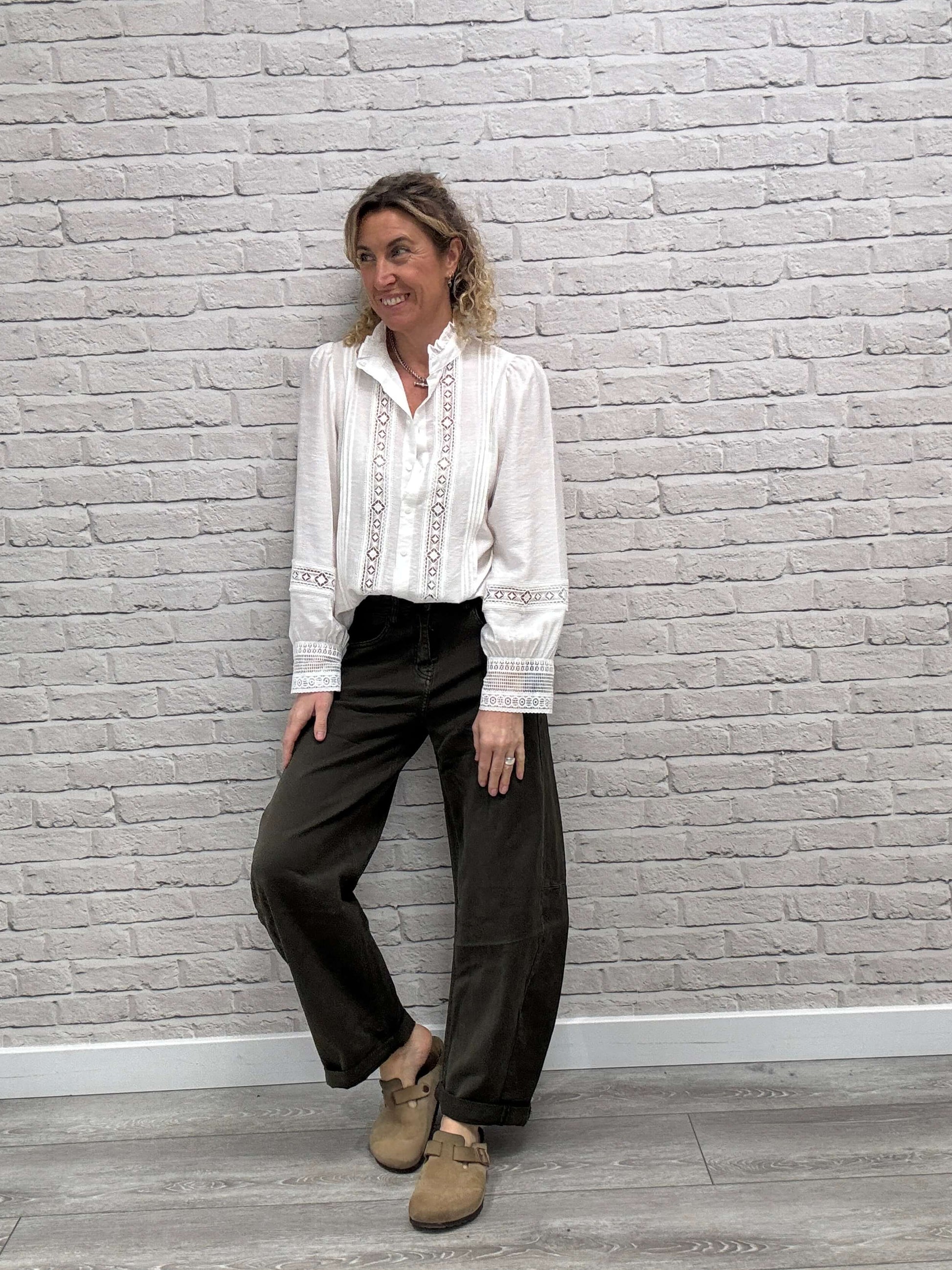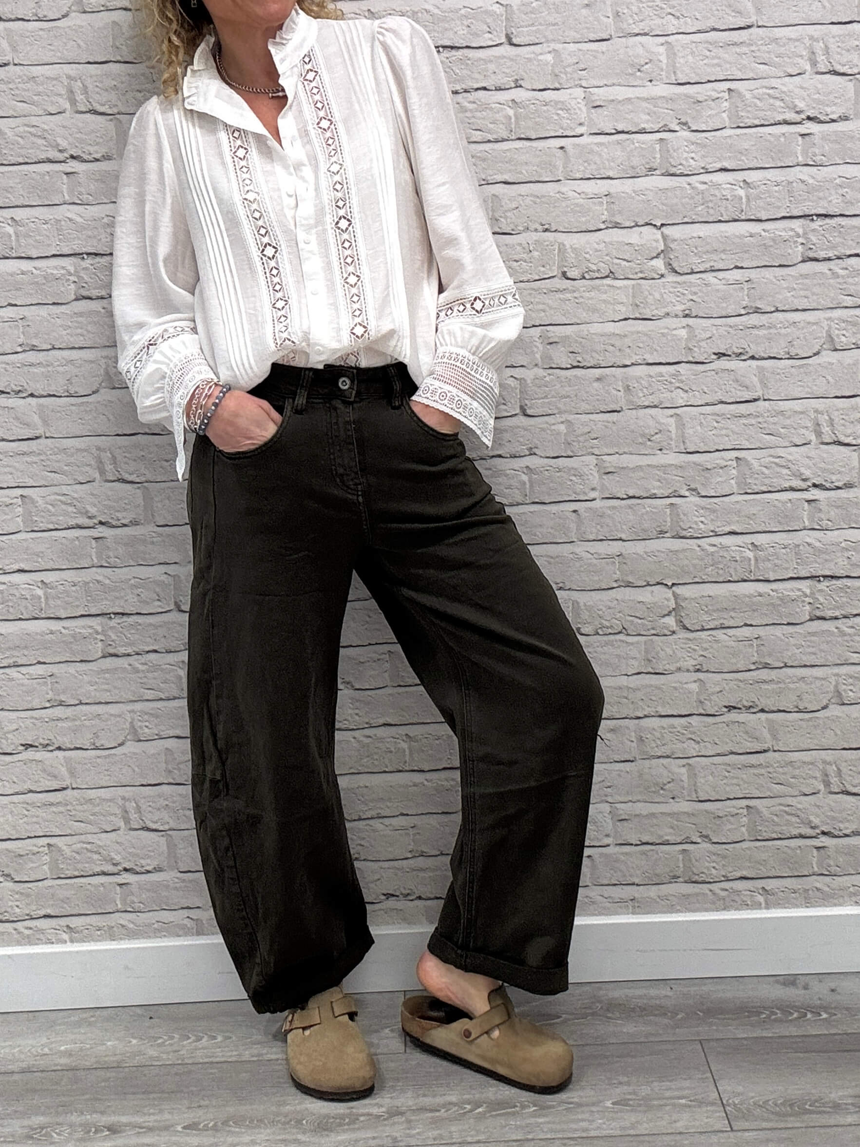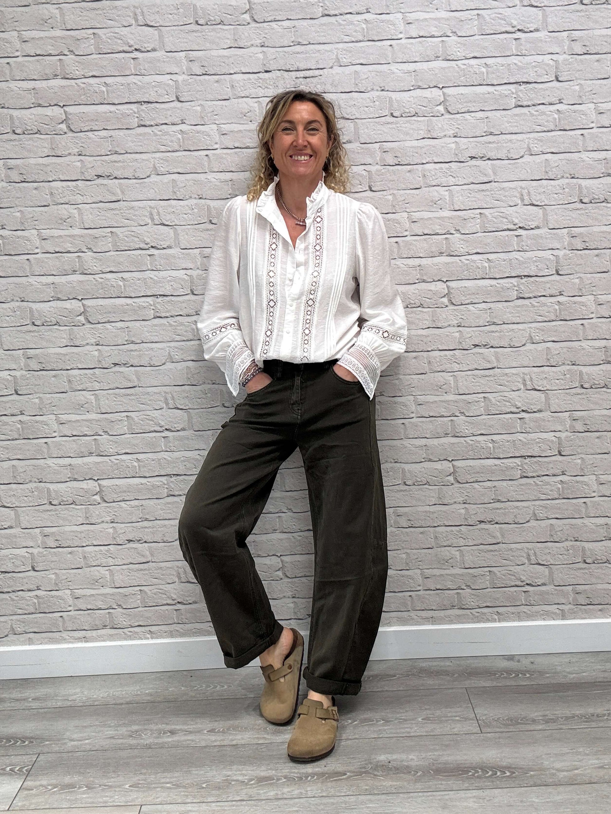 Mid-rise, fitted at the waist, widening at the thigh and knee before tapering at the ankle. This bang on trend shape literally goes with everything. Toughen up with chunky boots or soften with ballet pumps.