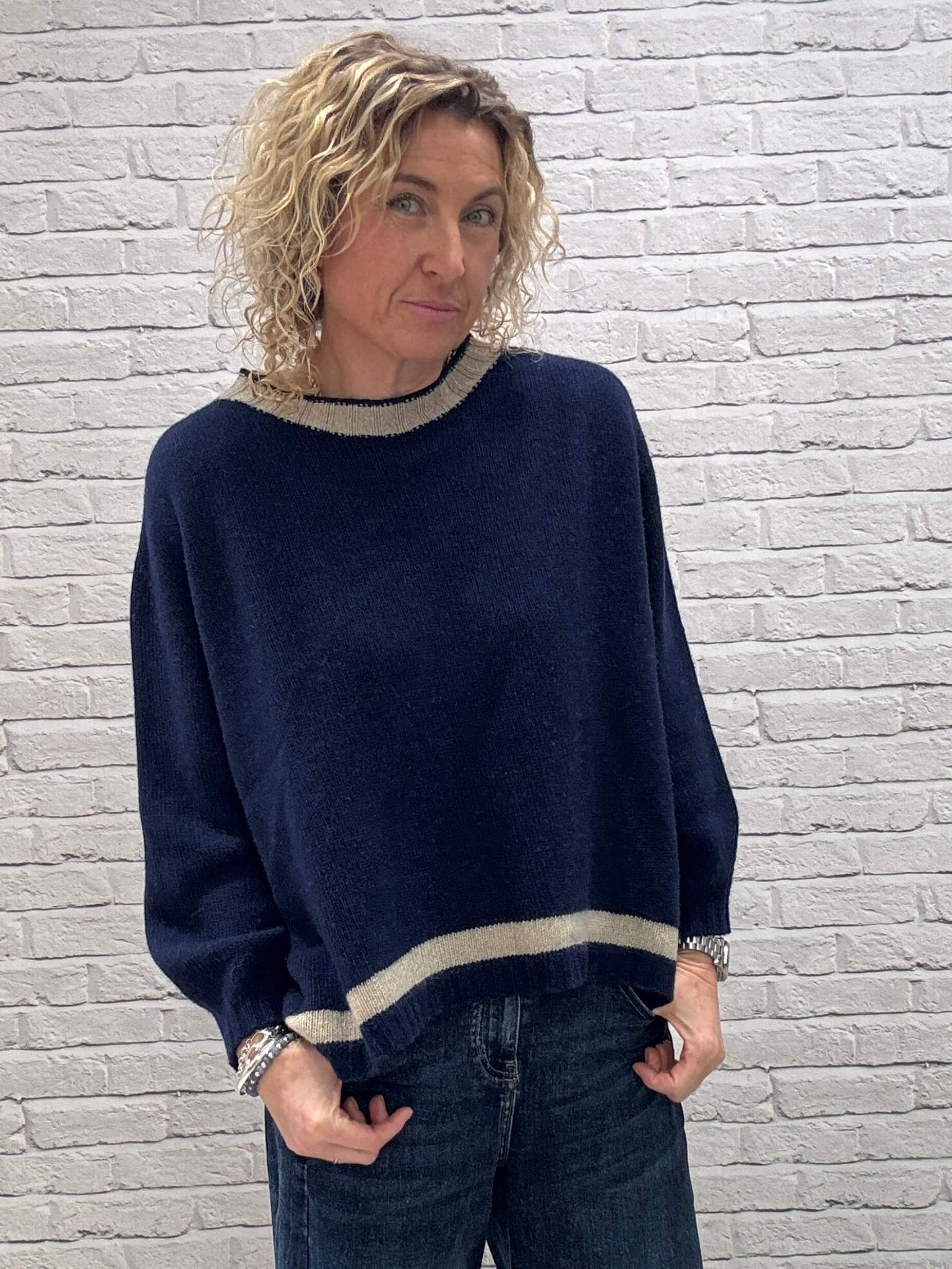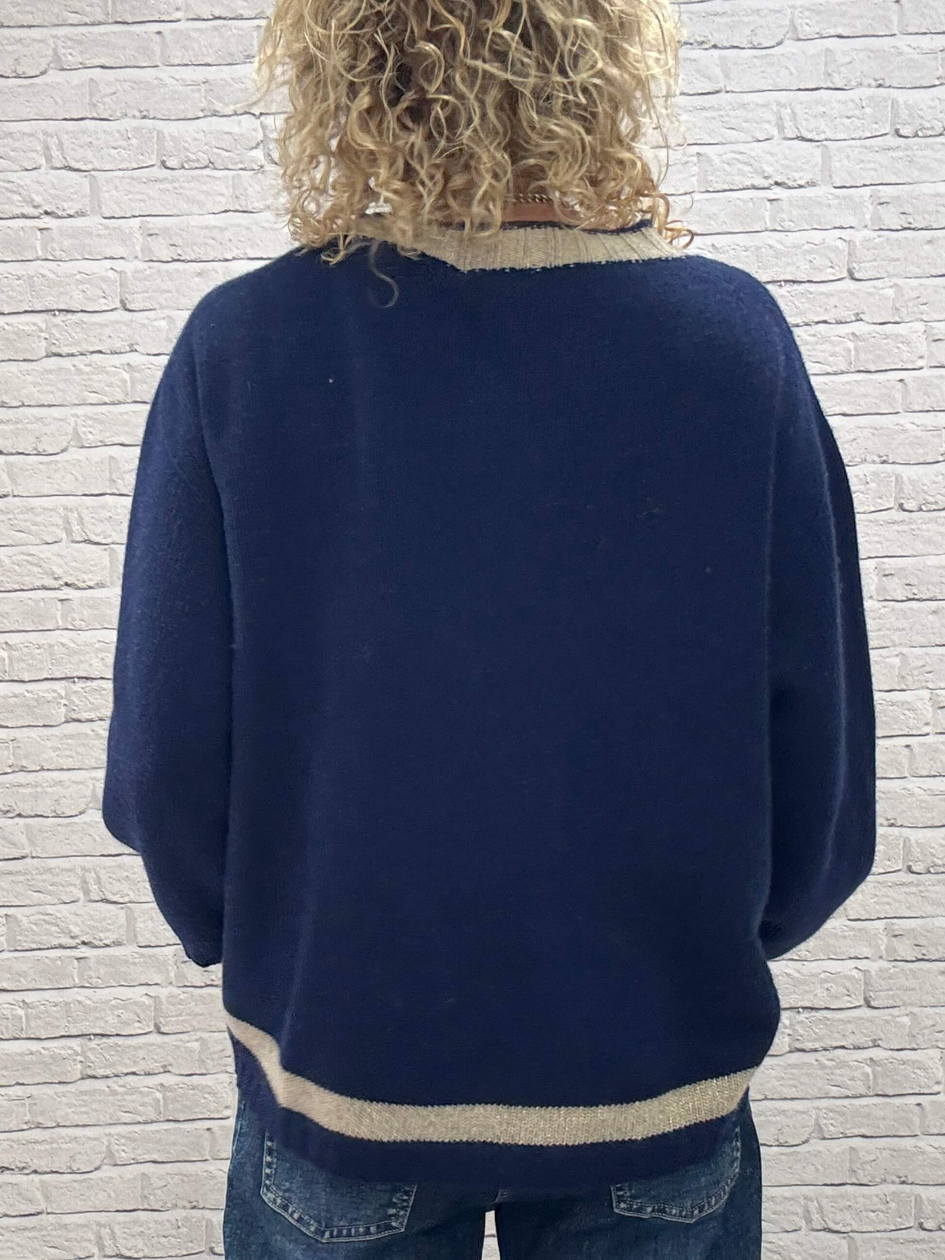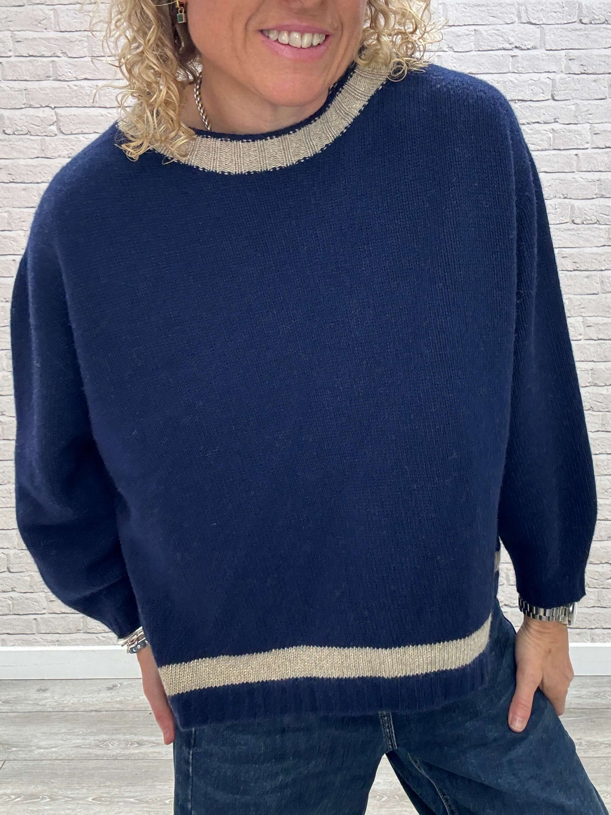 Cashmere Blend Sparkle Knit | Navy & Gold