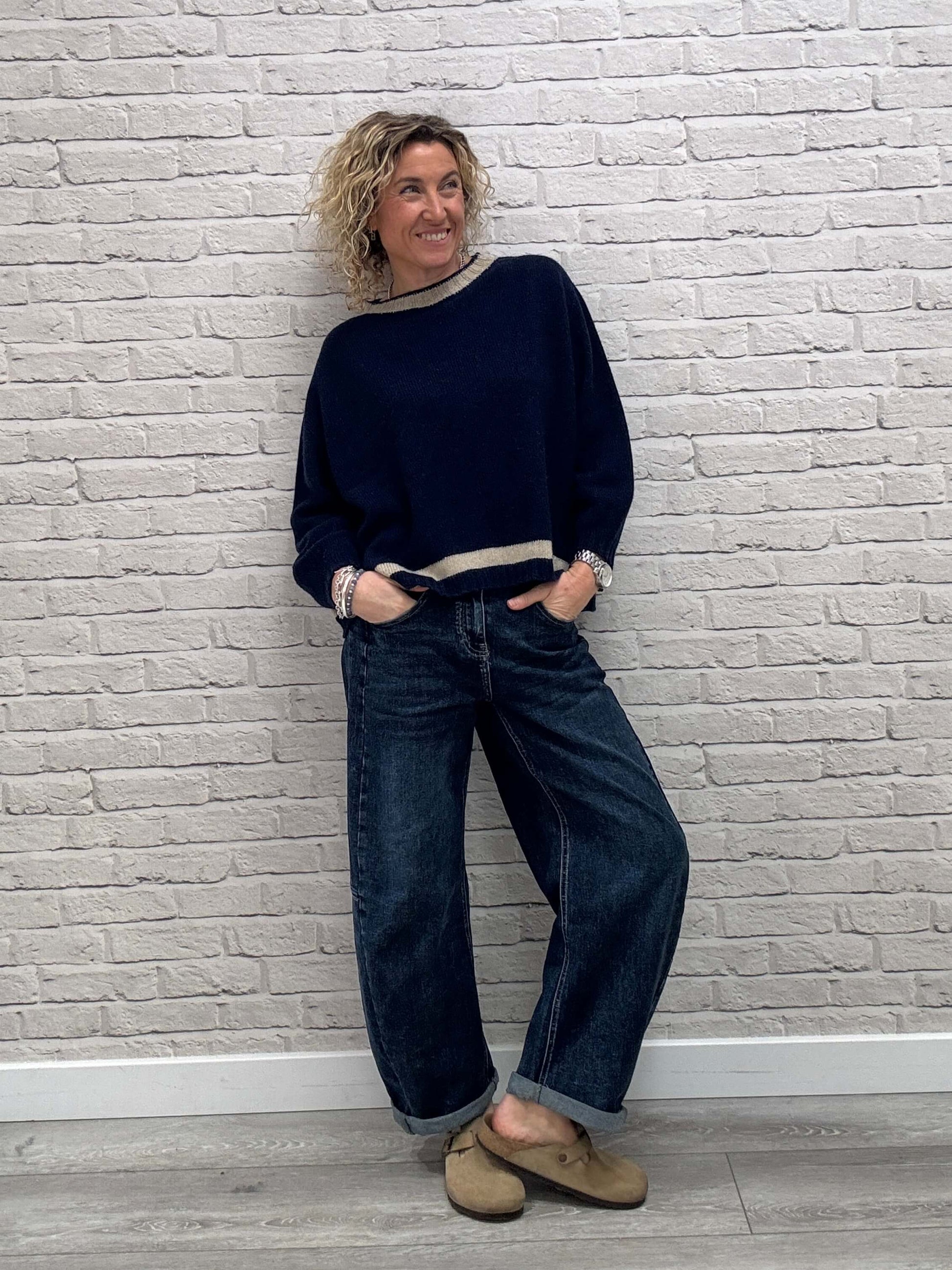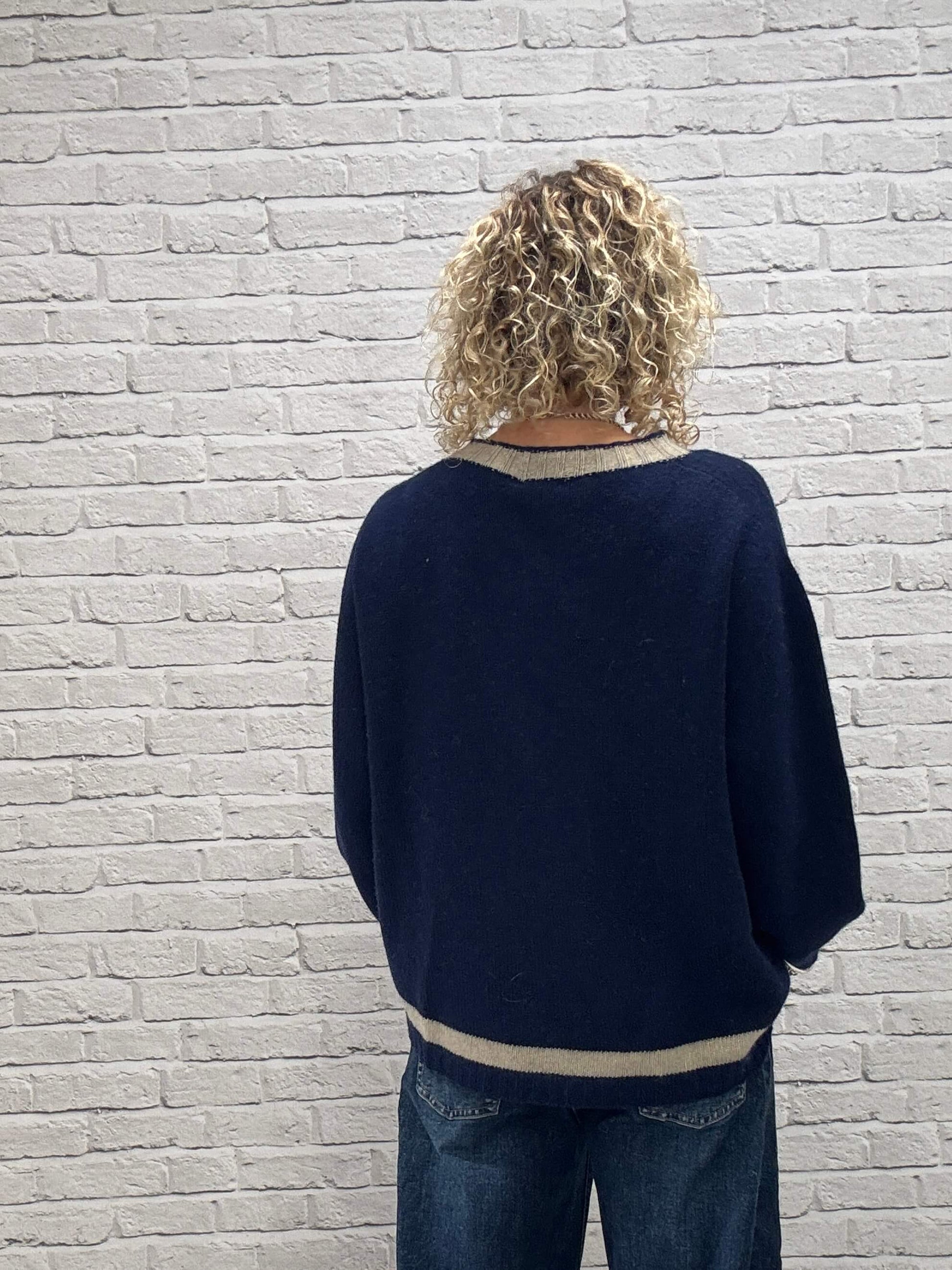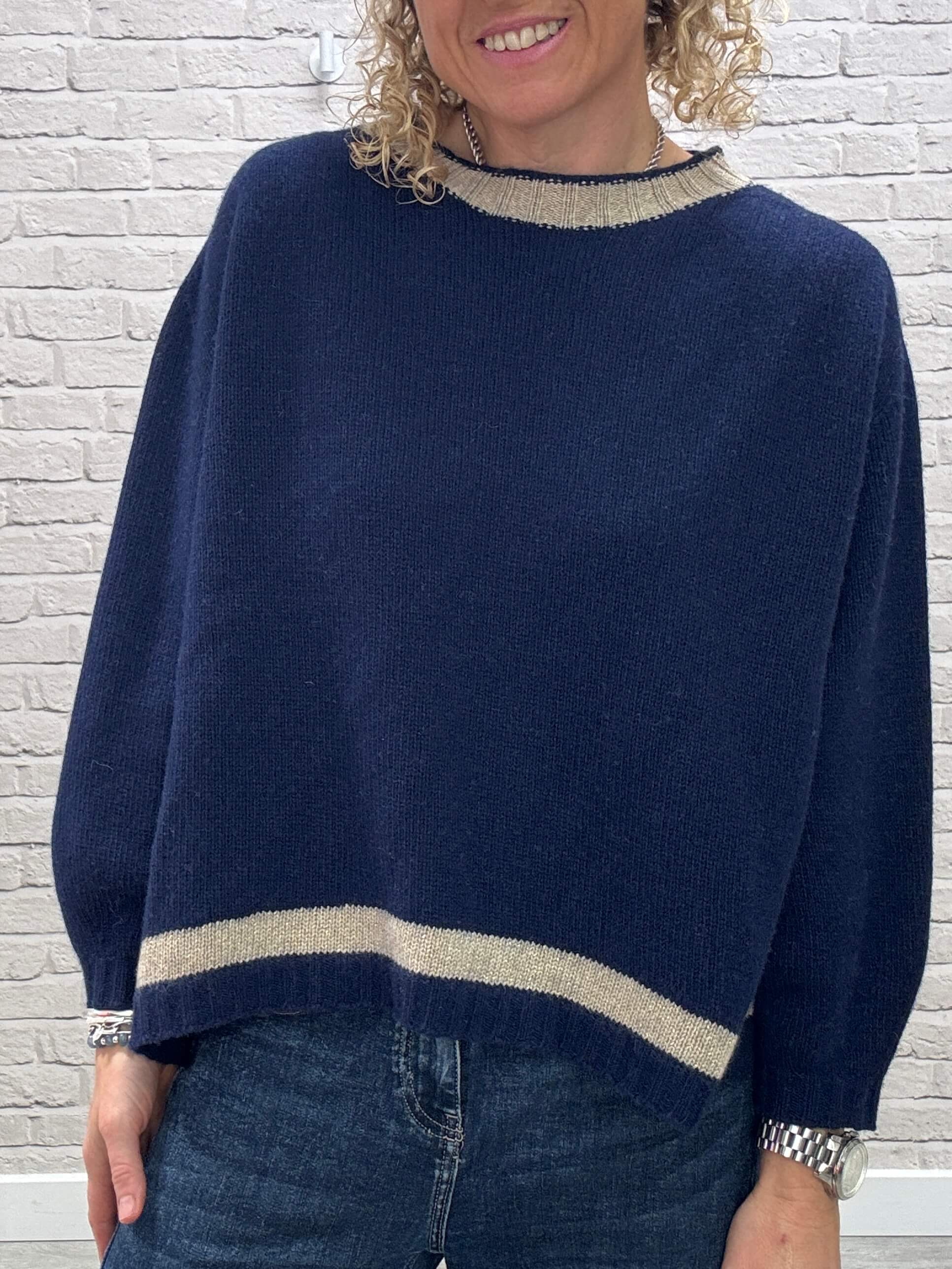 Cashmere Blend Sparkle Knit | Navy & Gold