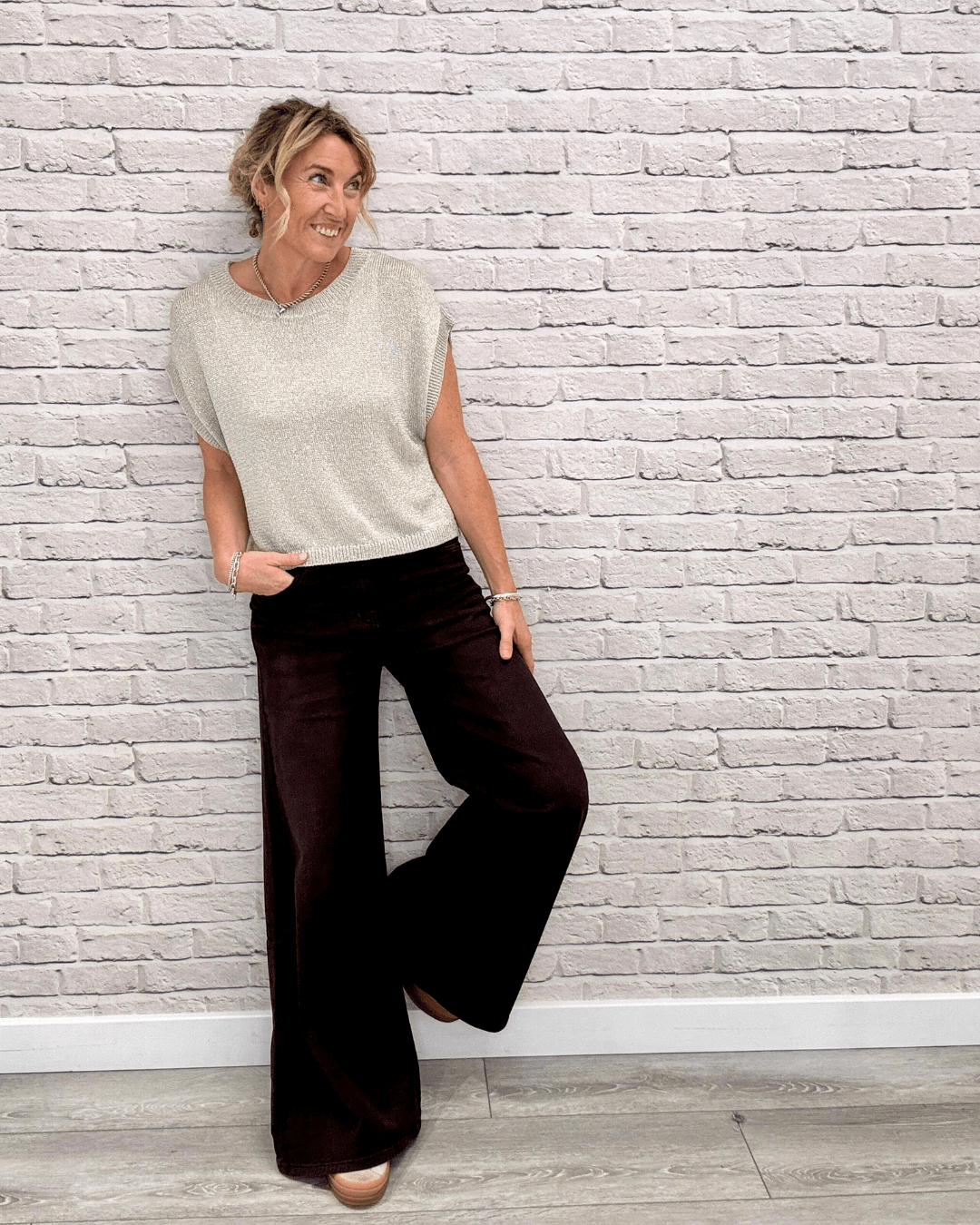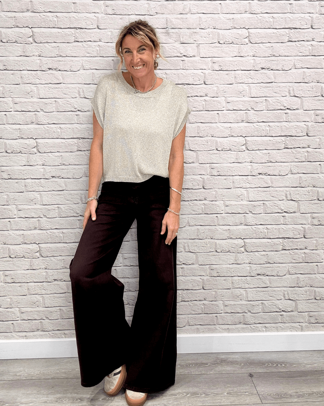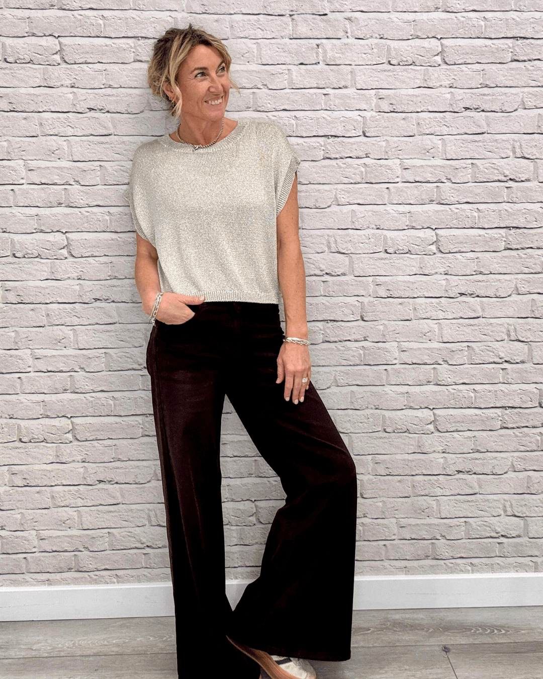 Sleeveless round-neck top with a lustrous, sparkly finish. Made from a fine, meshed fabric with a straight cut for a sleek, effortless fit.