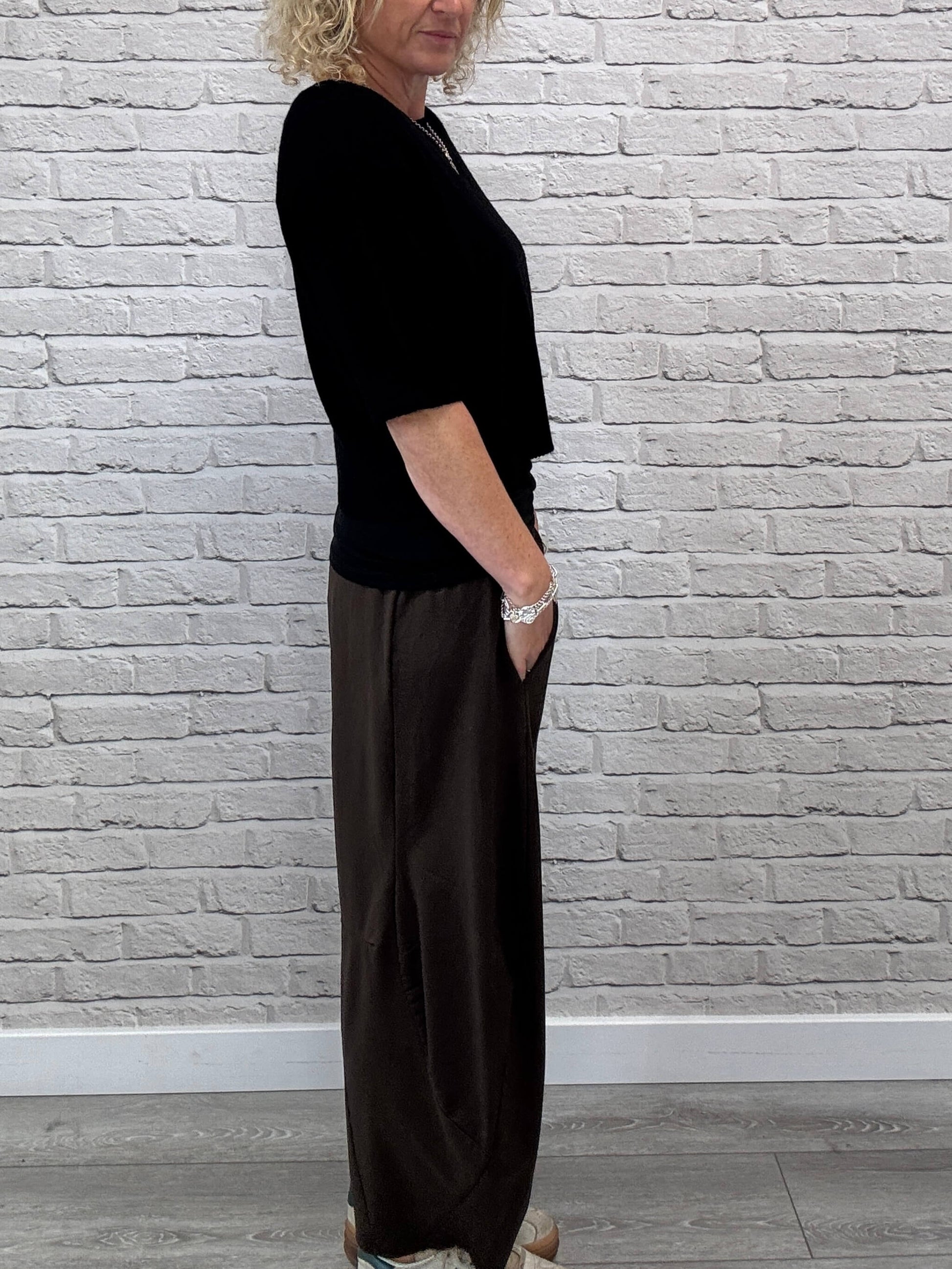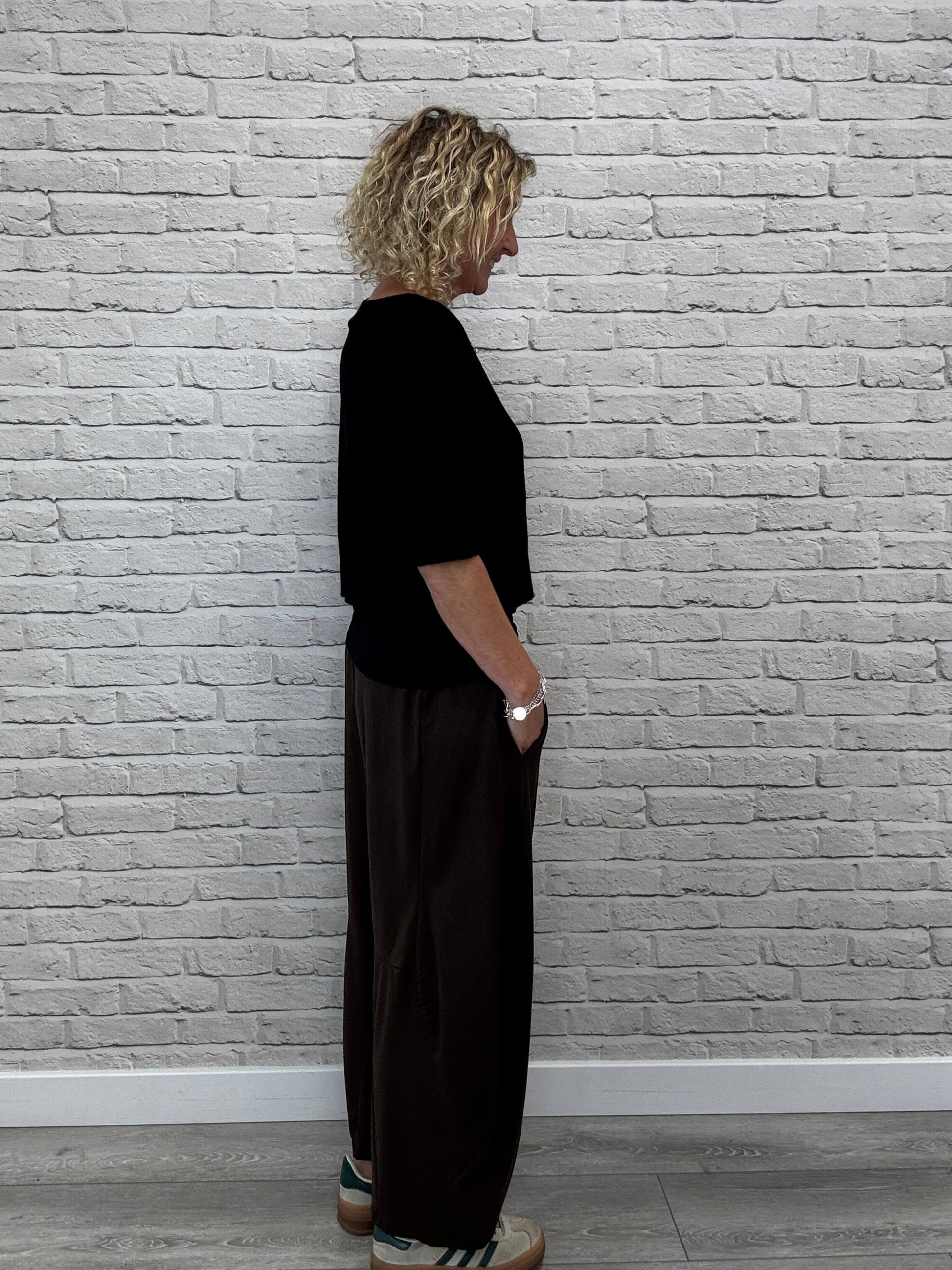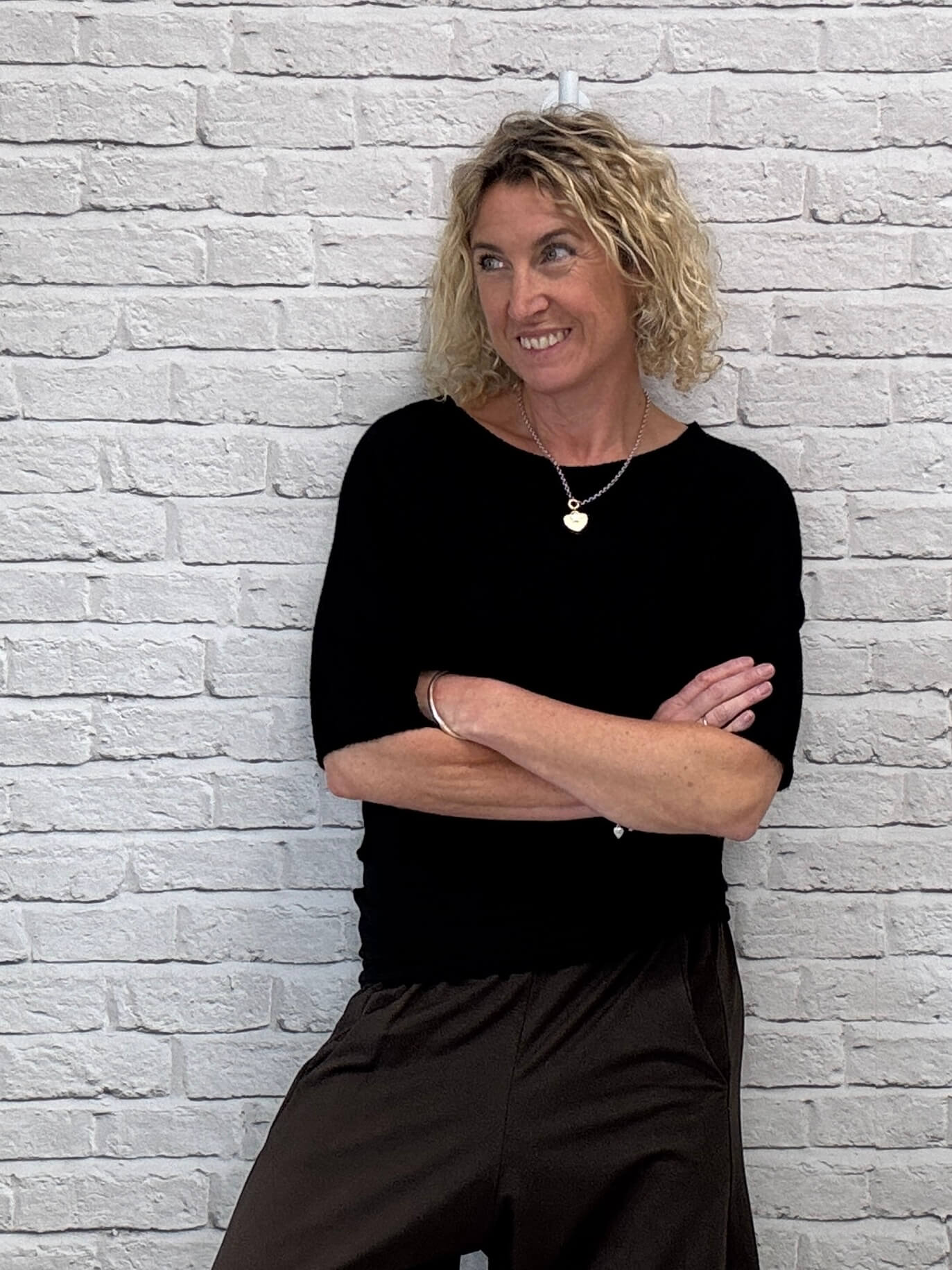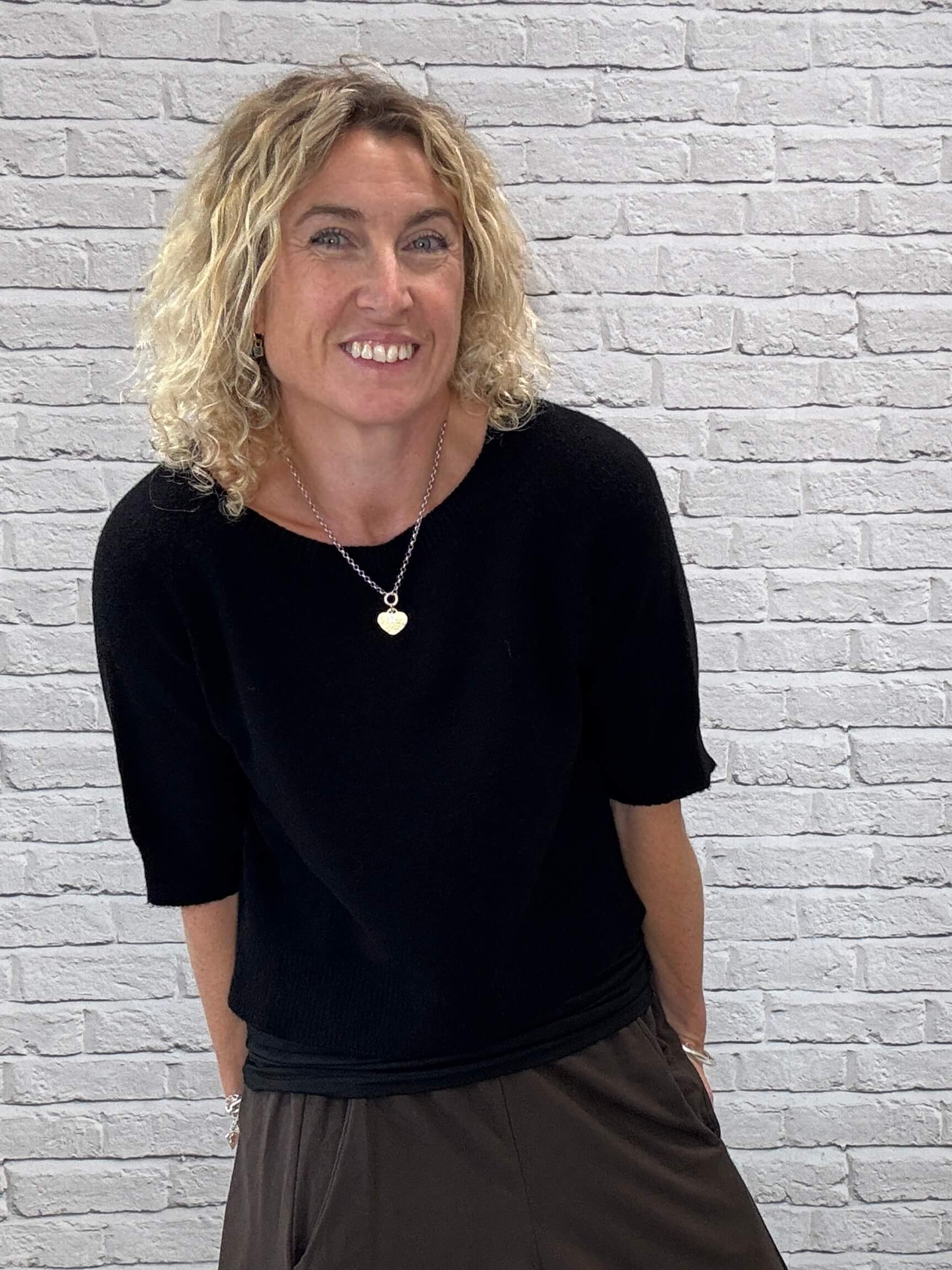 A smart, neat-fit sweater for that effortless polished look. Short sleeves finishing on the elbow with ribbed cuffs. High boat-neckline with ribbed detailing. Soft to touch.