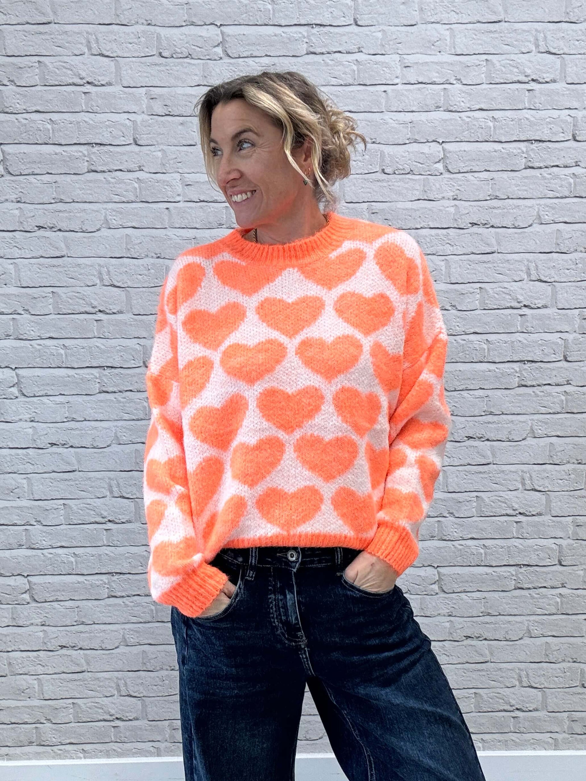 A fabulous oversized jumper with neon pink hearts. Super soft and slouchy.