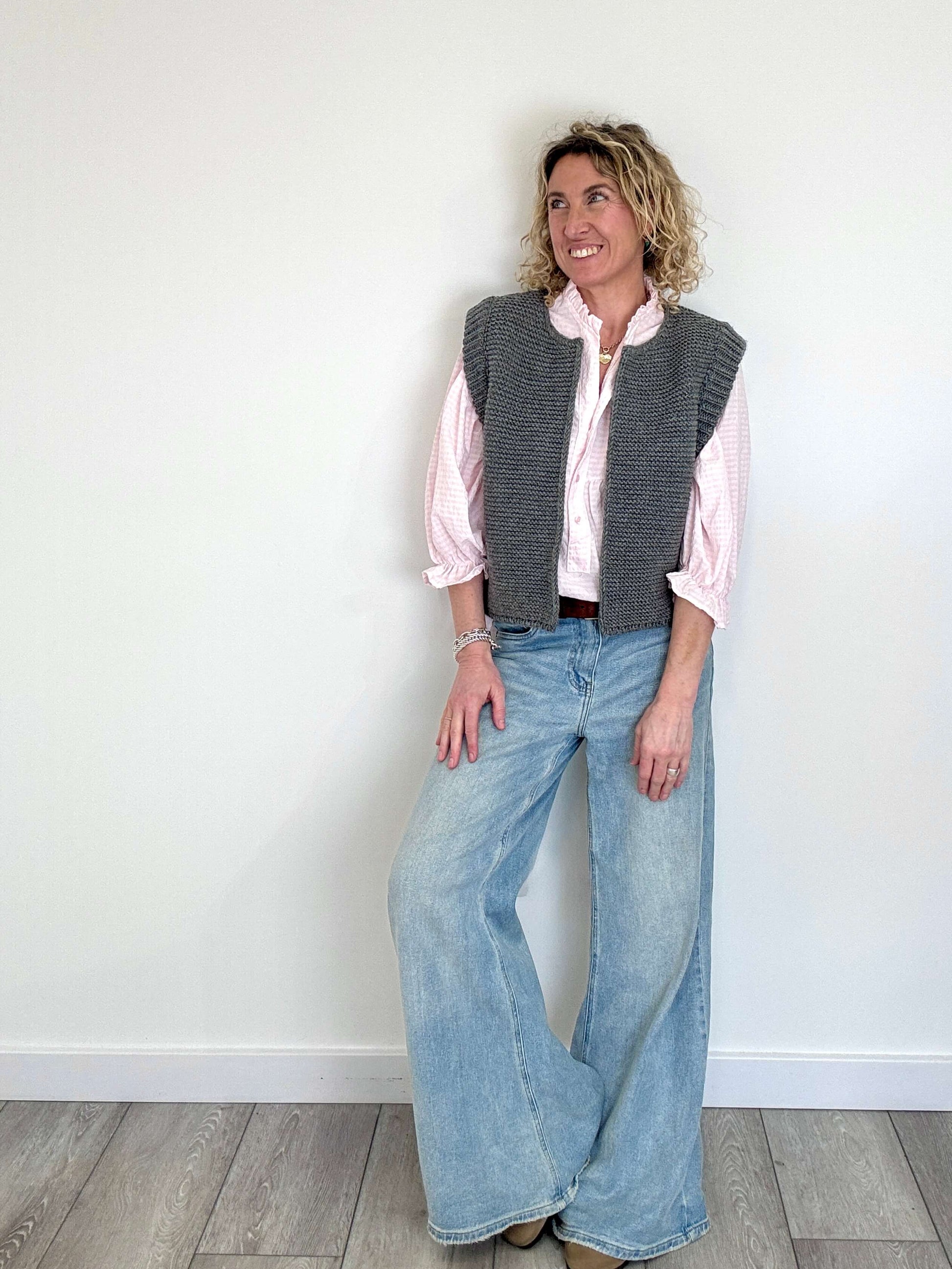 Designed with a button front, standing frill collar and elasticated frill cuffs that sit just below the elbow. Cut in a relaxed, loose fit for effortless styling.