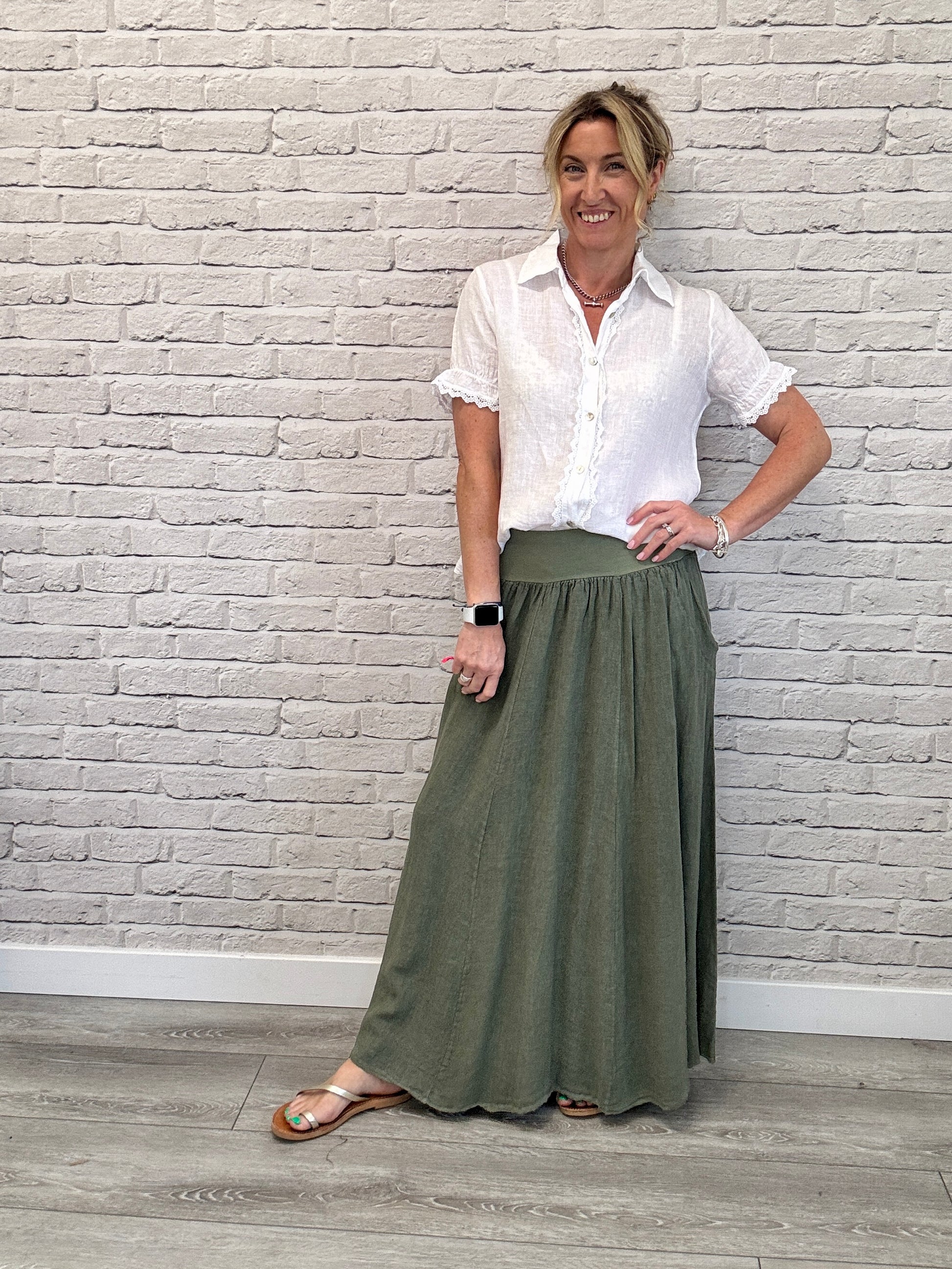 The Lilly has a long, billowy silhouette with stretchy waistband for an effortless fit....oh, and it also has side pockets - result! Destined to become your new best friend you'll be back to get this skirt in every single colour!