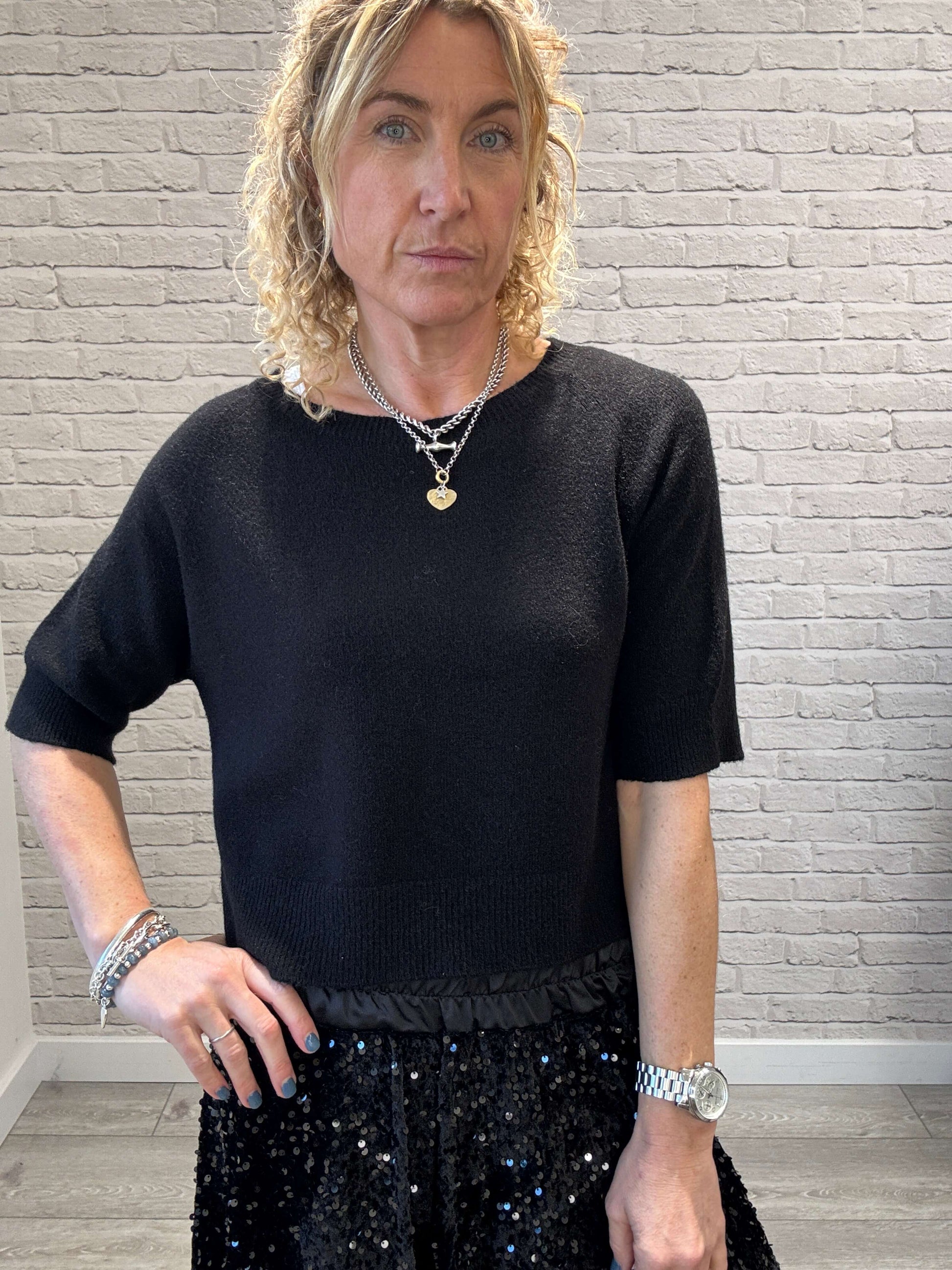 Da is wearing hers with our Black Charlotte Knit