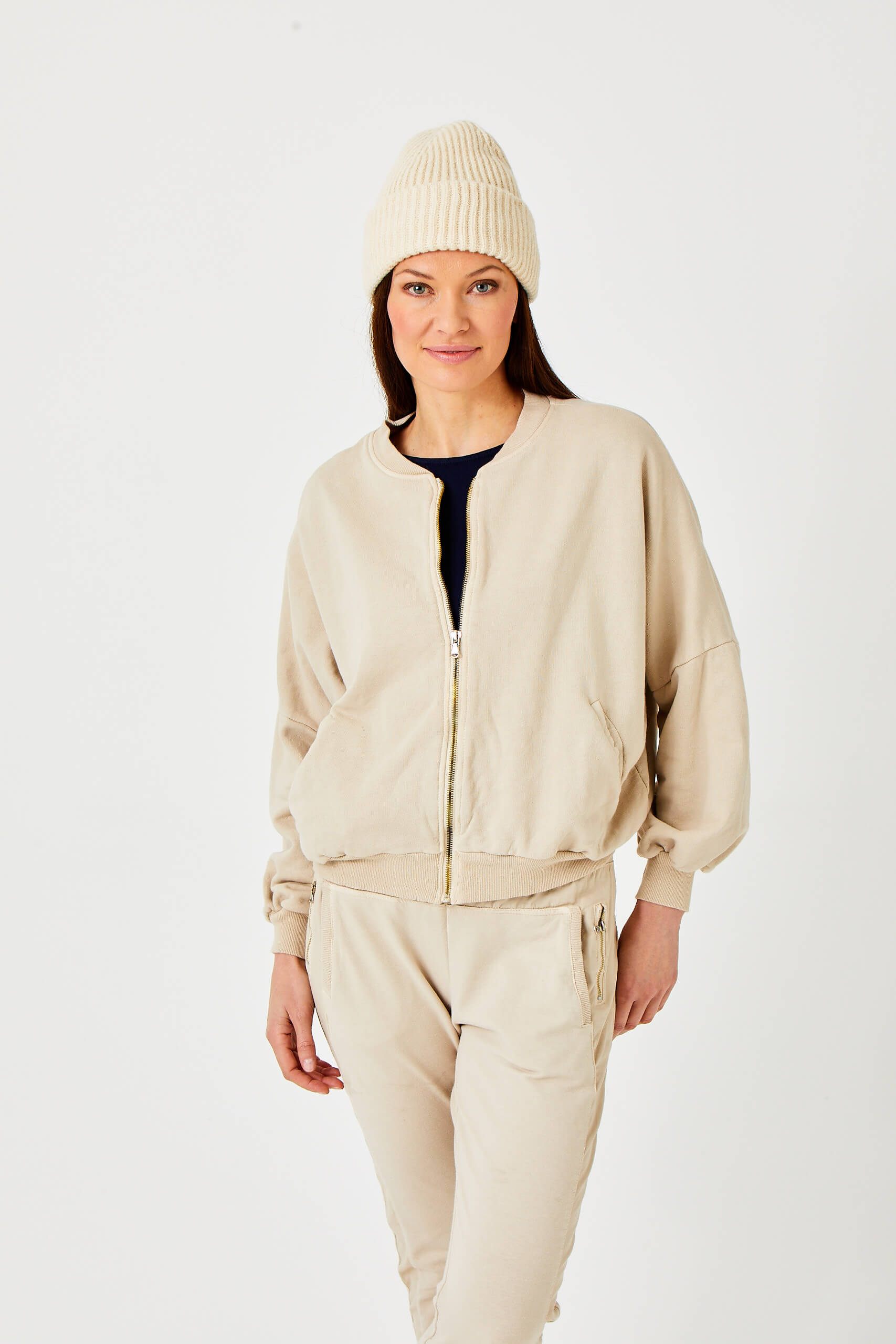 Nail the off-duty vibe with our super cool zip up jacket -a cross between a sweatshirt and bomber jacket. Perfect for layering, the Mabel can be worn over your favourite tee on cool mornings or under a jacket when the temperature drops.