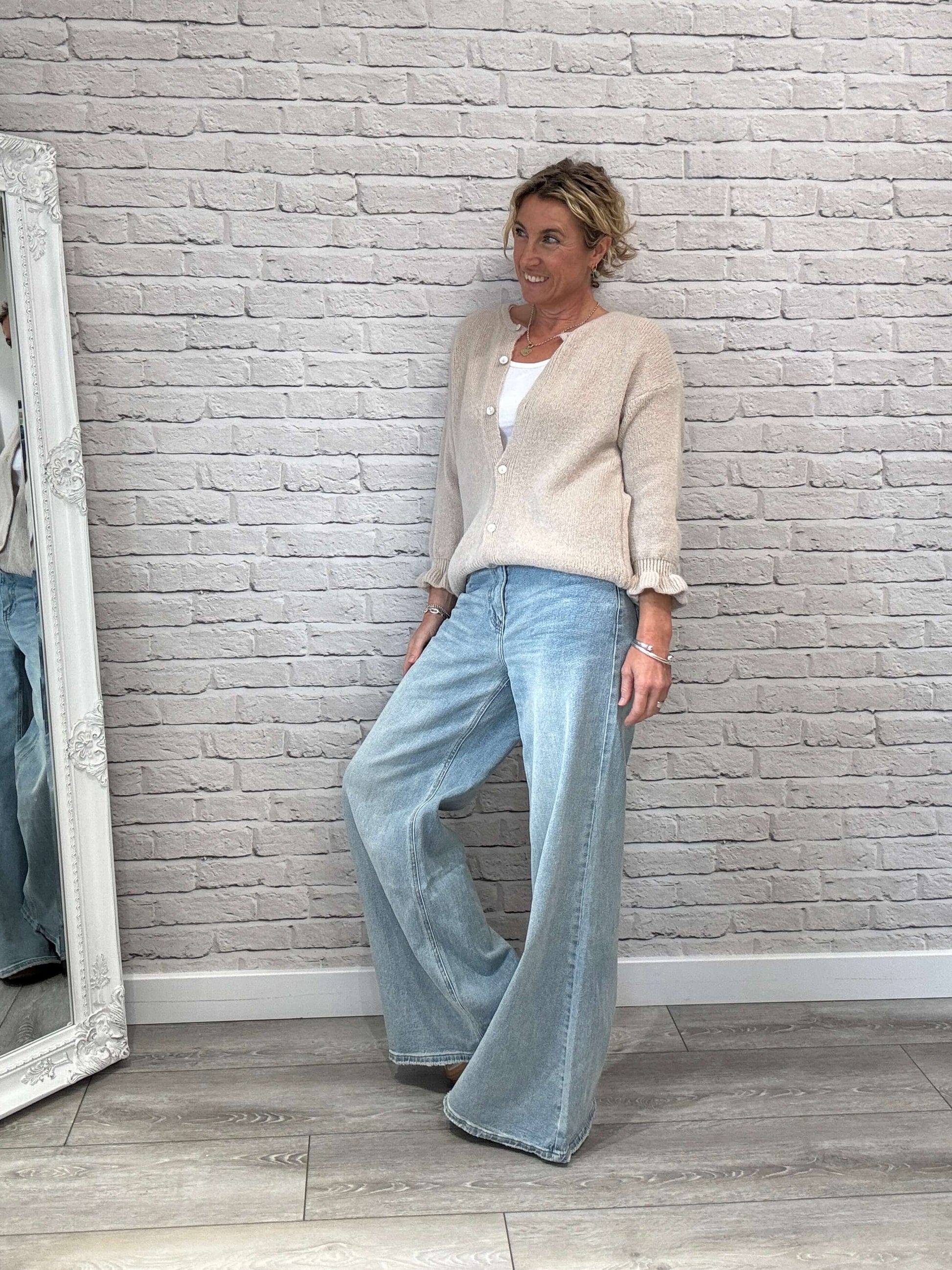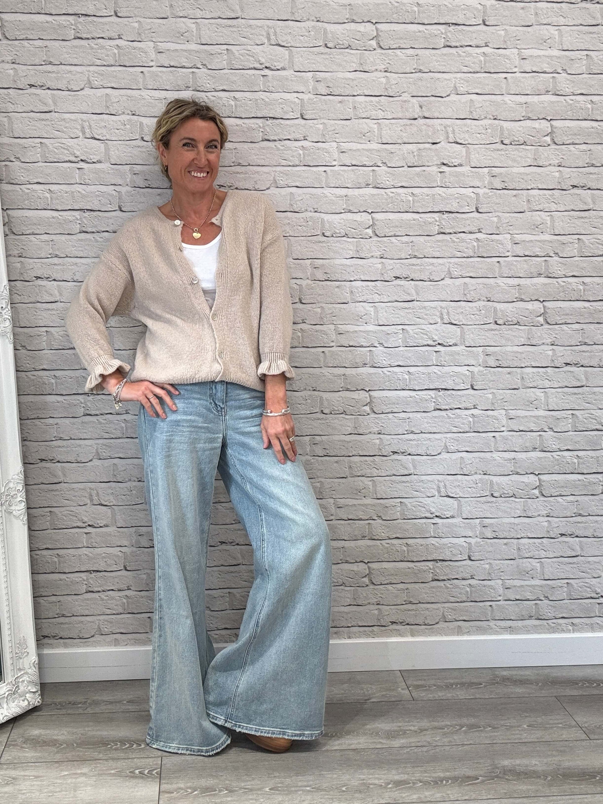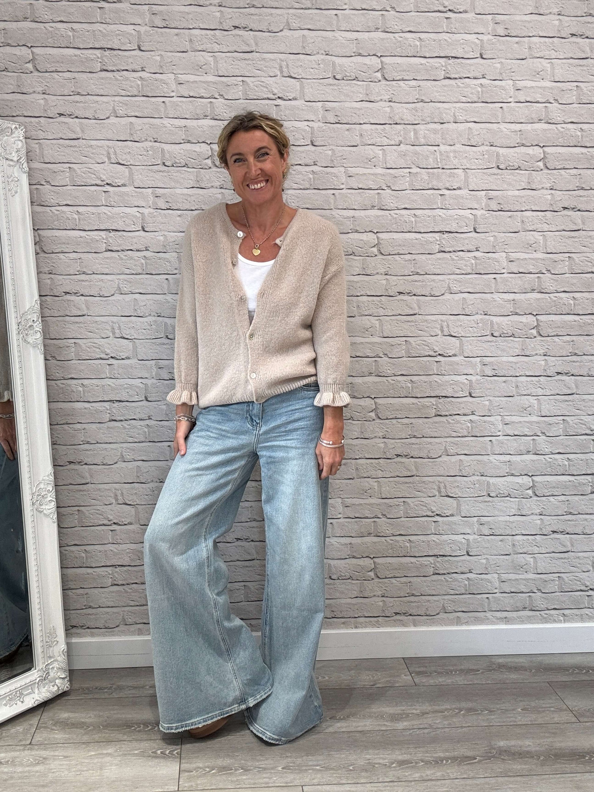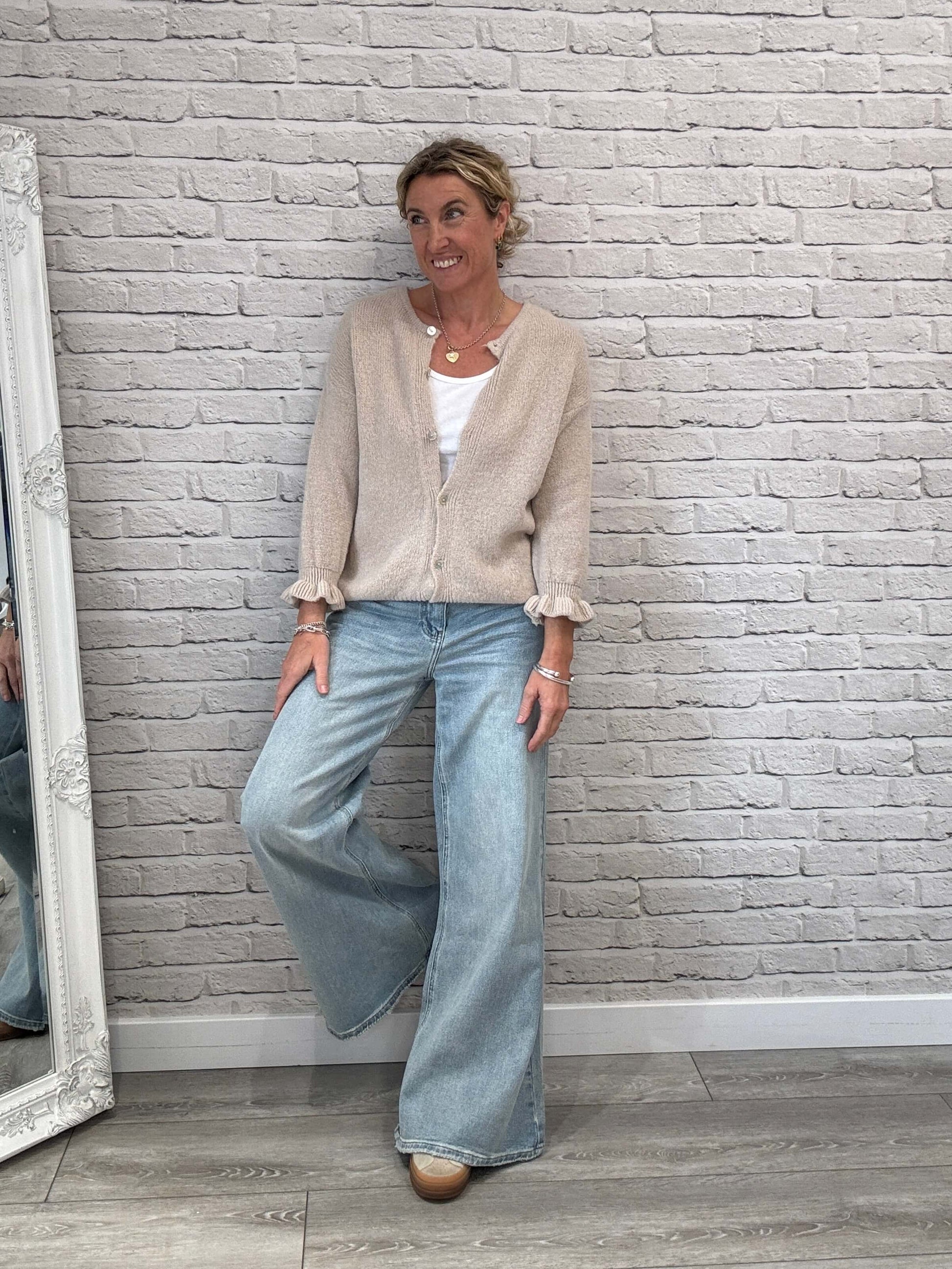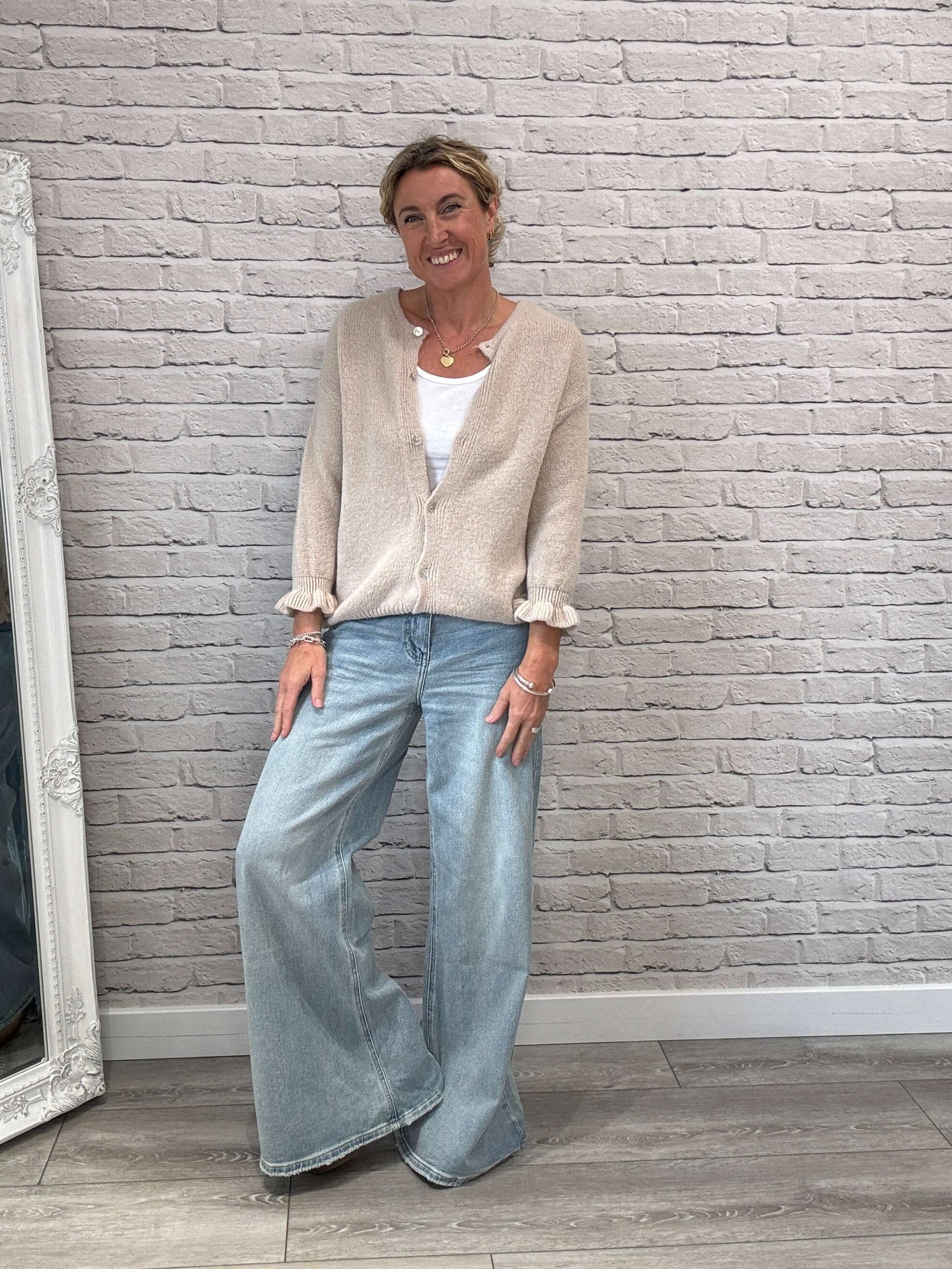 A super cute cardigan with ruffle detailing on the sleeves. Made from a gorgeous snuggly yarn with button front. Keep it casual and style with denim for an off-duty vibe or wear unbuttoned over a dress. Pair with skirts and joggers too.