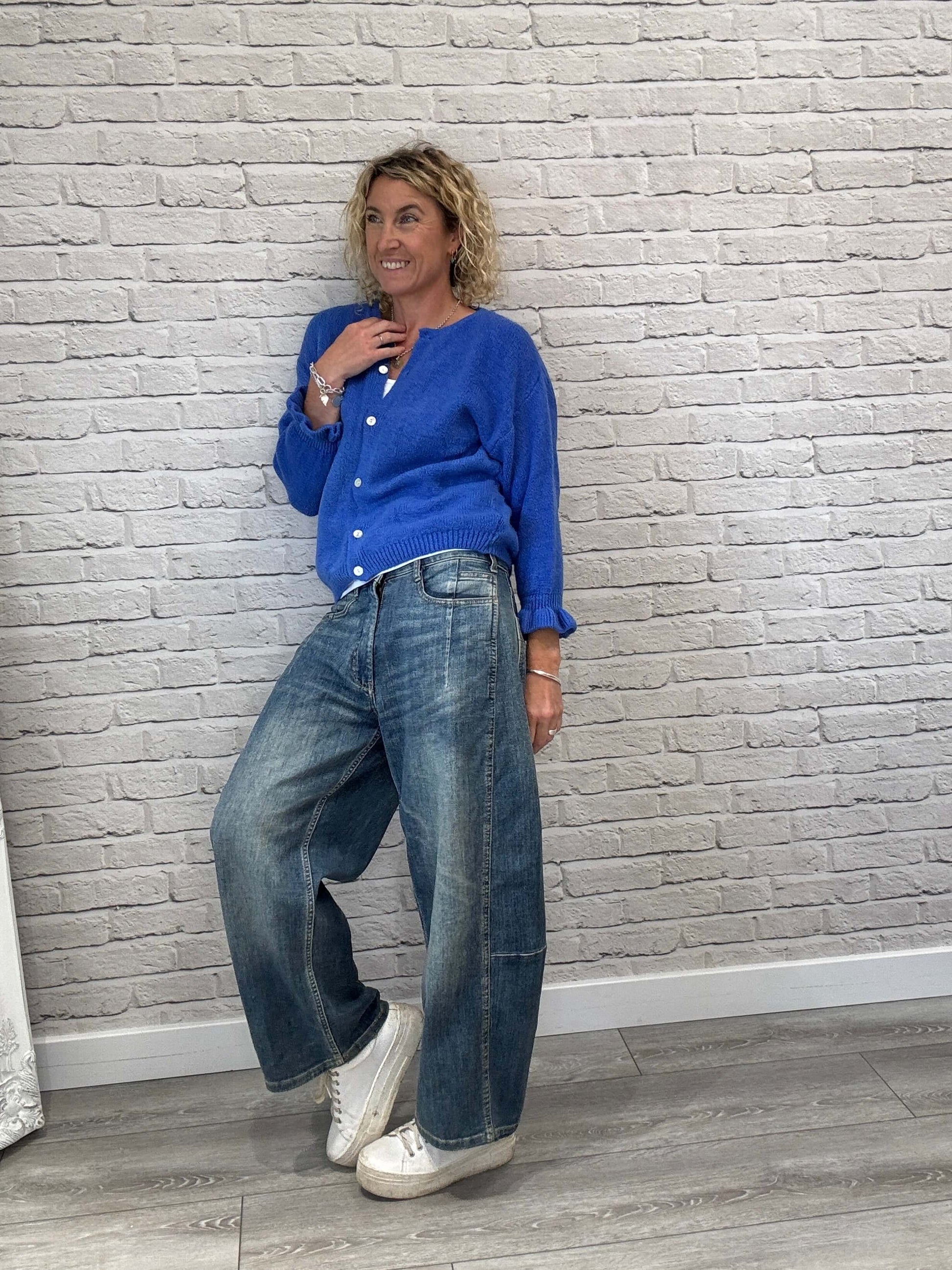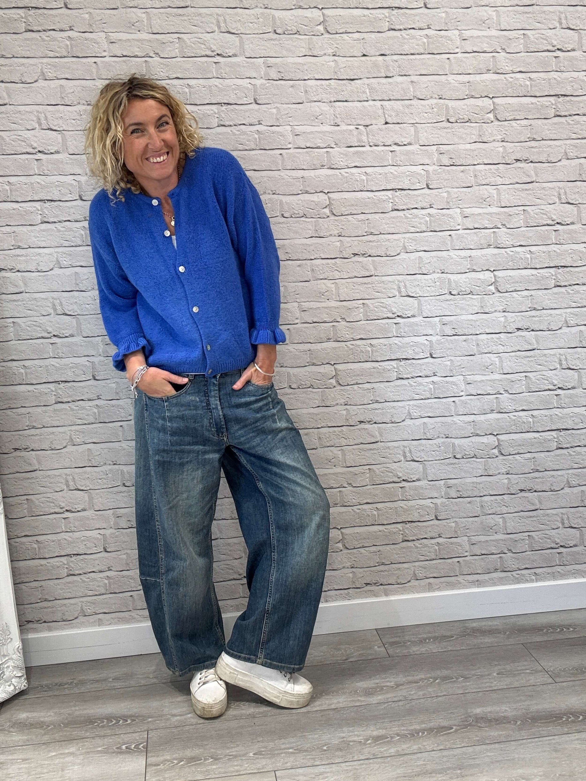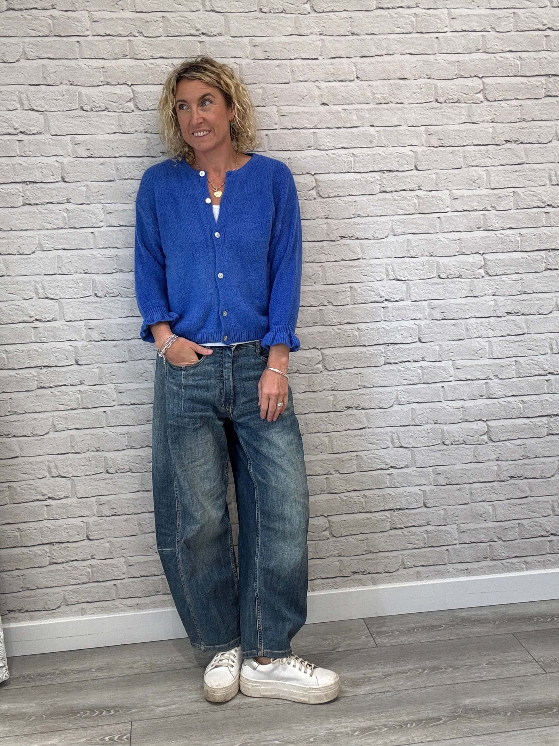 A super cute cardigan with ruffle detailing on the sleeves. Made from a gorgeous snuggly yarn with button front. Keep it casual and style with denim for an off-duty vibe or wear unbuttoned over a dress. Pair with skirts and joggers too.