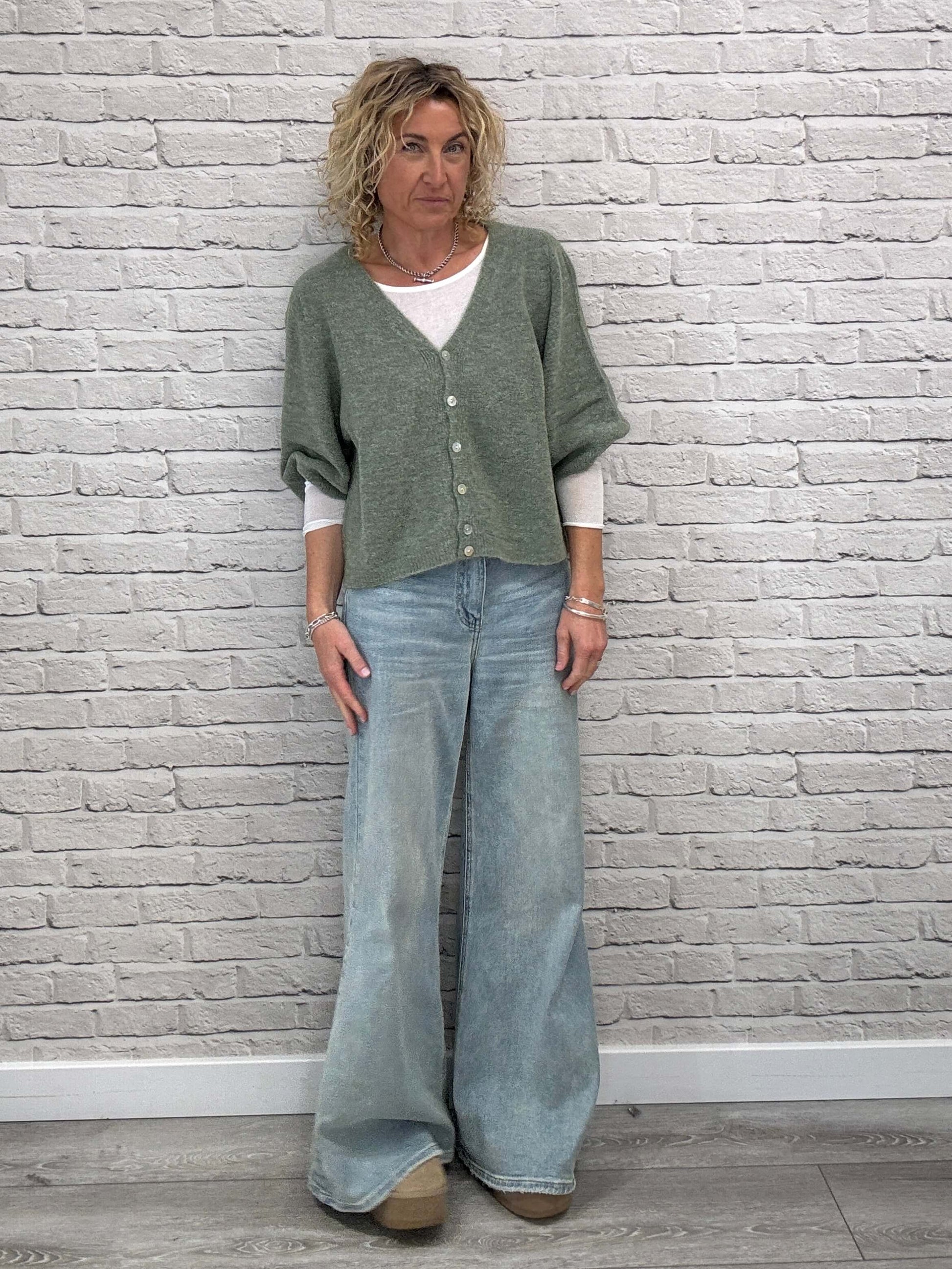 Your new layering must-have: wide half sleeves, button V front, effortless shape. Equally chic layered over a dress as it is styled with jeans, skirts or barrel joggers. Wear solo in spring/summer, layer with our Body Hug in Winter. An all season staple.