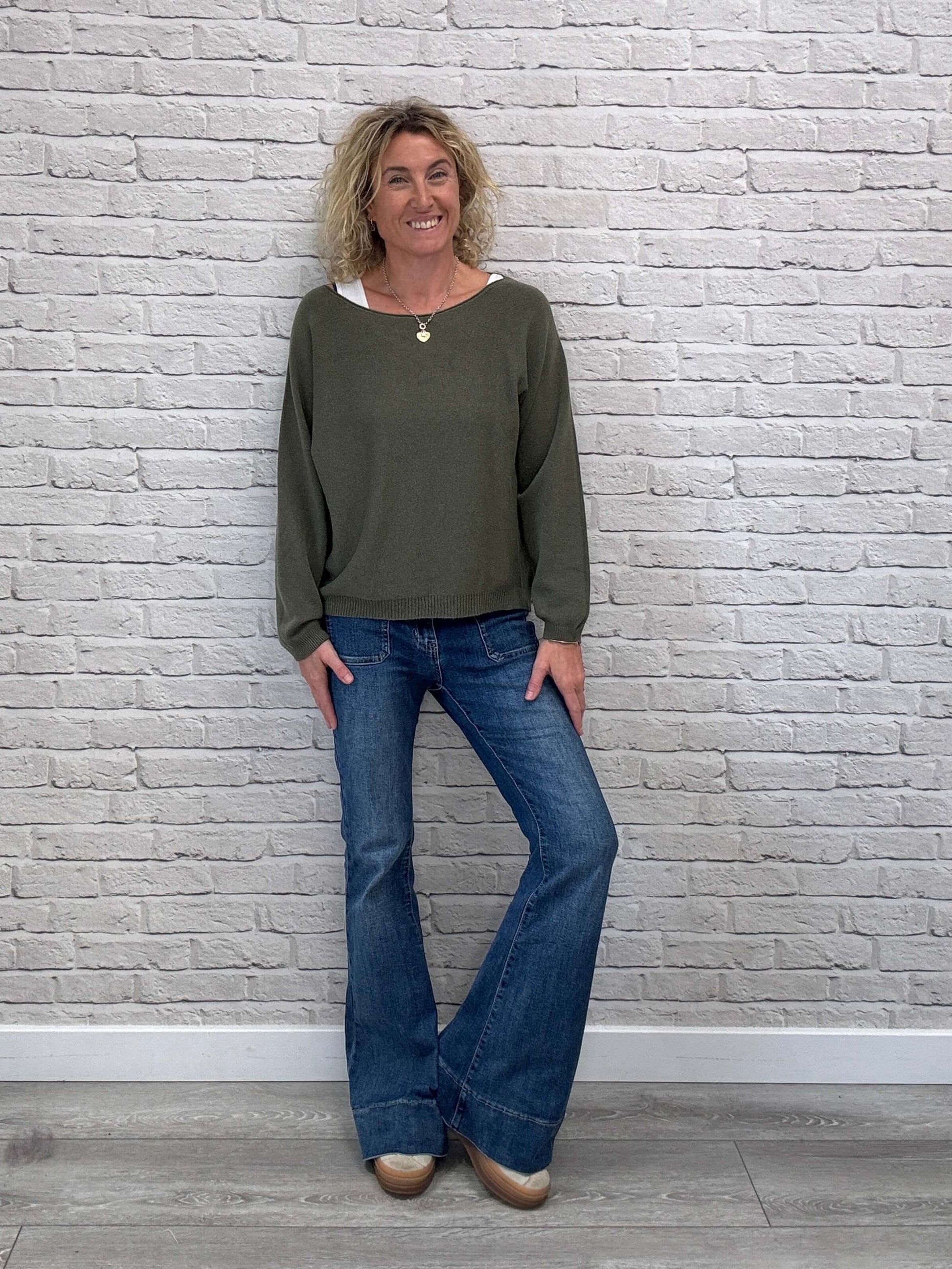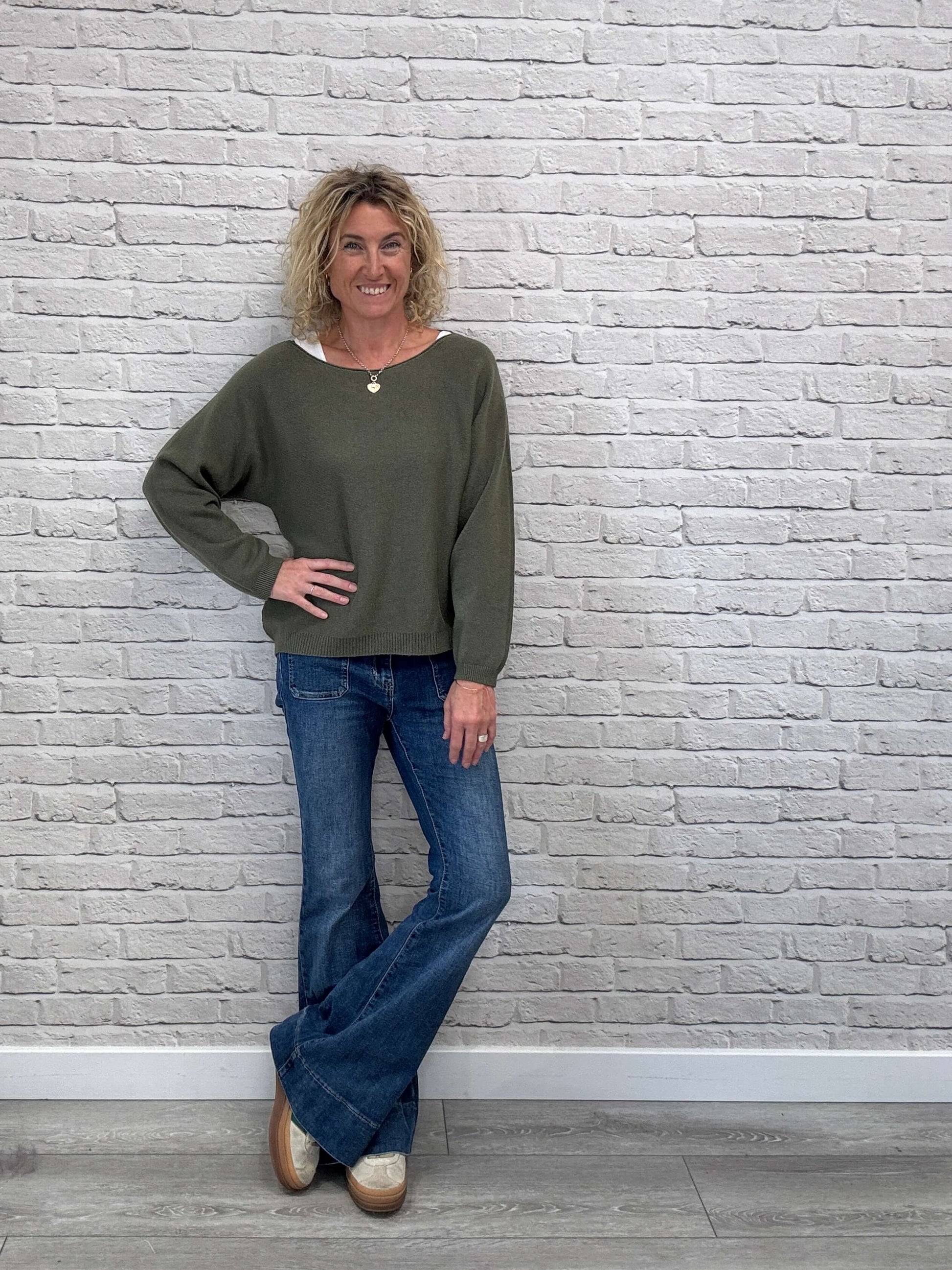 A soft-touch knit with a relaxed fit and flattering curved hemline. Perfect for layering or wearing solo. Effortless style, lightweight but cozy. An everyday staple.