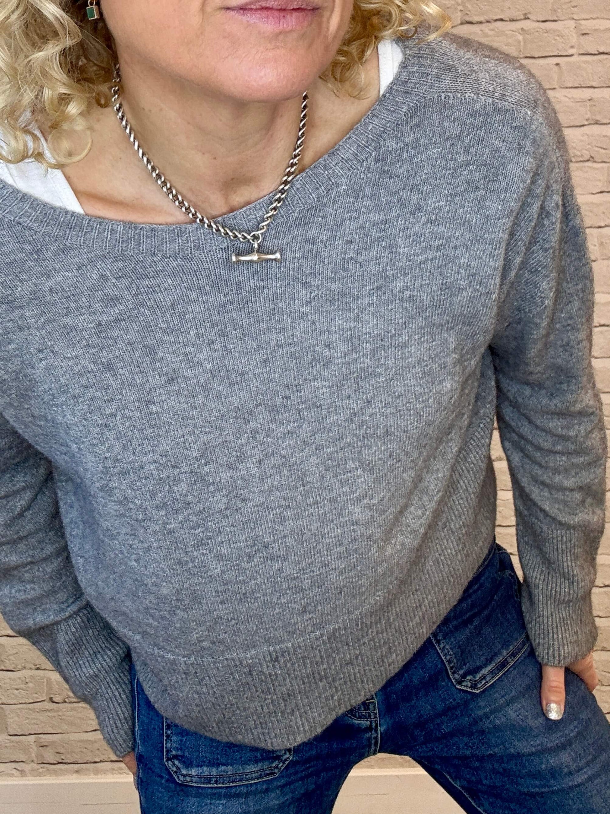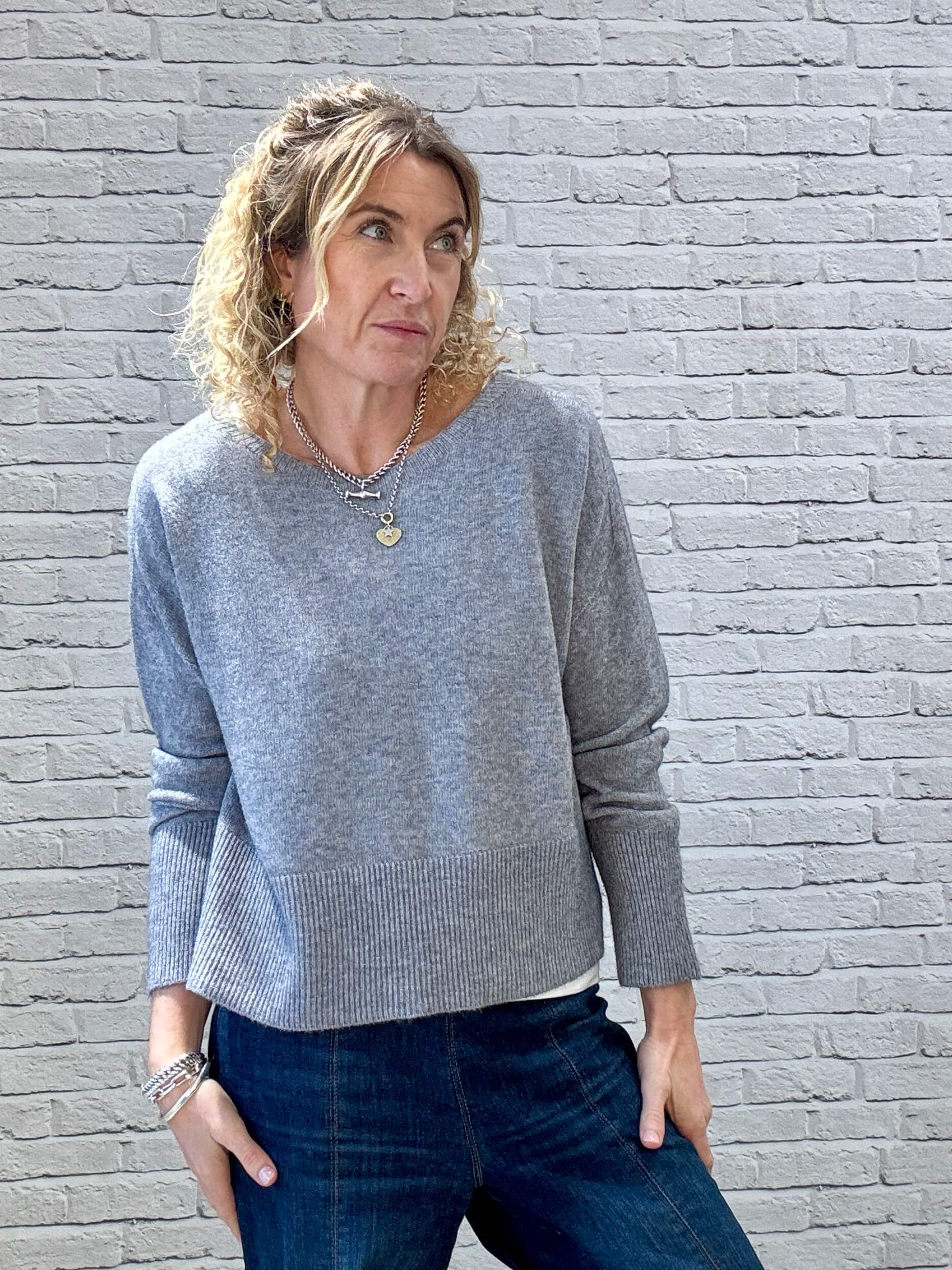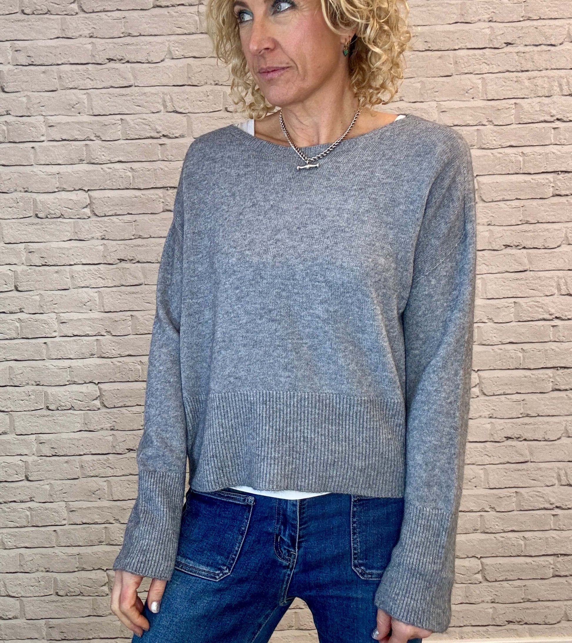 A beautiful soft sweater with deep ribbed cuffs and hemline.