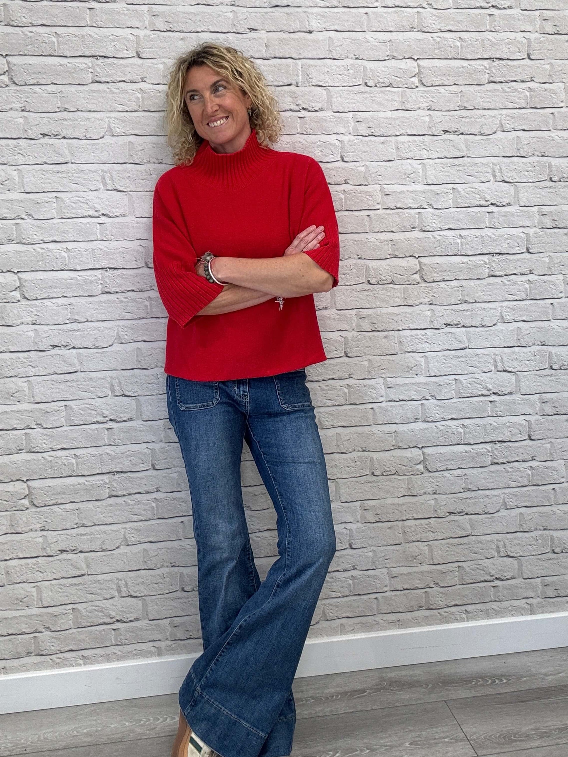 A beautifully soft funnel-neck jumper with elbow-length sleeves. Layer it over our long-sleeve Body Hug on cooler days, or wear it solo when the weather warms up. Effortlessly versatile, it pairs perfectly with skirts, joggers, or denim.