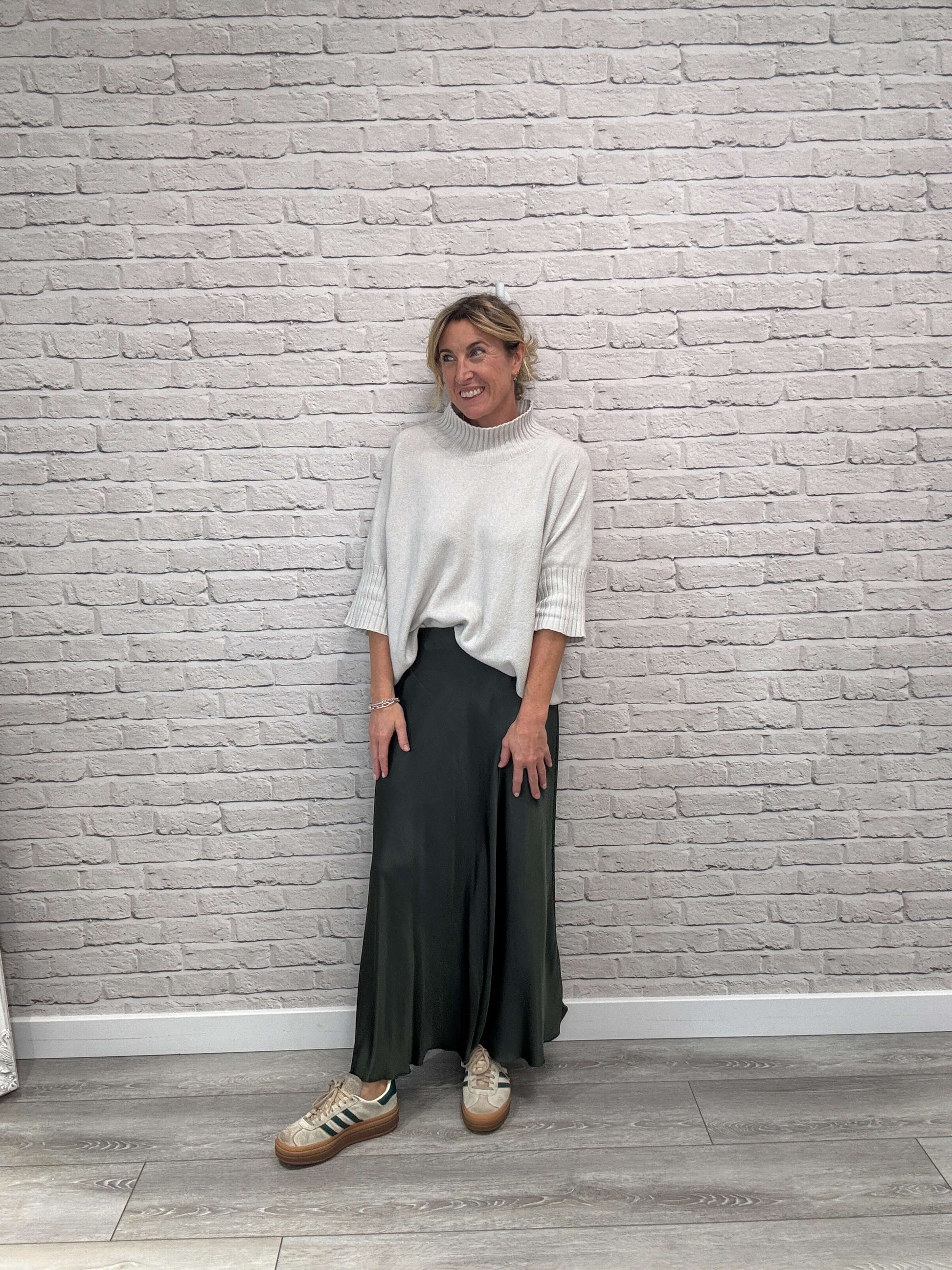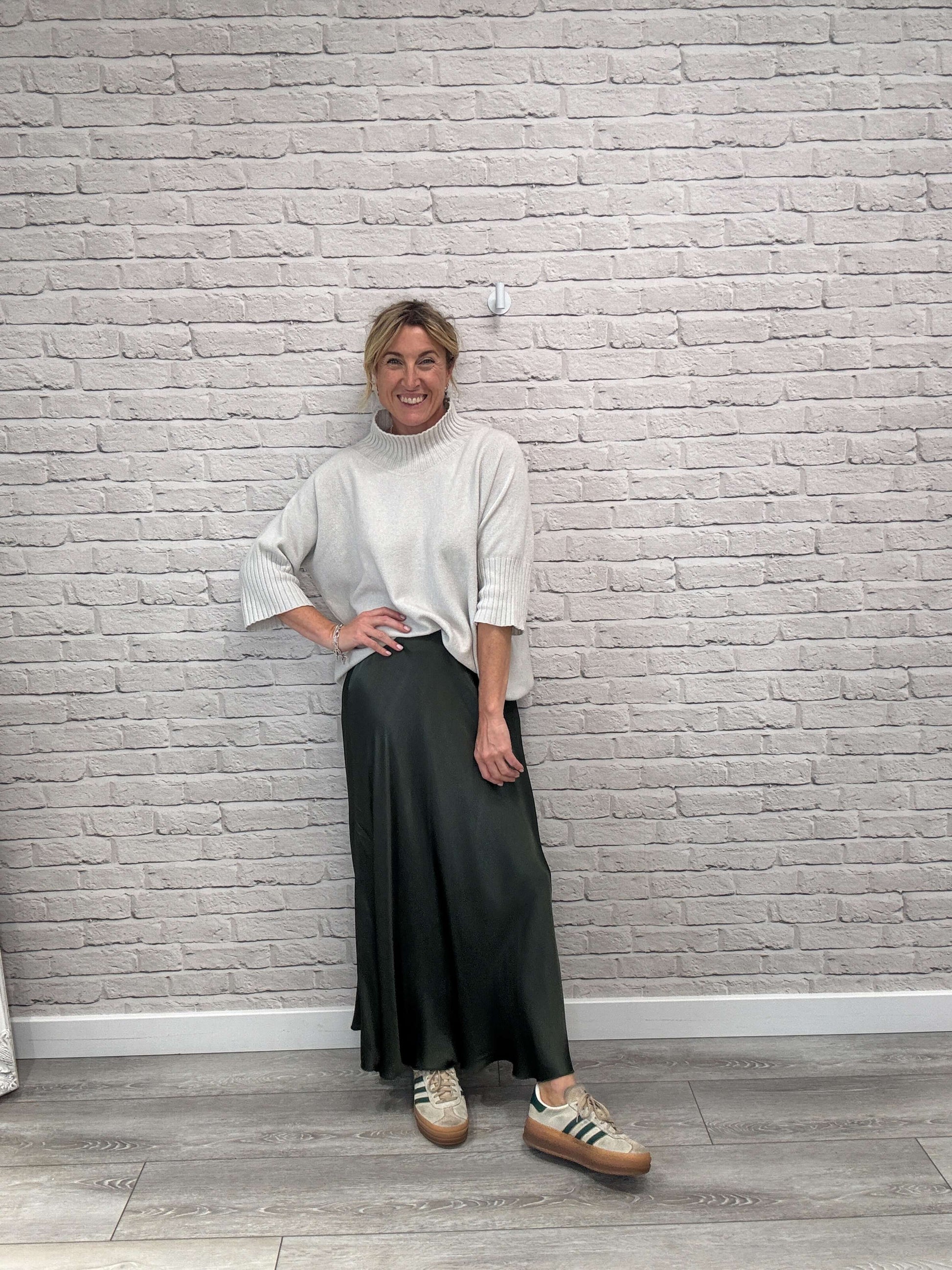 Orla Satin Slip Skirt | Khaki
