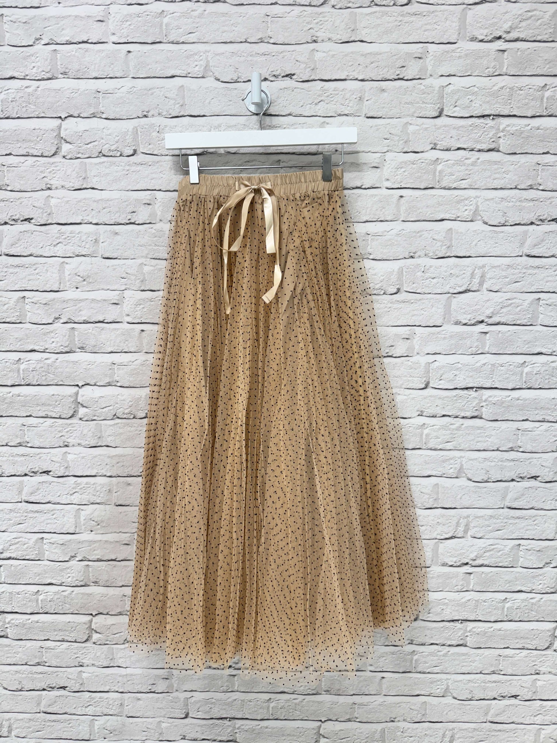 Polka Dot Tulle Skirt | Beige