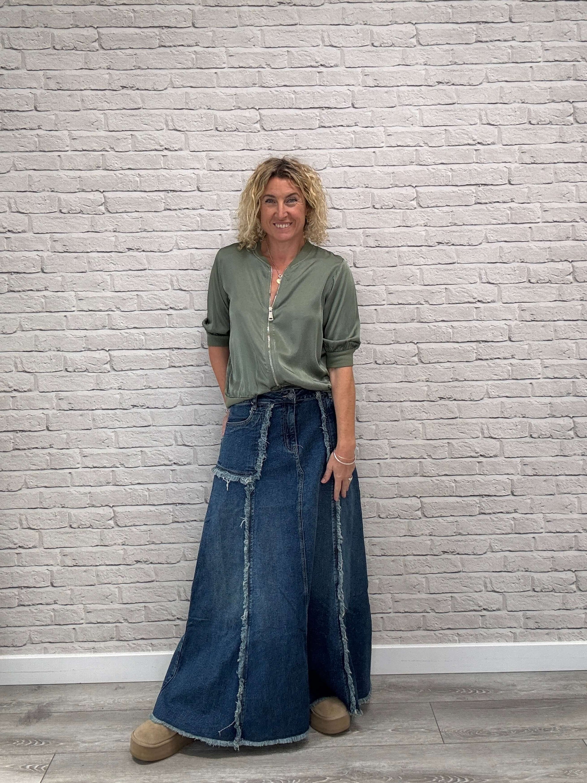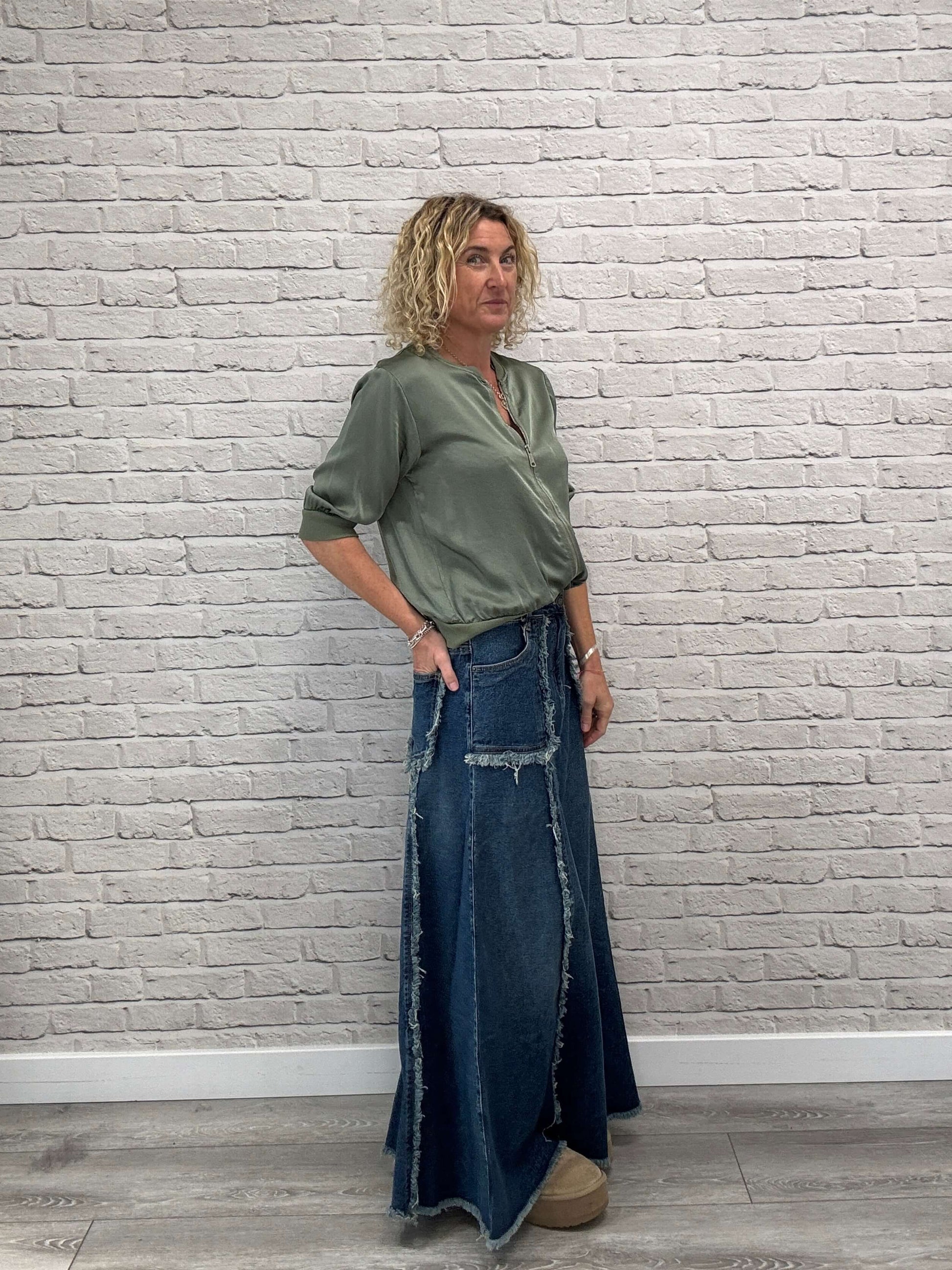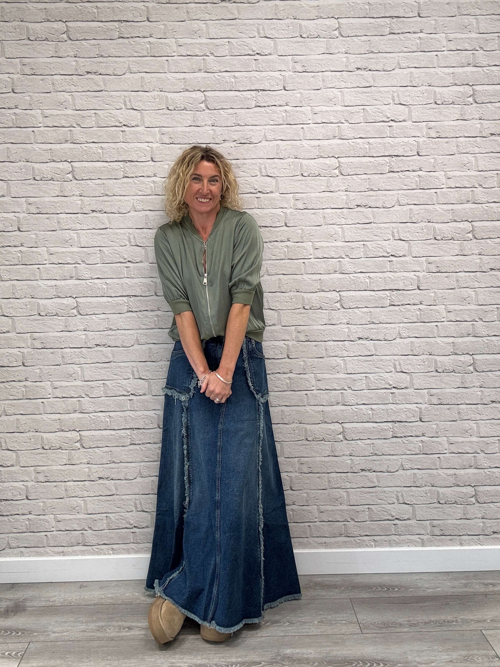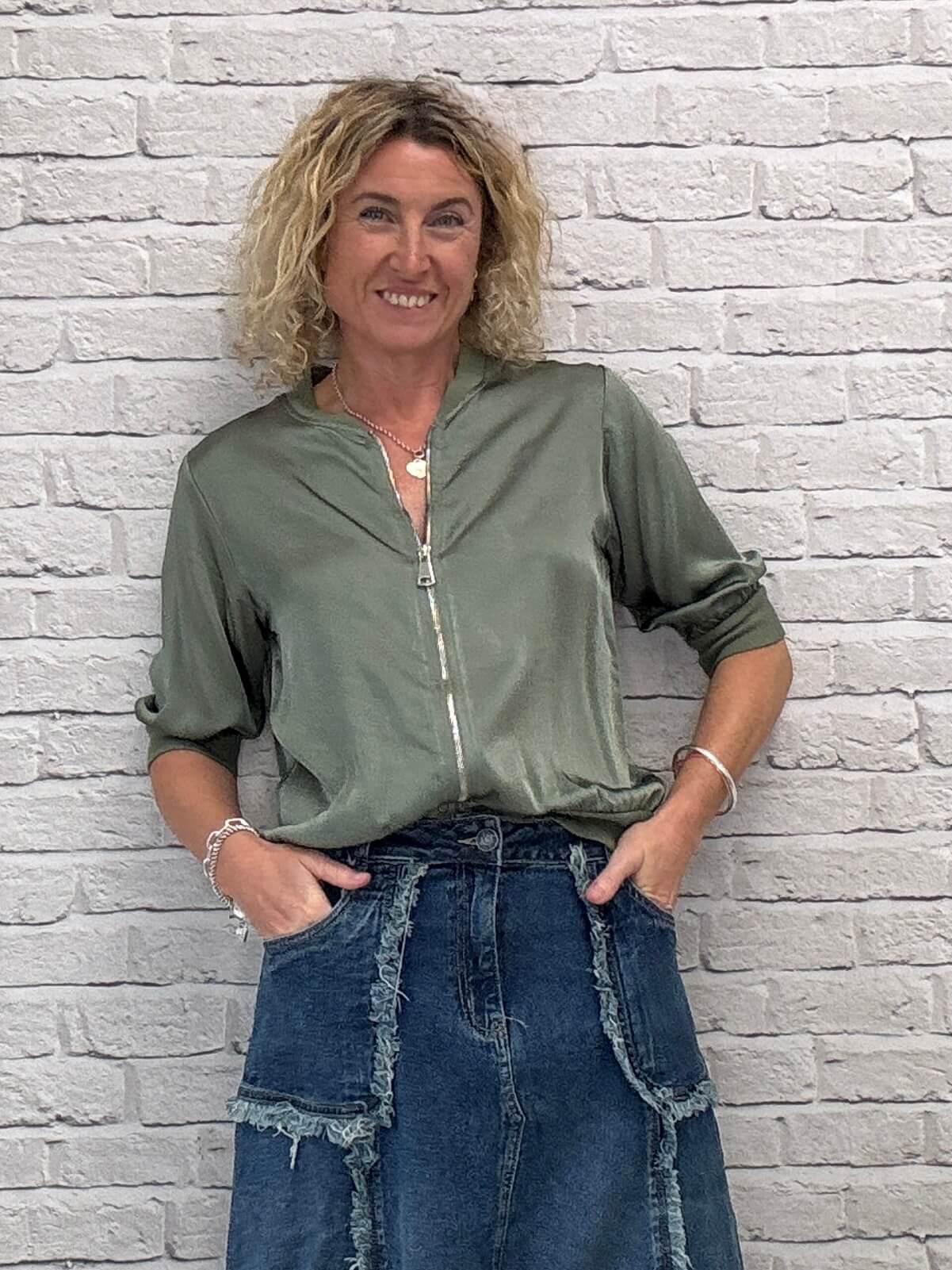 A statement silk bomber jacket with elbow length sleeves and ribbed cuffs, collar & hem. For an effortless party outfit just add jeans & heals. For cool daytime vibes pair with baggy jeans and trainers.