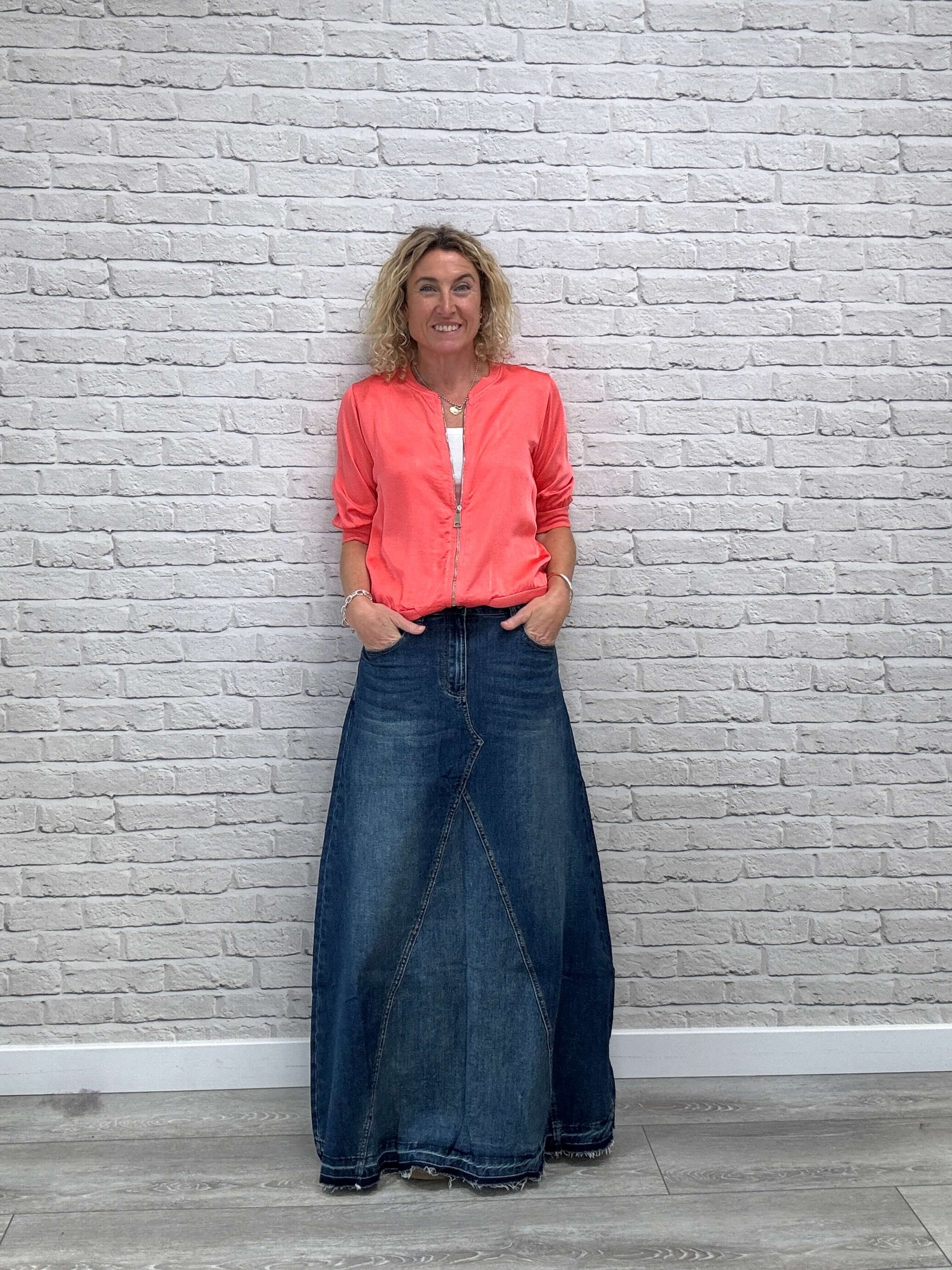 A statement silk bomber jacket with elbow length sleeves and ribbed cuffs, collar & hem. For an effortless party outfit just add jeans & heals. For cool daytime vibes pair with baggy jeans and trainers.