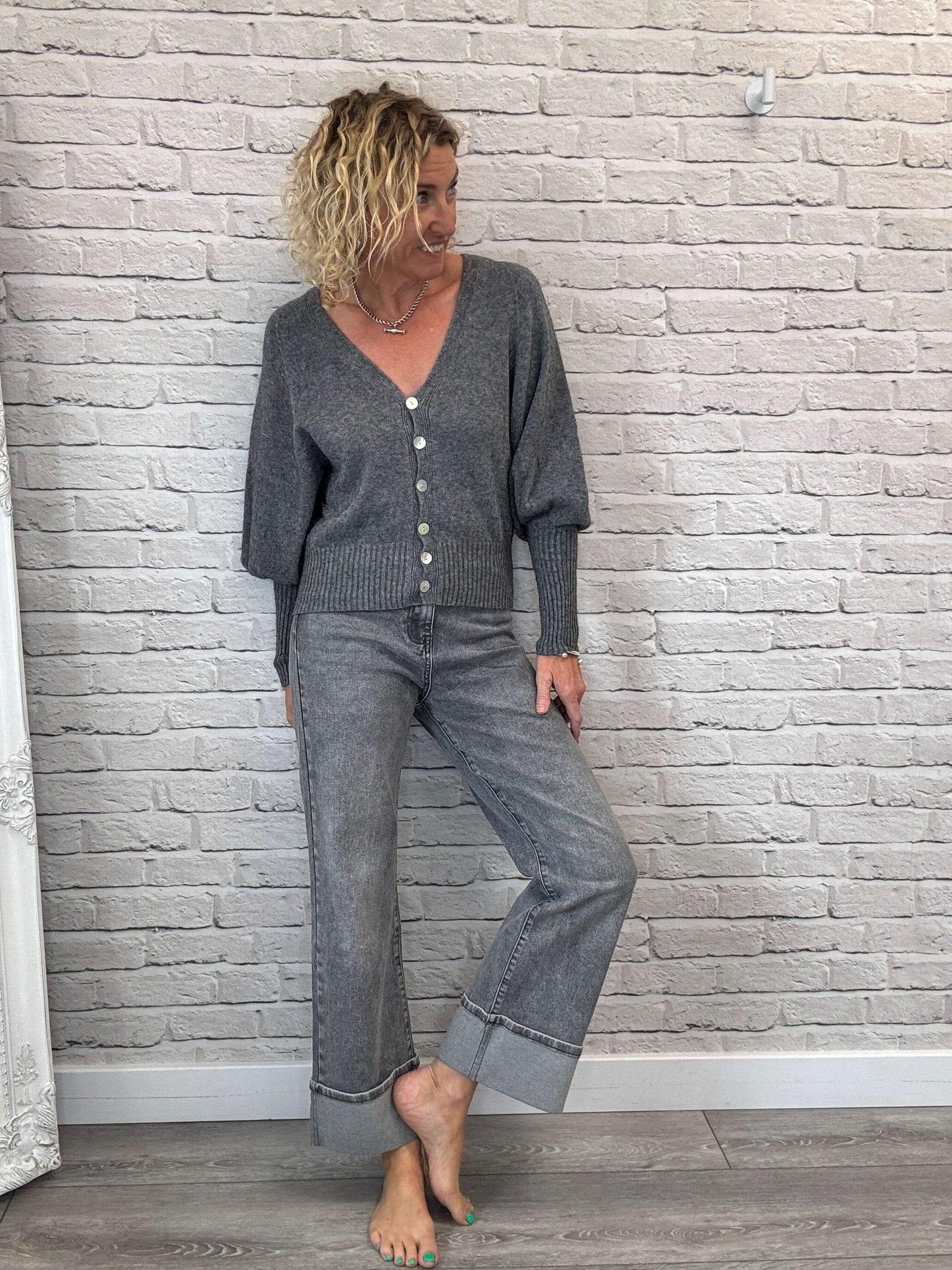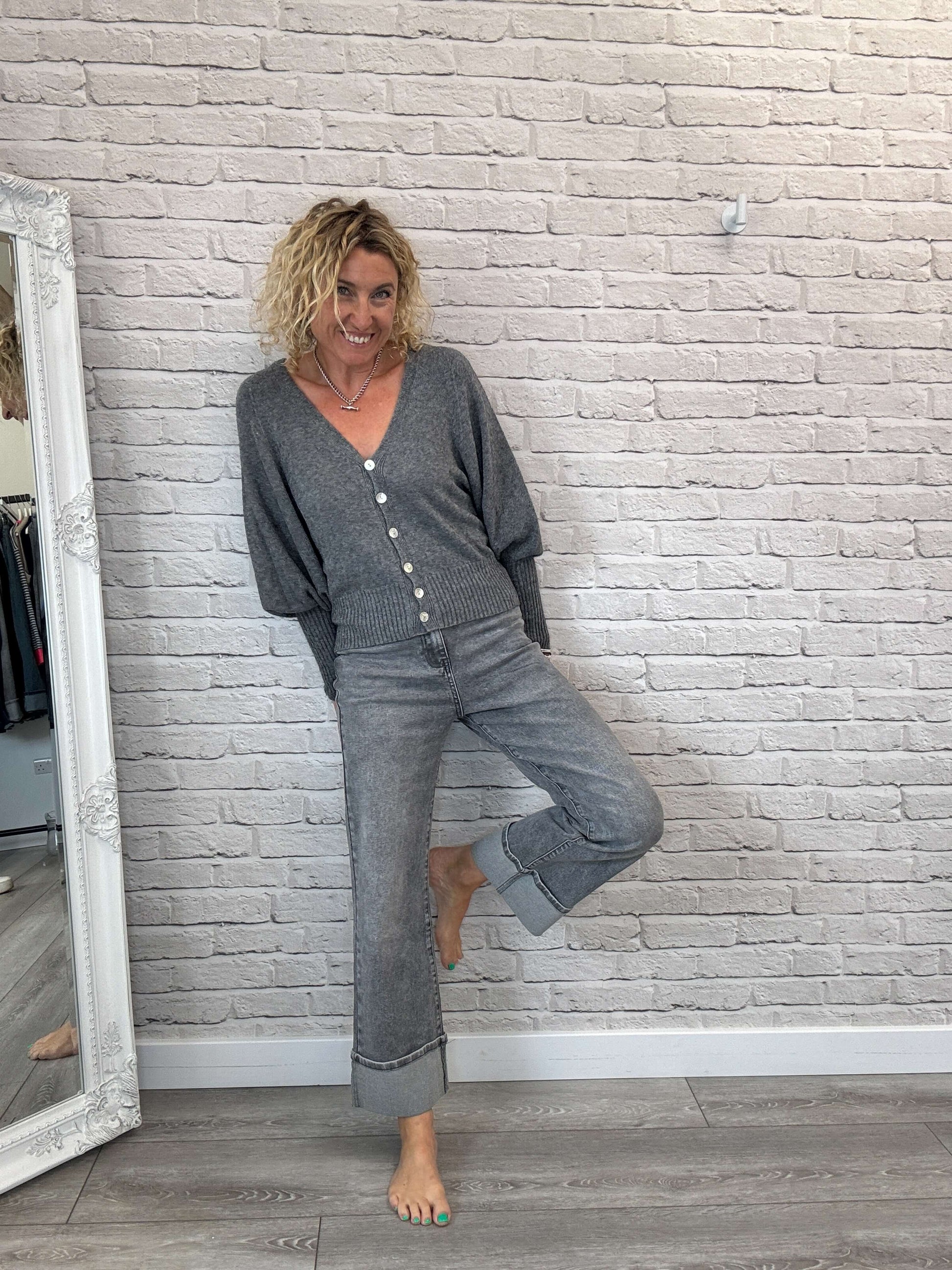 Rockafella High Waist Cuffed Jeans | Washed Grey