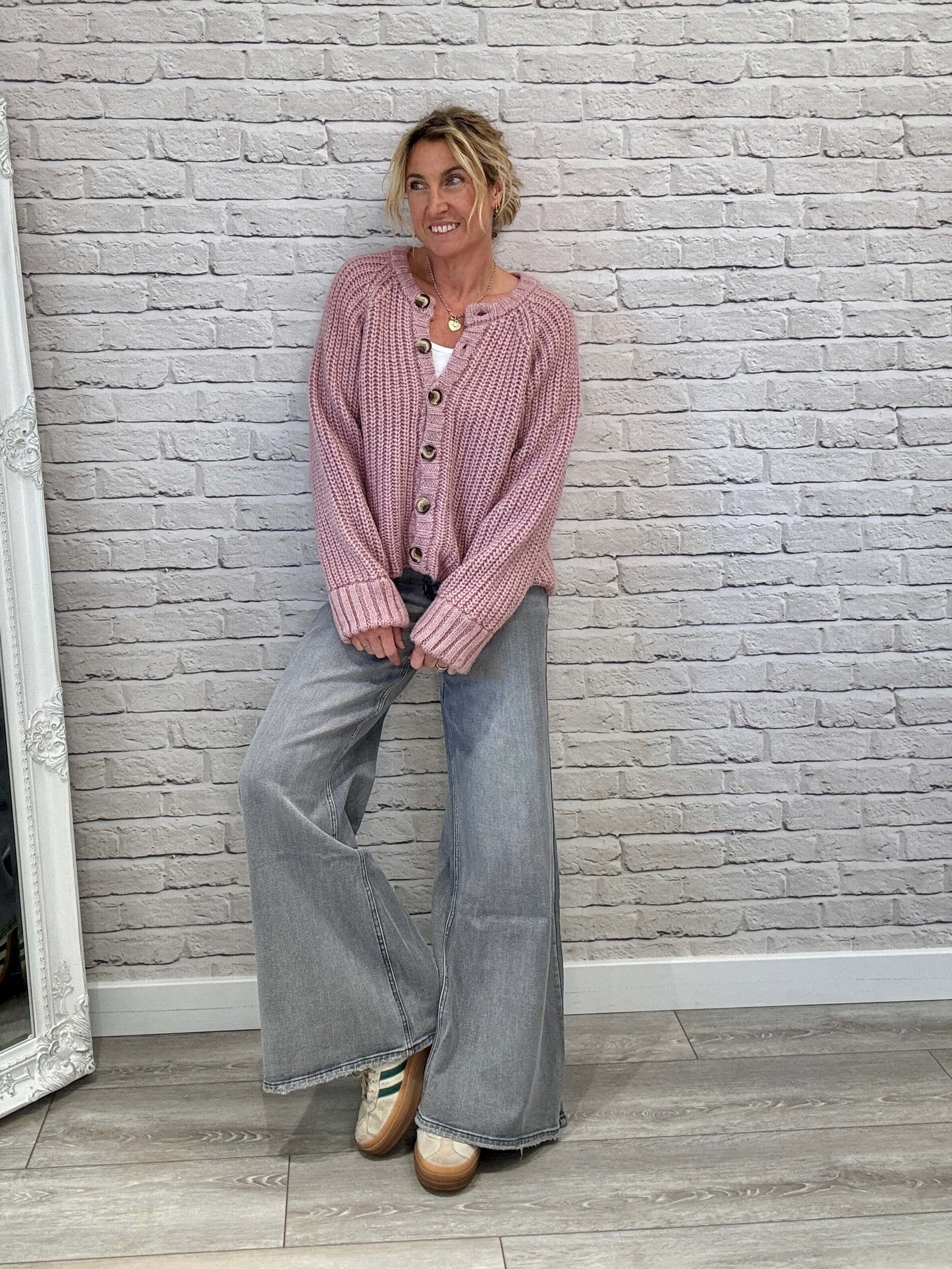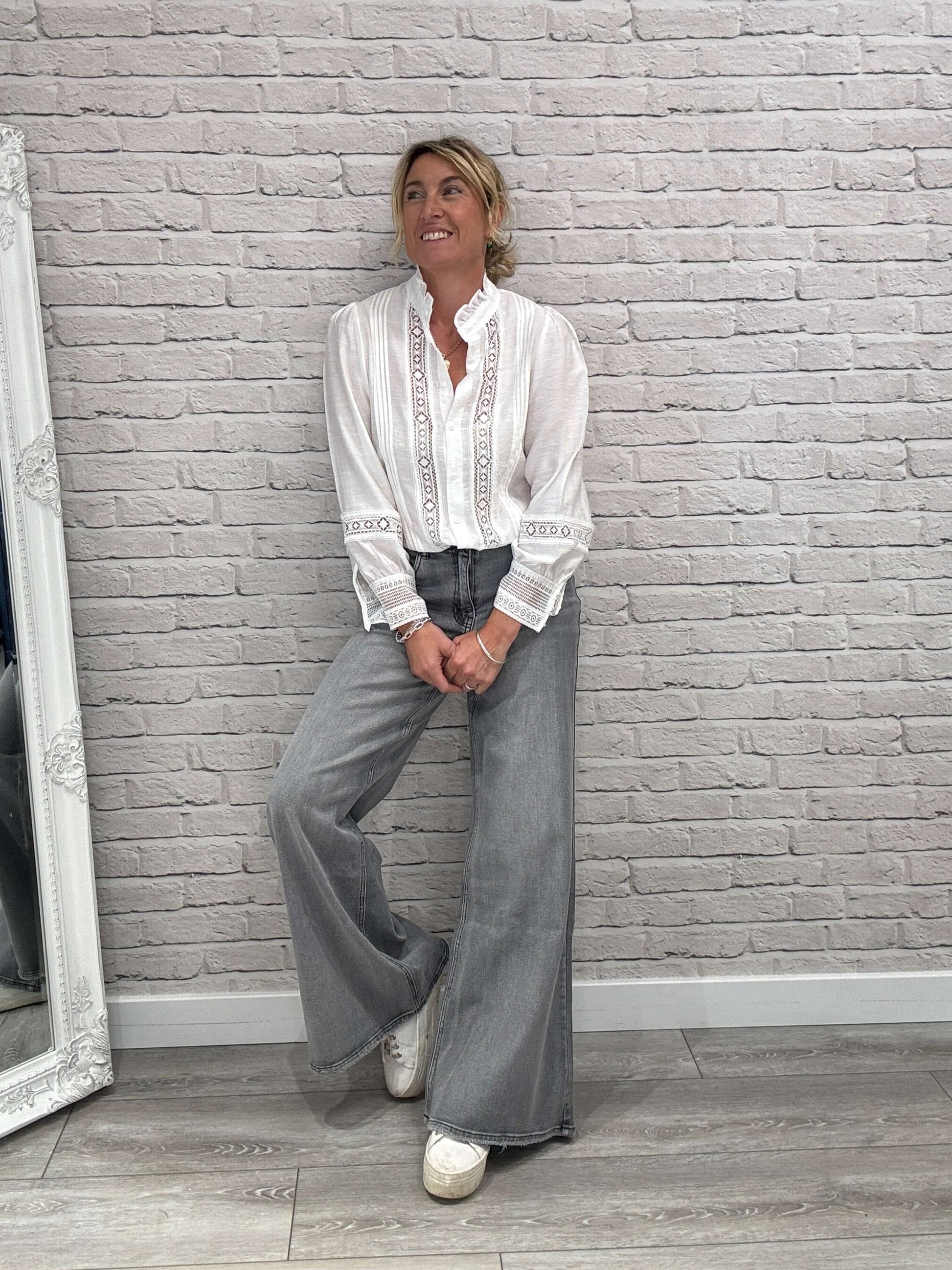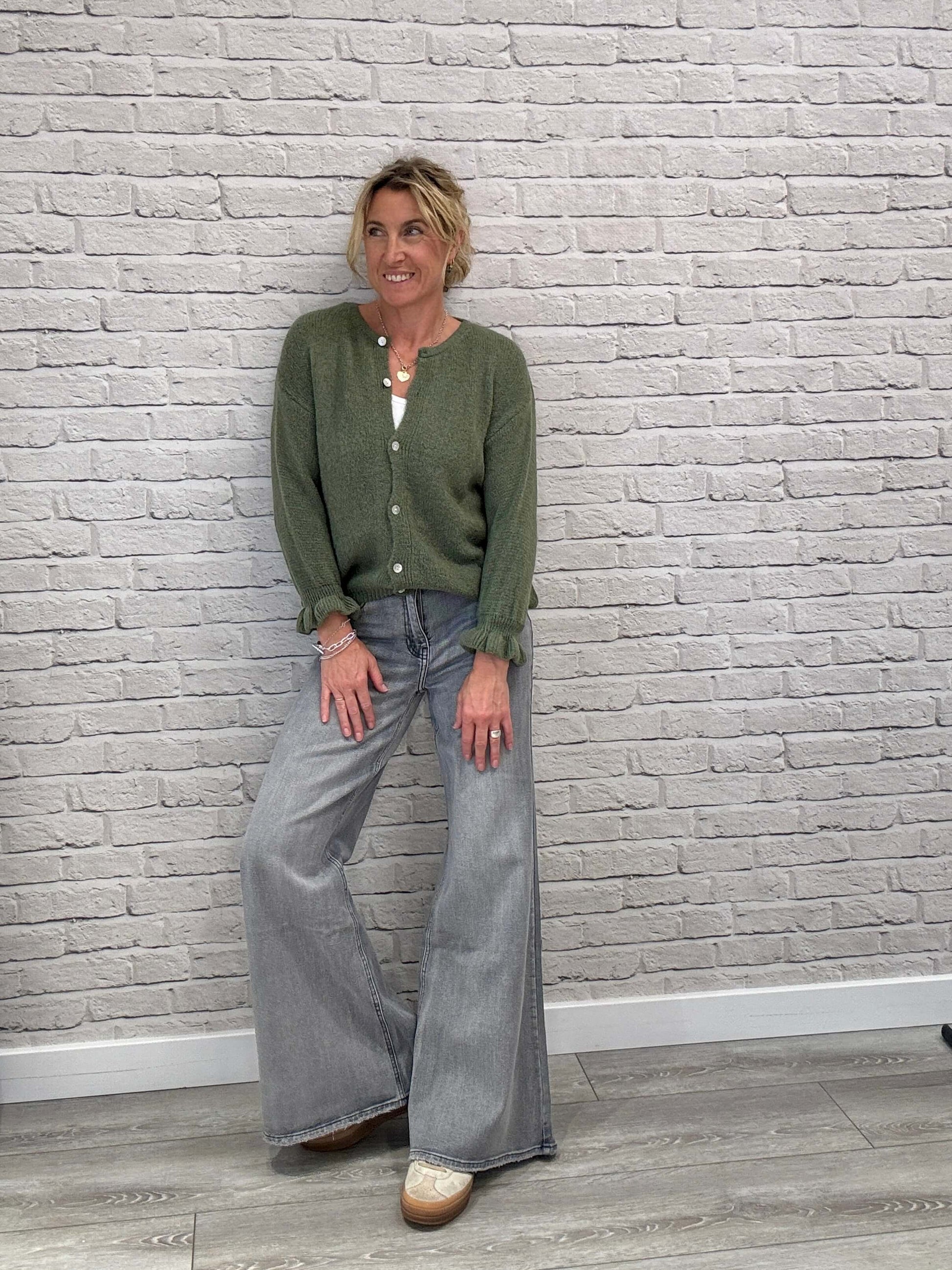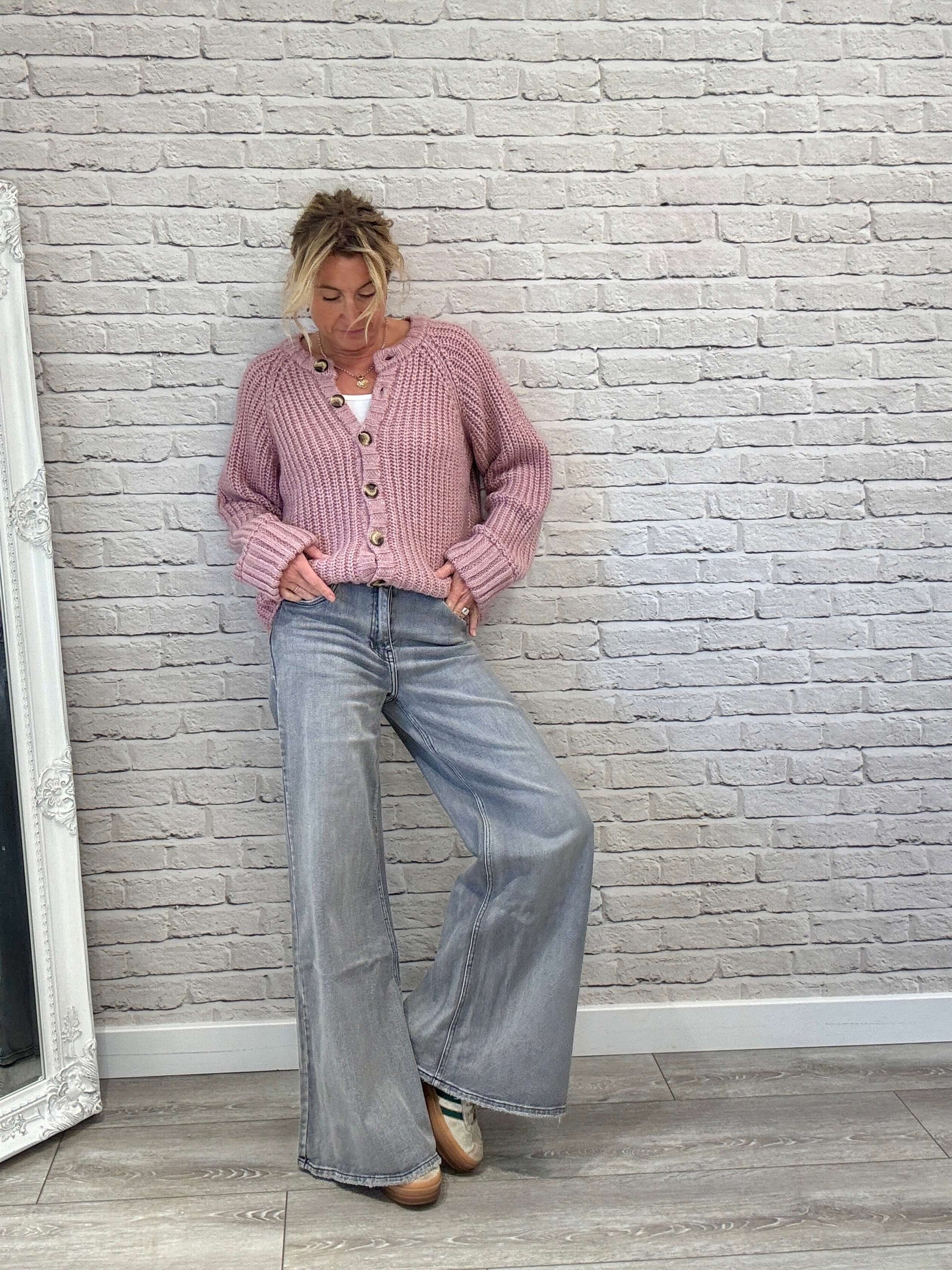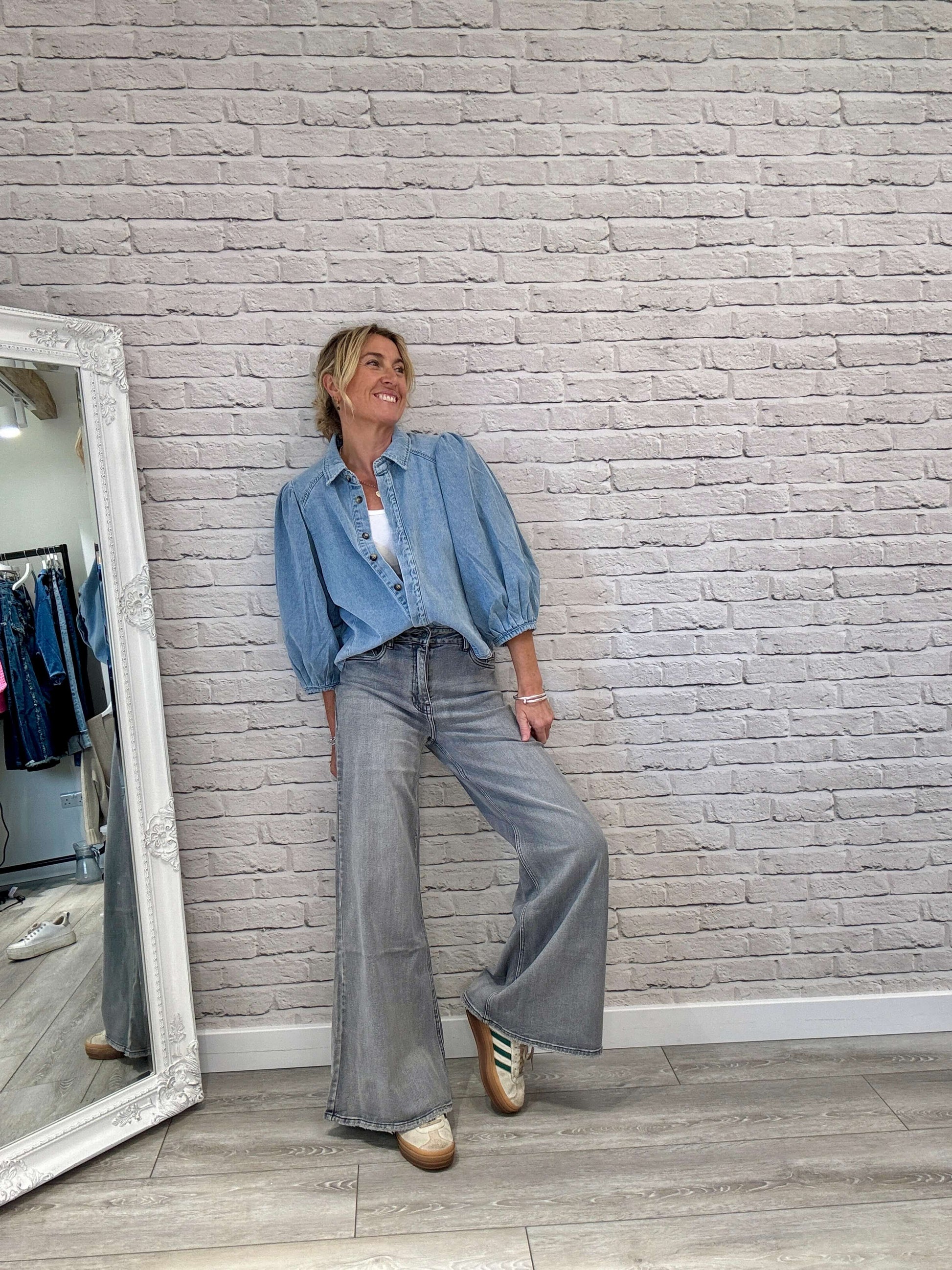 Palazzo high rise jeans fitted through the waist and hips for the perfect fit.