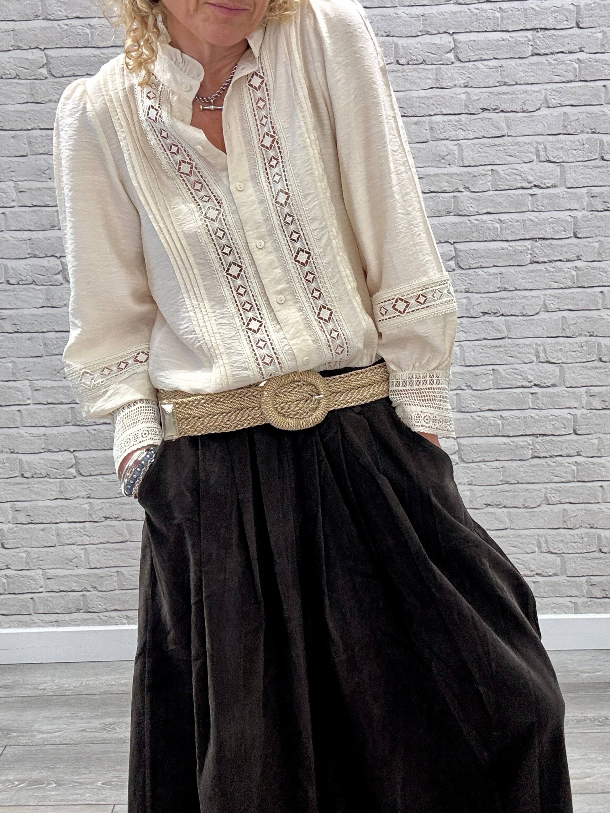 Worn here with our Ivory Bunny Blouse | Khaki Hamptons Cardigan
