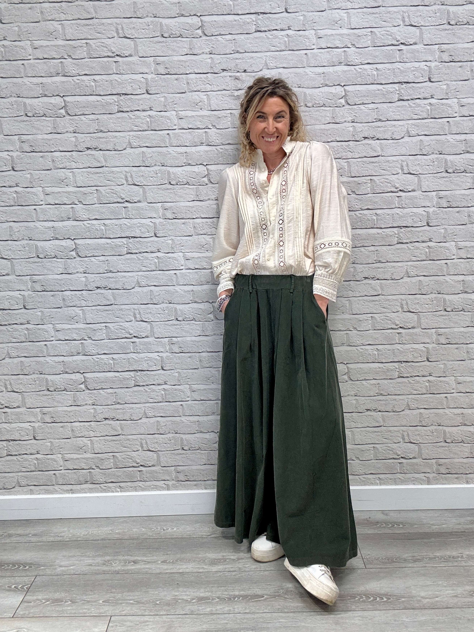 Soho Cord Palazzo Trousers | Khaki