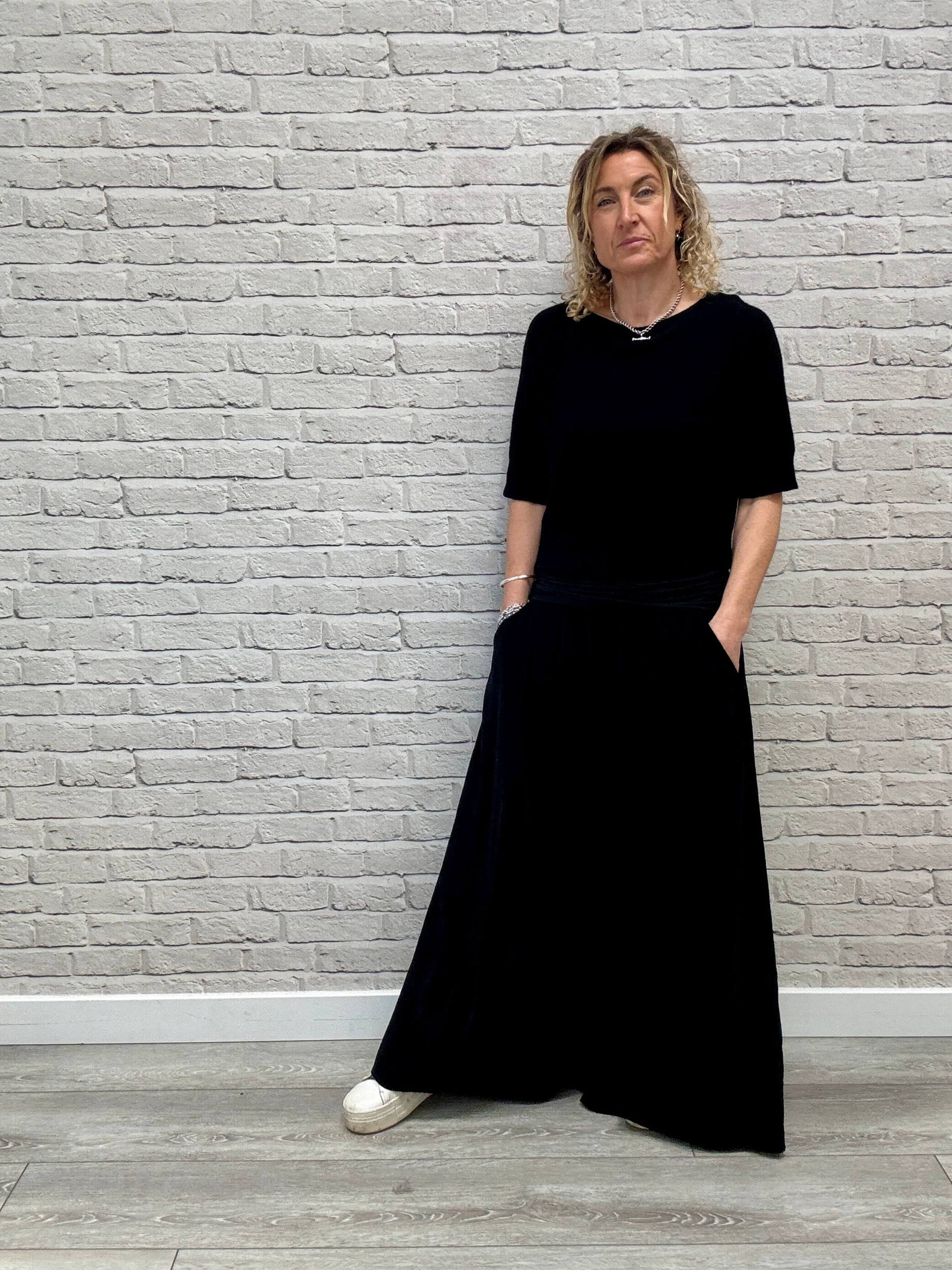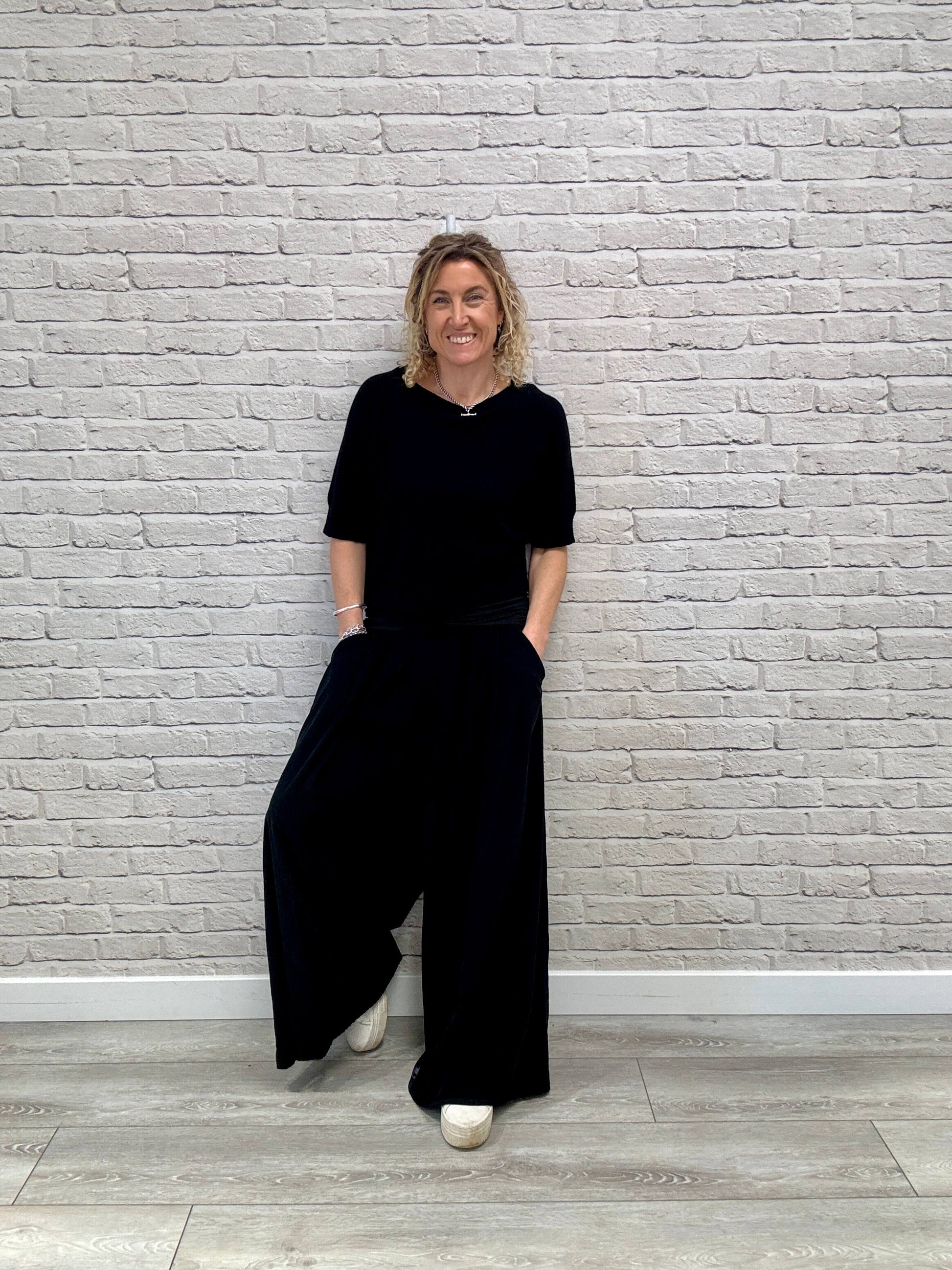 The most amazing, floaty-wide-leg palazzo trousers crafted from super-soft needle cord. Designed with a flattering flat front panel and a comfy elasticated waistband. Finished with side pockets — effortless style meets everyday comfort.