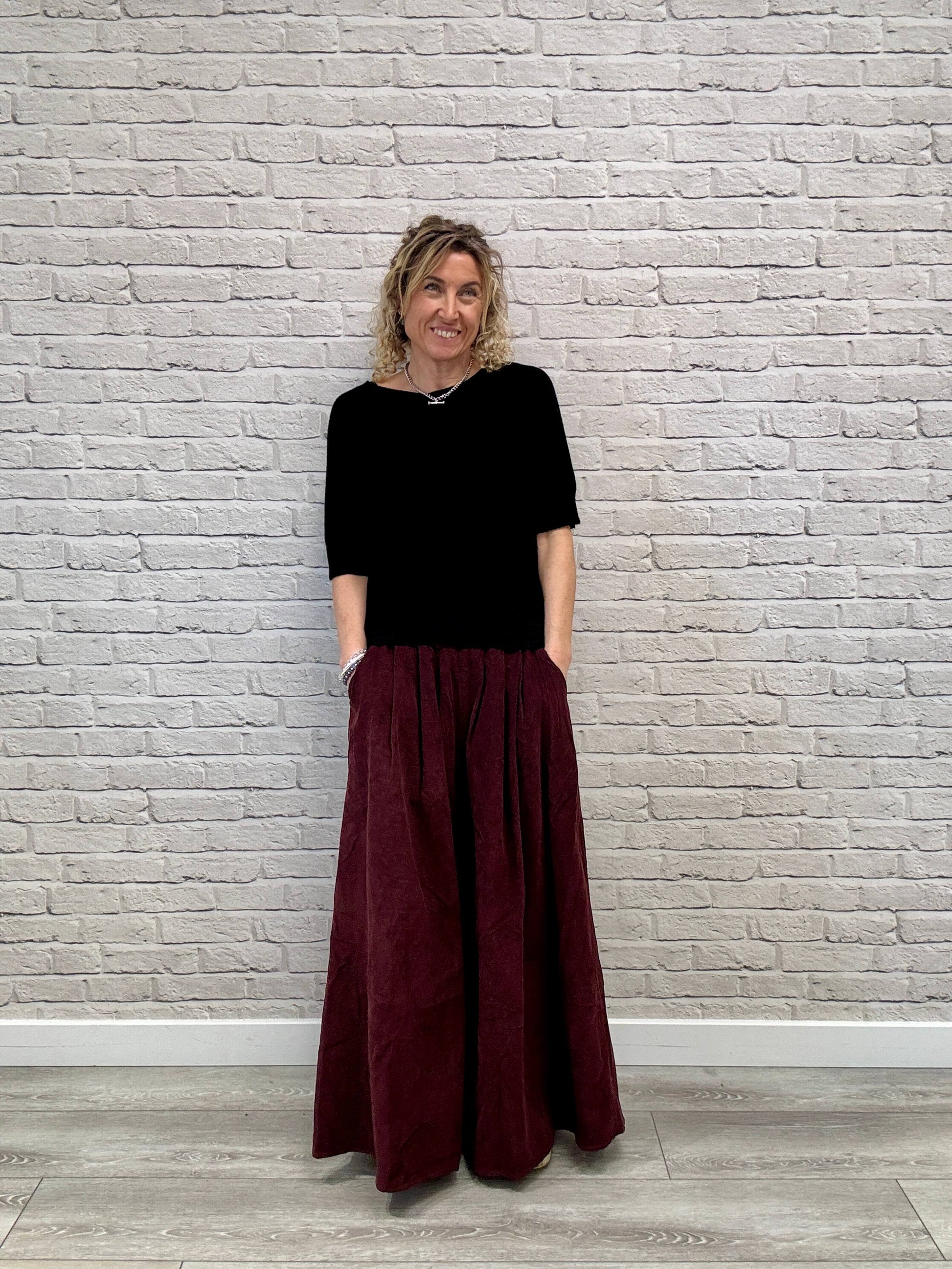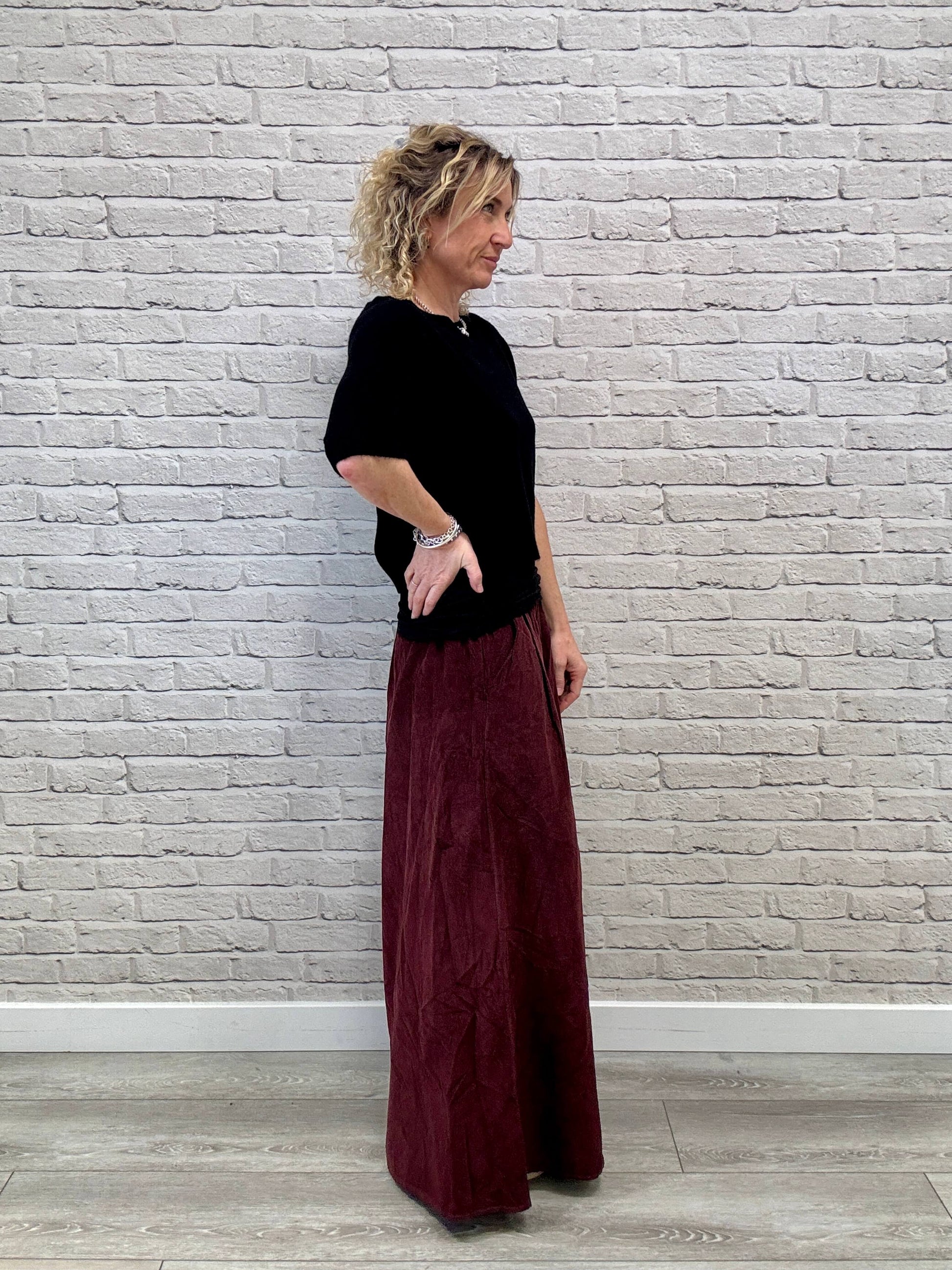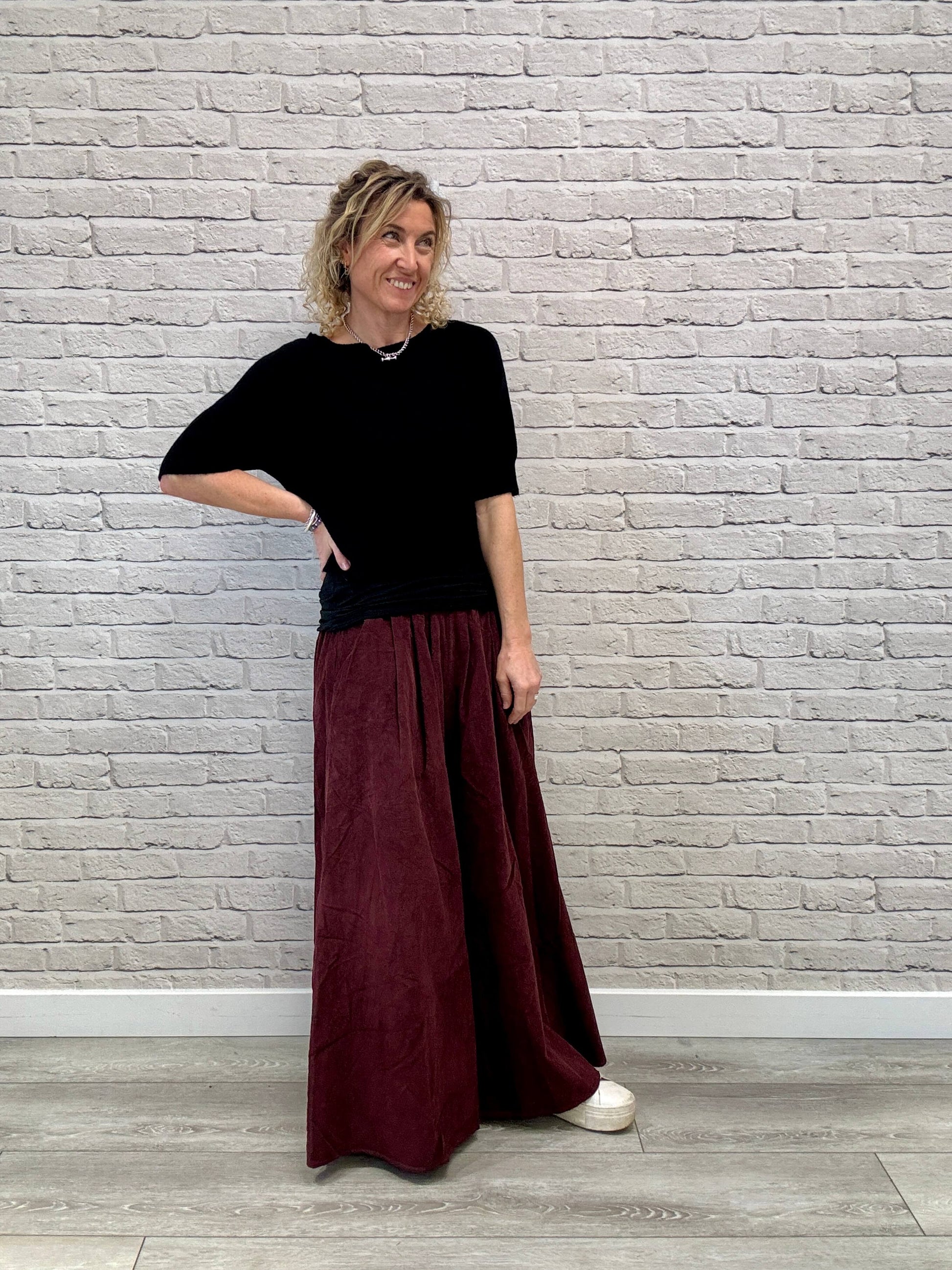 The most amazing, floaty-wide-leg palazzo trousers crafted from super-soft needle cord. Designed with a flattering flat front panel and a comfy elasticated waistband. Finished with side pockets — effortless style meets everyday comfort.