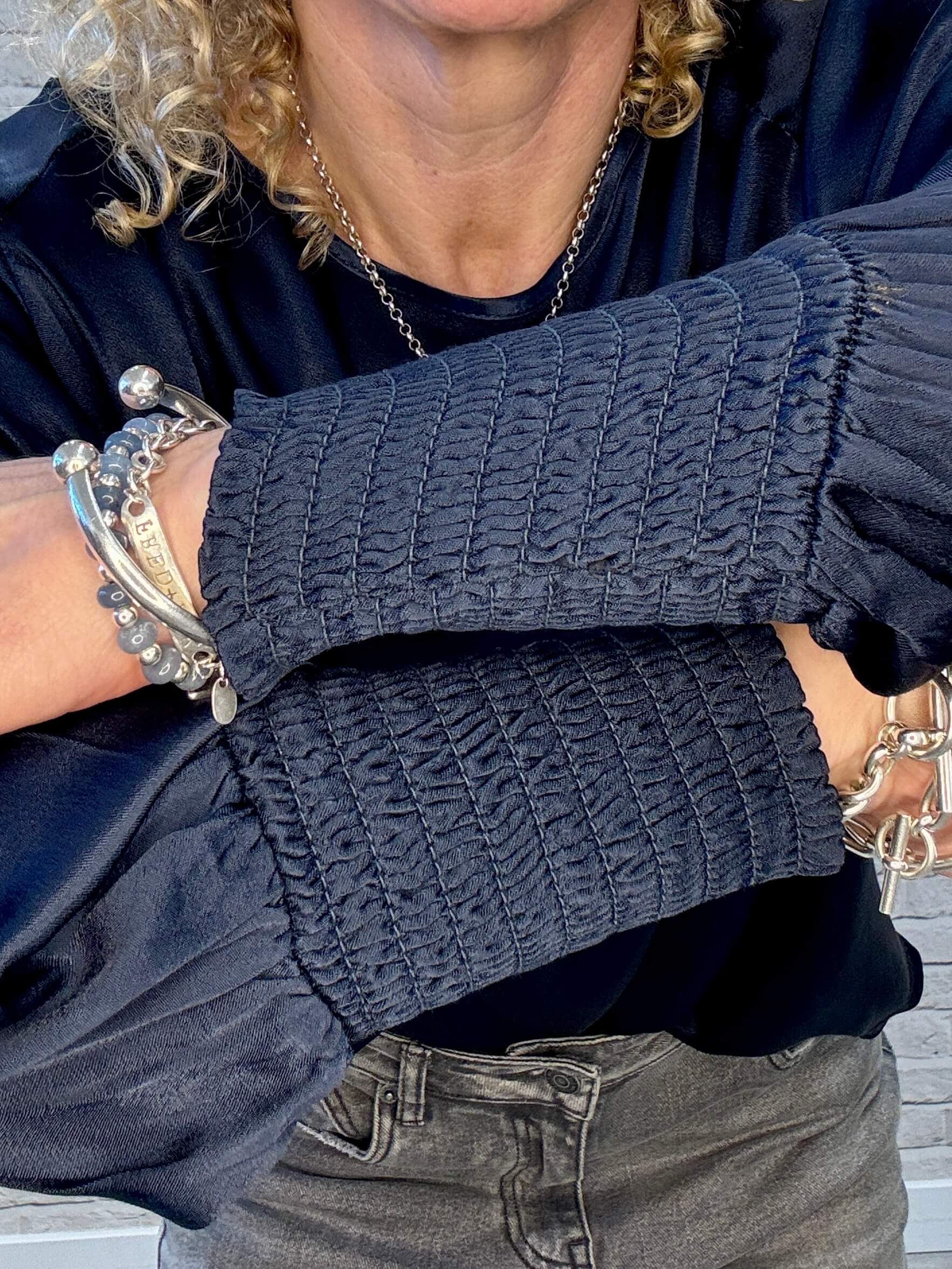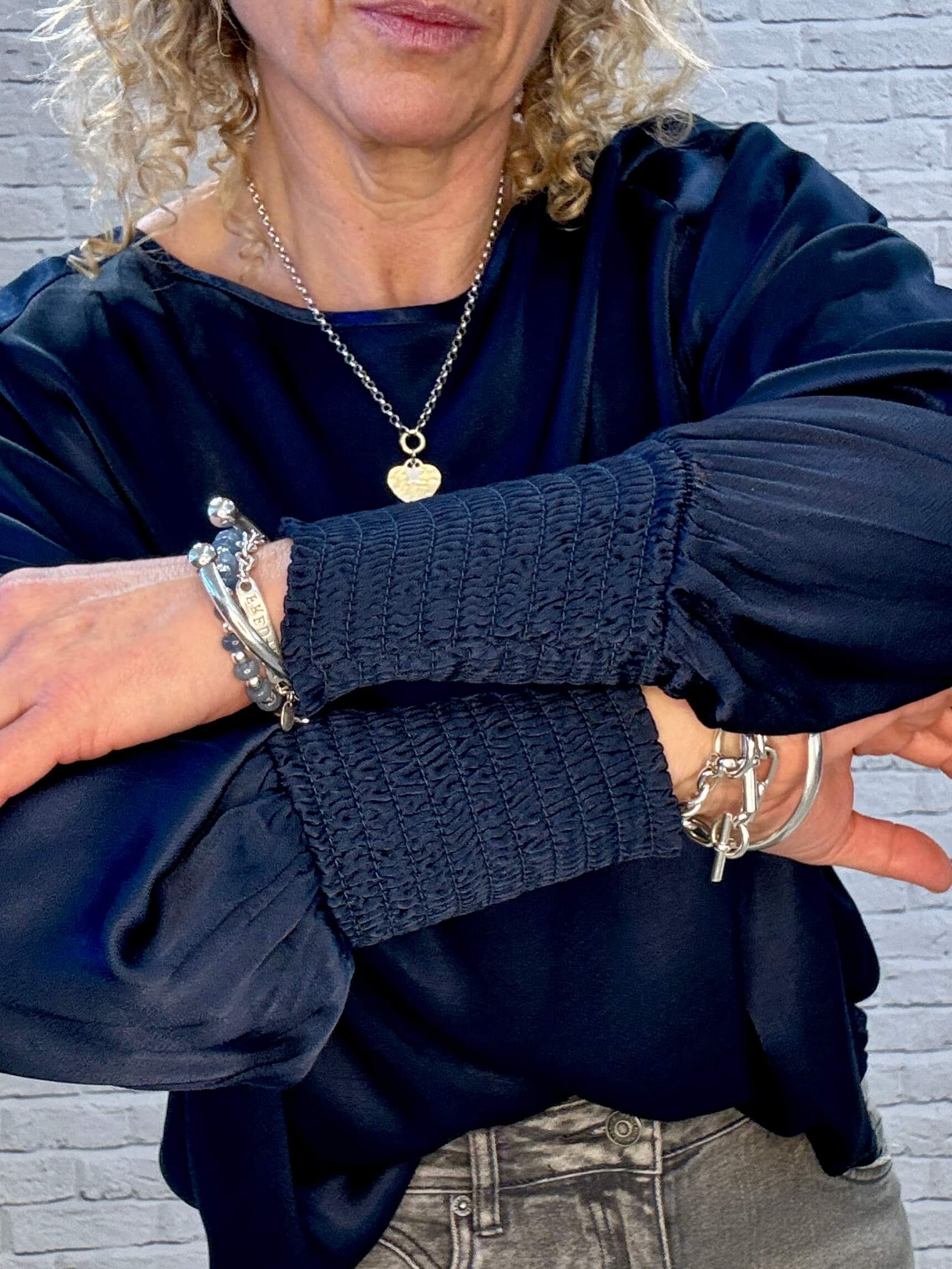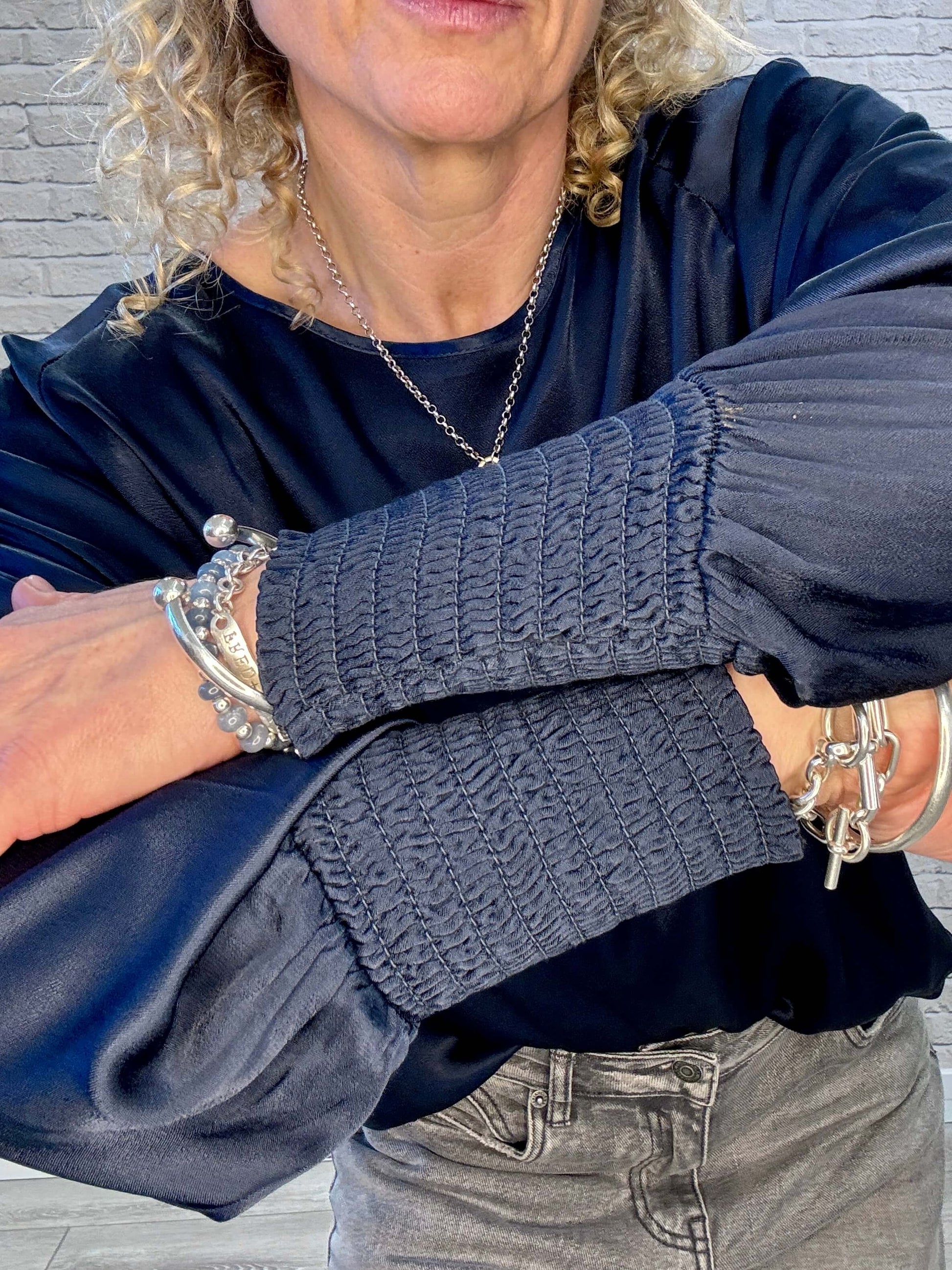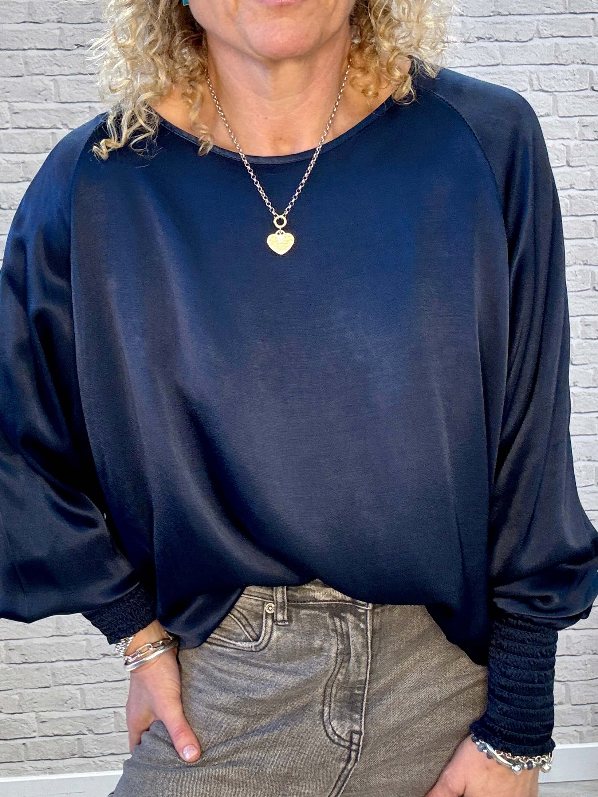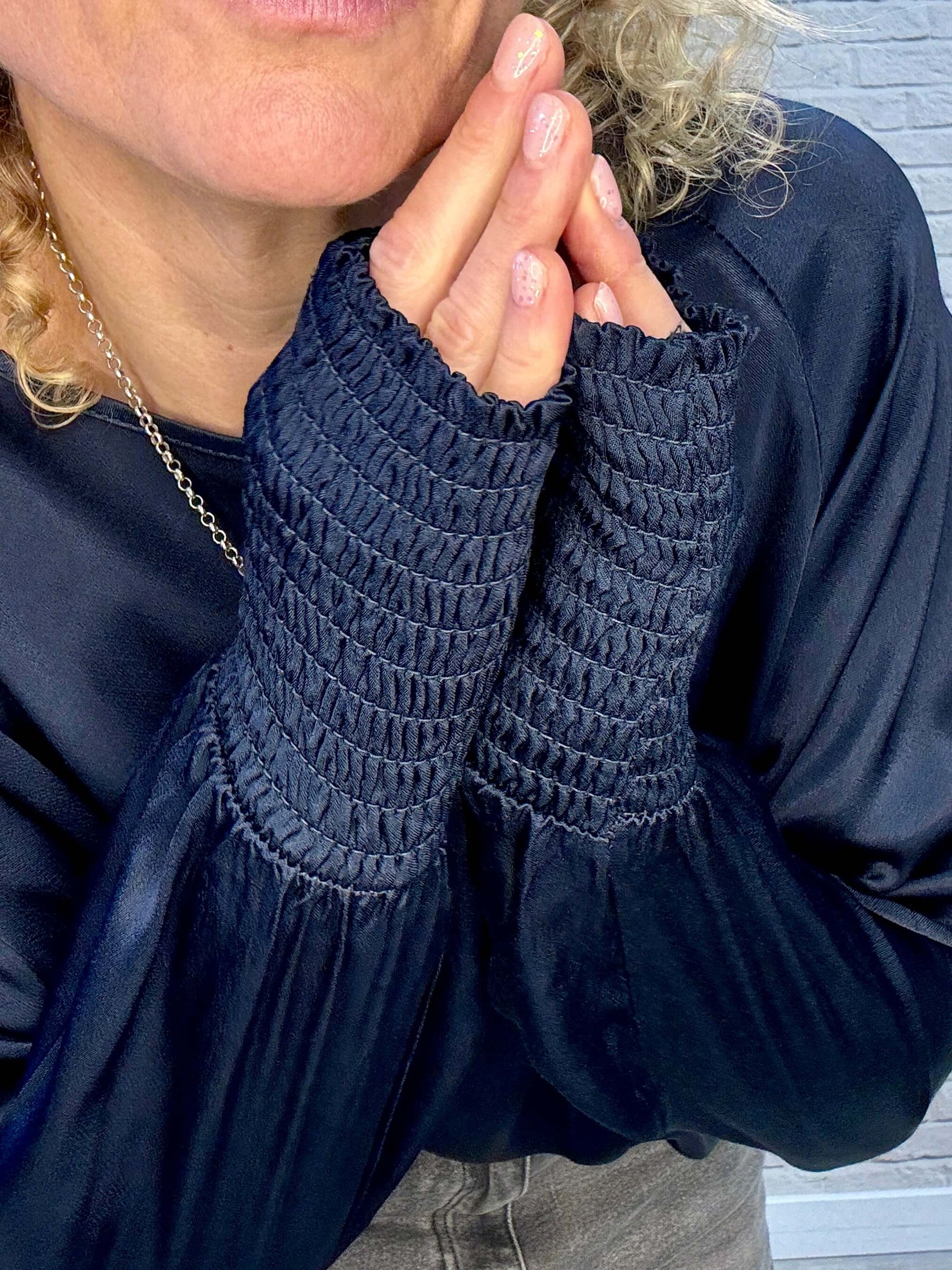 Inundated by requests, our beloved Sophia Top is back this season! Made from a soft, shimmery mid weight luxury satin it oozes elegance with a loose structure that gives it that effortless feel. The cuffs are to die for - deep and shirred so you can ruche your sleeve up or down depending on where you want them to sit.