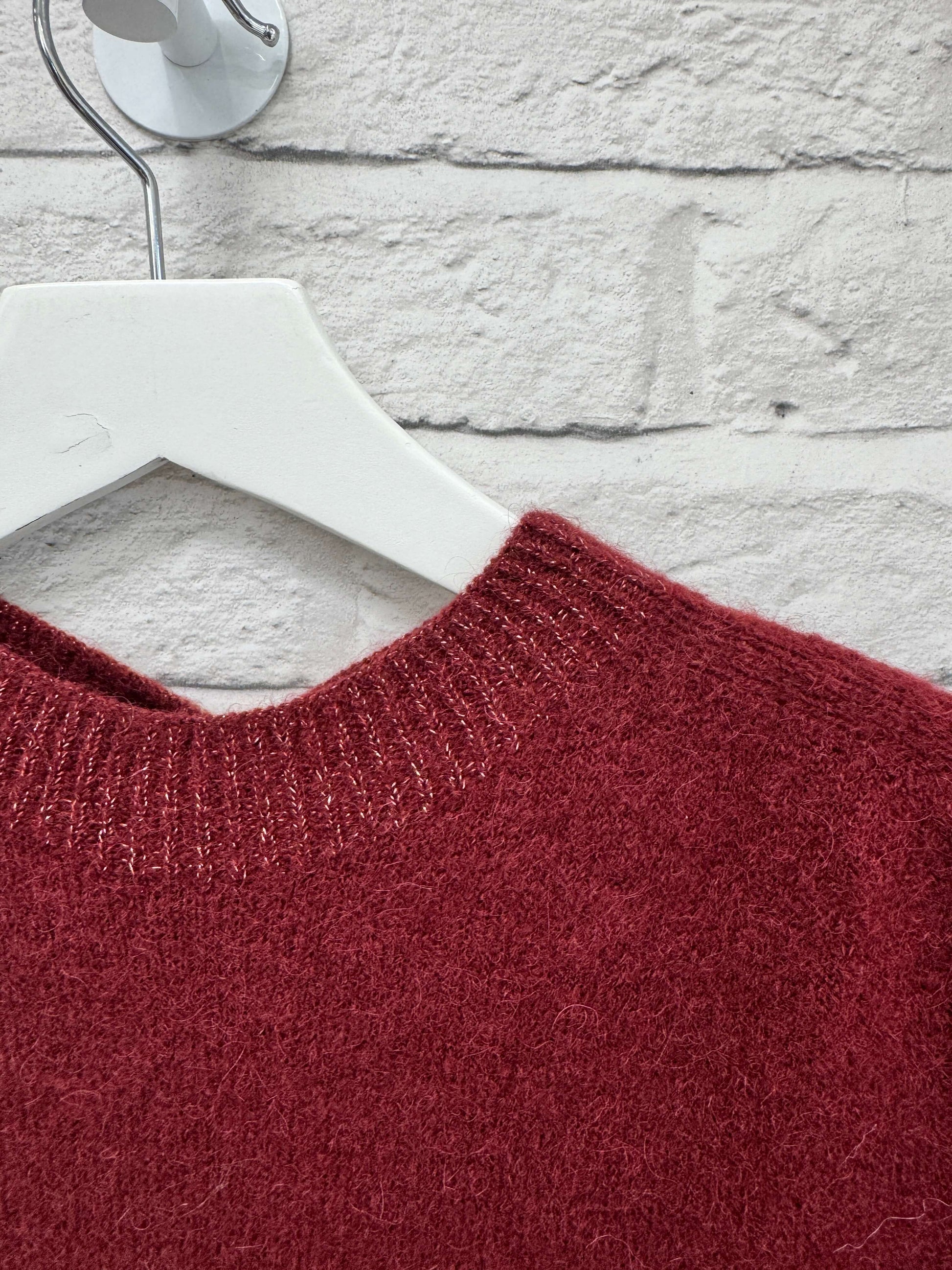 A neat-fit, crew-neck jumper with half sleeves, finished with subtle gold sparkle at the neckline, cuffs, and hem - just the right amount of sparkle for the festive season.