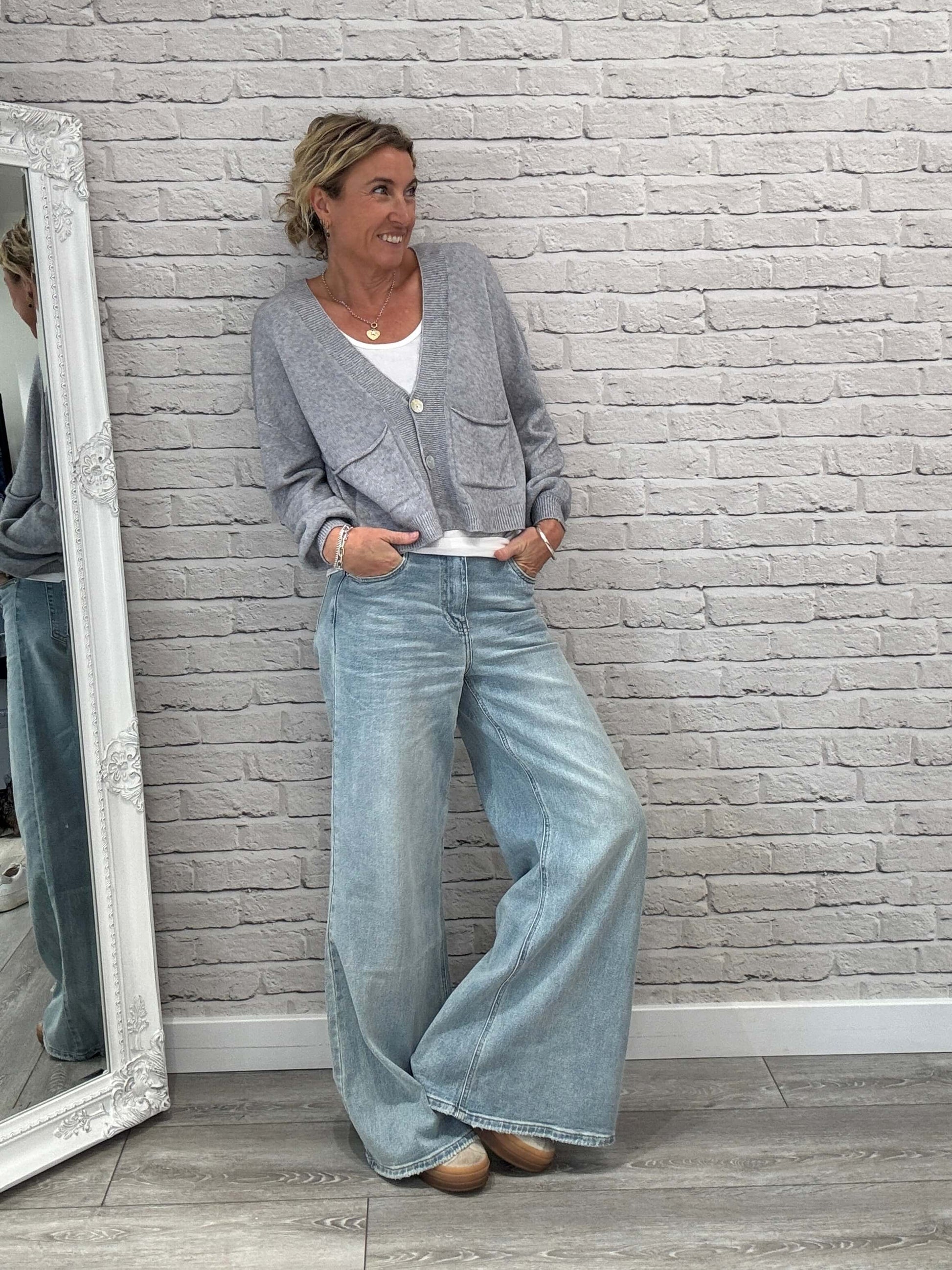 A super soft, slouchy fit cardigan with a boxy cropped silhouette. Front pockets. Button front closure. Defined rib hemlines. Utterly lush with everything!