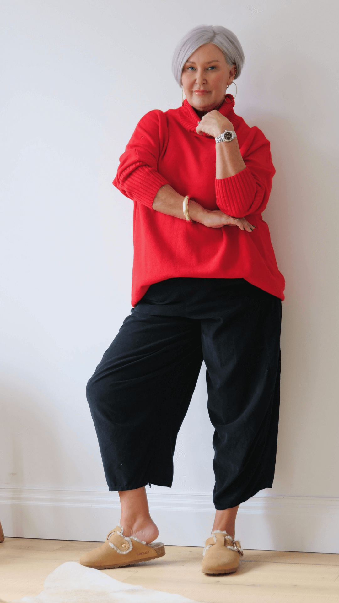 Wide throughout the legs. Tapered at the ankles. Stretchy waistband. Pockets. Perfect for those of you who love a relaxed, slouchy silhouette.
